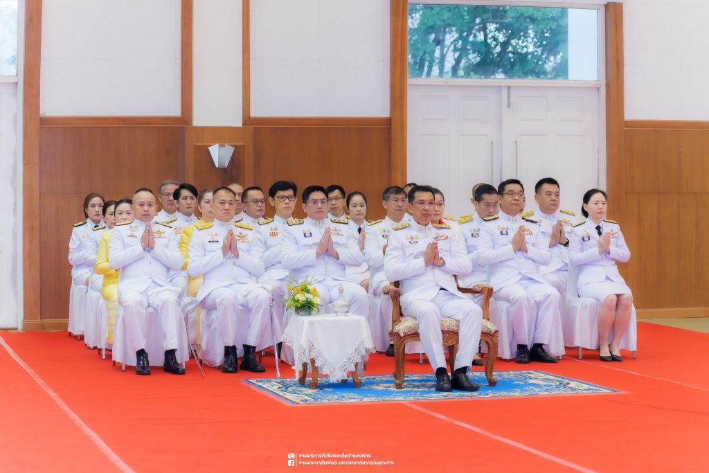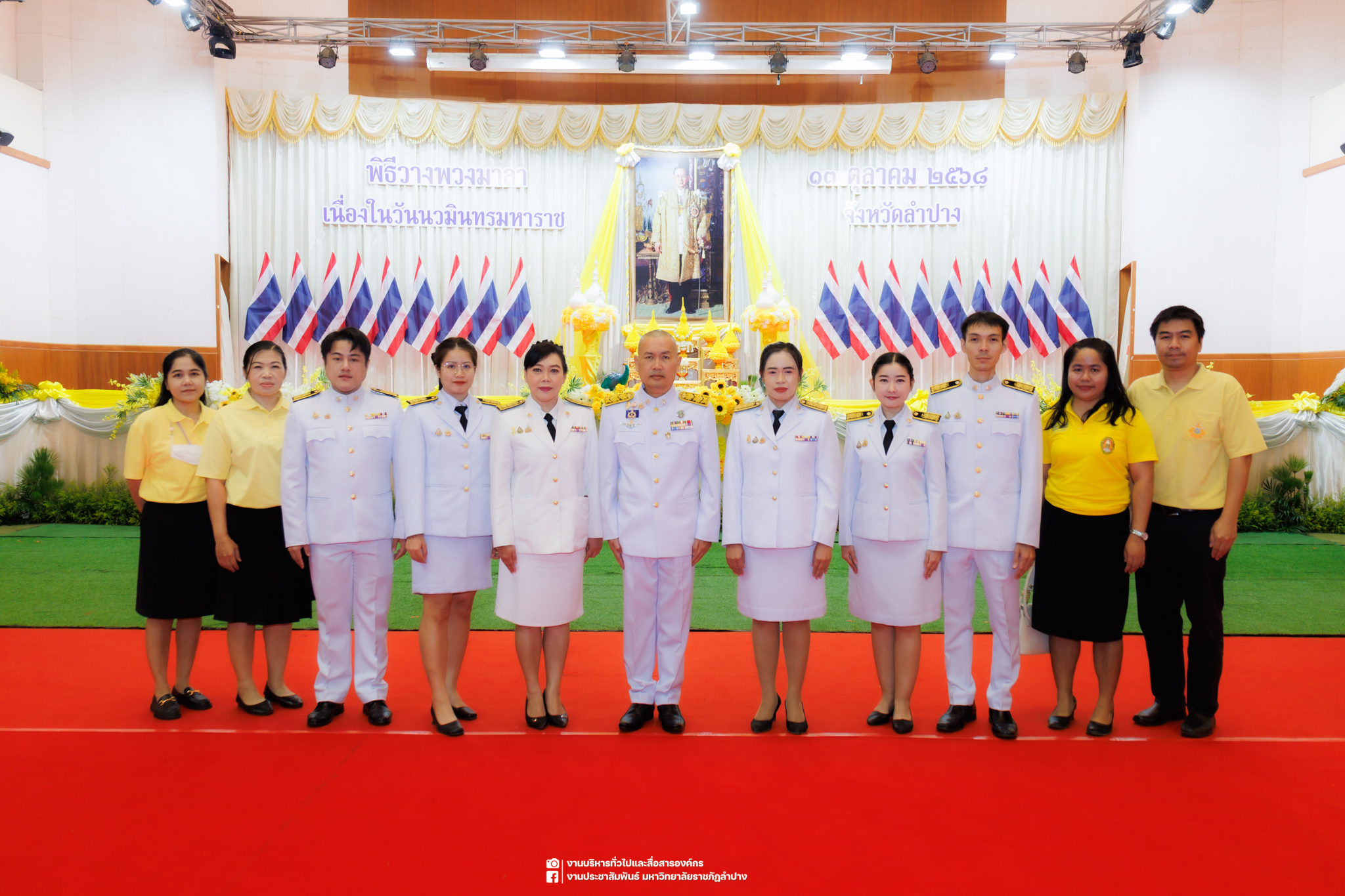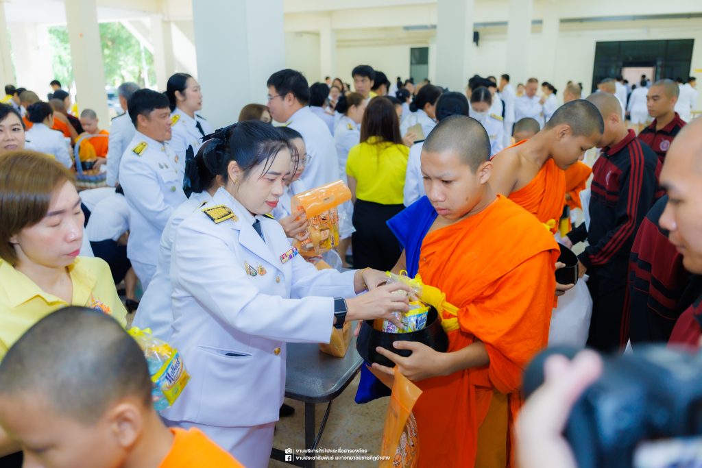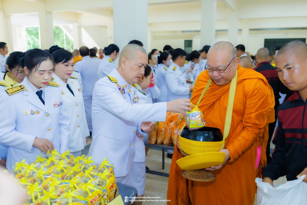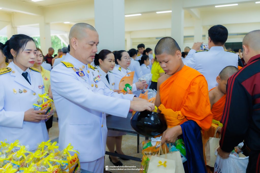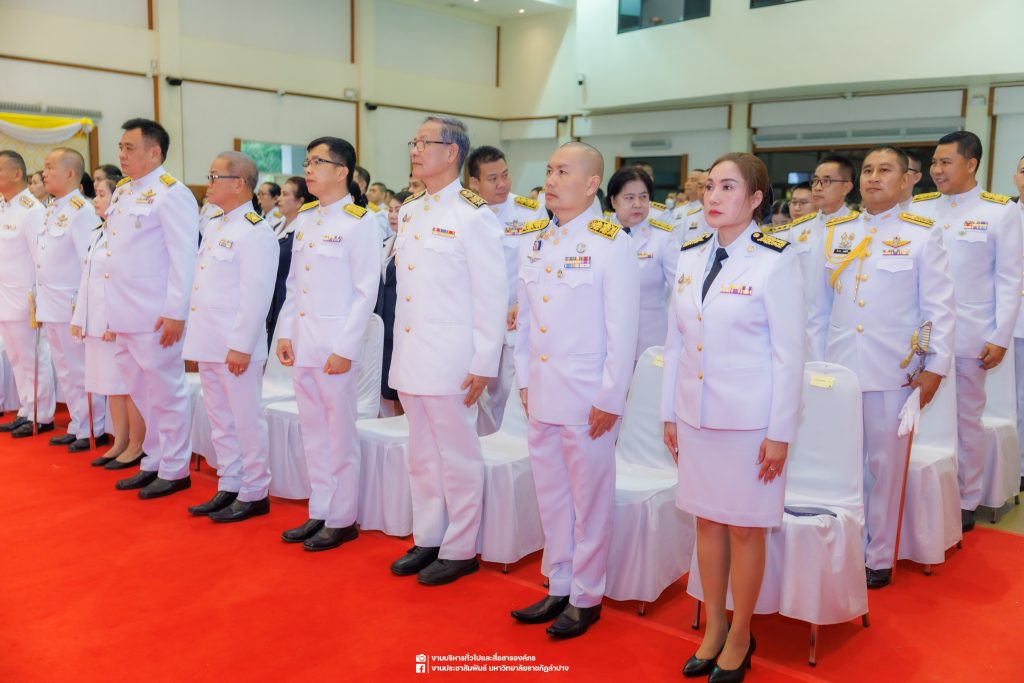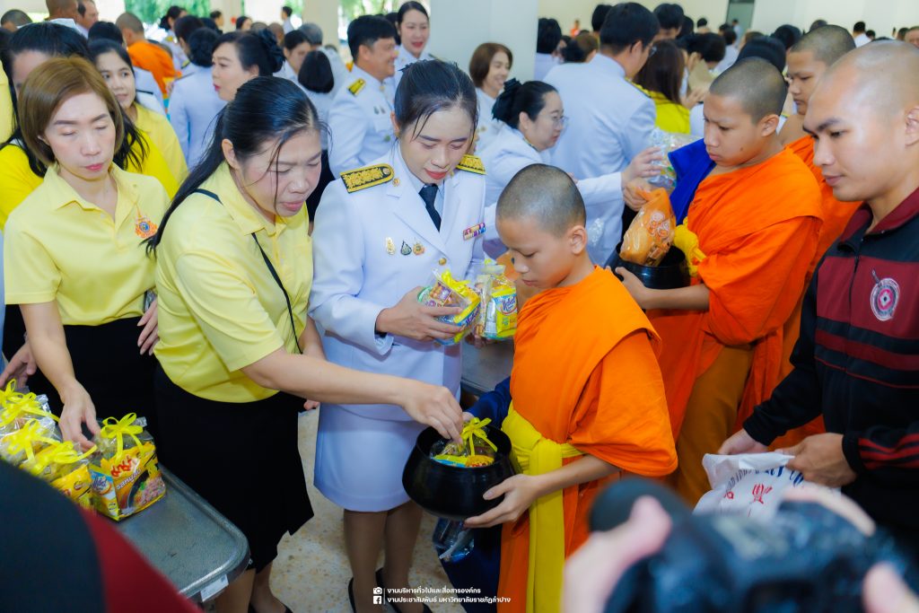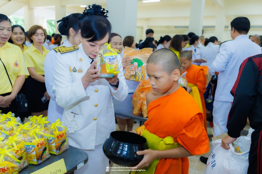 เมื่อวันที่ 13 ตุลาคม 2568 รศ.ดร.ปริเยศ สิทธิสรวง รองอธิการบดีฝ่ายบริหาร มหาวิทยาลัยราชภัฏลำปาง พร้อมด้วย อ.ดร.เยาวลักษณ์ งามแสนโรจน์ รองผู้อำนวยการสำนักศิลปะและวัฒนธรรม นางสาวธิดารัตน์ ไชยยาสืบ รักษาการหัวหน้าสำนักงานผู้อำนวยการสำนักศิลปะและวัฒนธรรม นายอาทิตย์ สุปินะ นักวิชาการศึกษา นางสาวพักตร์ชนก ริยาคำ เจ้าหน้าที่บริหารงานทั่วไป นางสาวปานฤทัย ไชยรังษี นักวิชาการศึกษา สังกัดสำนักศิลปะและวัฒนธรรม นางสาวหอมนวล ศรีริ นักประชาสัมพันธ์ นายชนาธิป เมืองมูล นักประชาสัมพันธ์ สังกัดงานบริหารทั่วไปและสื่อสารองค์กร กองกลาง สำนักงานอธิการบดี นางสาวนงเยาว์ ตะนะวงค์ เจ้าหน้าที่บริหารงานทั่วไป นางสาวบงกช สมรอบรู้ เจ้าหน้าที่บริหารงานทั่วไป นางสาวรวีพรรณ แนบสนิทธรรม นักวิชาการศึกษา นางณัฐกานต์ ห่อทอง นักวิชาการศึกษา และนายคฑาวุฒิ วังใจฟู นักวิชาการคอมพิวเตอร์ สังกัดกองบริการการศึกษา ร่วมพิธีสวดพระพุทธมนต์ ทำบุญตักบาตรถวายพระราชกุศล และพิธีวางพวงมาลาน้อมรำลึกในพระมหากรุณาธิคุณ เนื่องในวันคล้ายวันสวรรคต พระบาทสมเด็จพระบรมชนกาธิเบศร มหาภูมิพลอดุลยเดชมหาราช บรมนาถบพิตร “วันนวมินทรมหาราช” ณ หอประชุมจังหวัดลำปาง ศาลากลางจังหวัดลำปาง โดยมี นายวิบูนณ์ แววบัณฑิต ผู้ว่าราชการจังหวัดลำปาง เป็นประธานในพิธี พร้อมด้วยคณะผู้บริหาร หัวหน้าส่วนราชการ ข้าราชการ เจ้าหน้าที่ และประชาชนชาวจังหวัดลำปาง เข้าร่วมเพื่อร่วมกันแสดงความจงรักภักดี และน้อมรำลึกถึงพระมหากรุณาธิคุณอันหาที่สุดมิได้