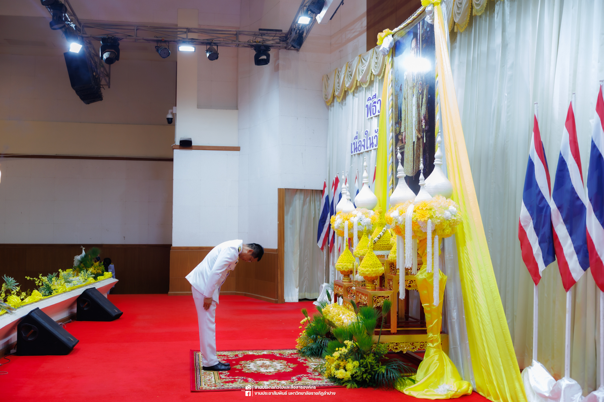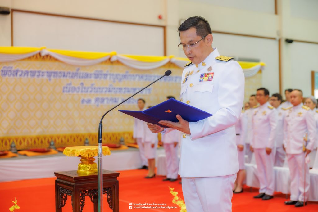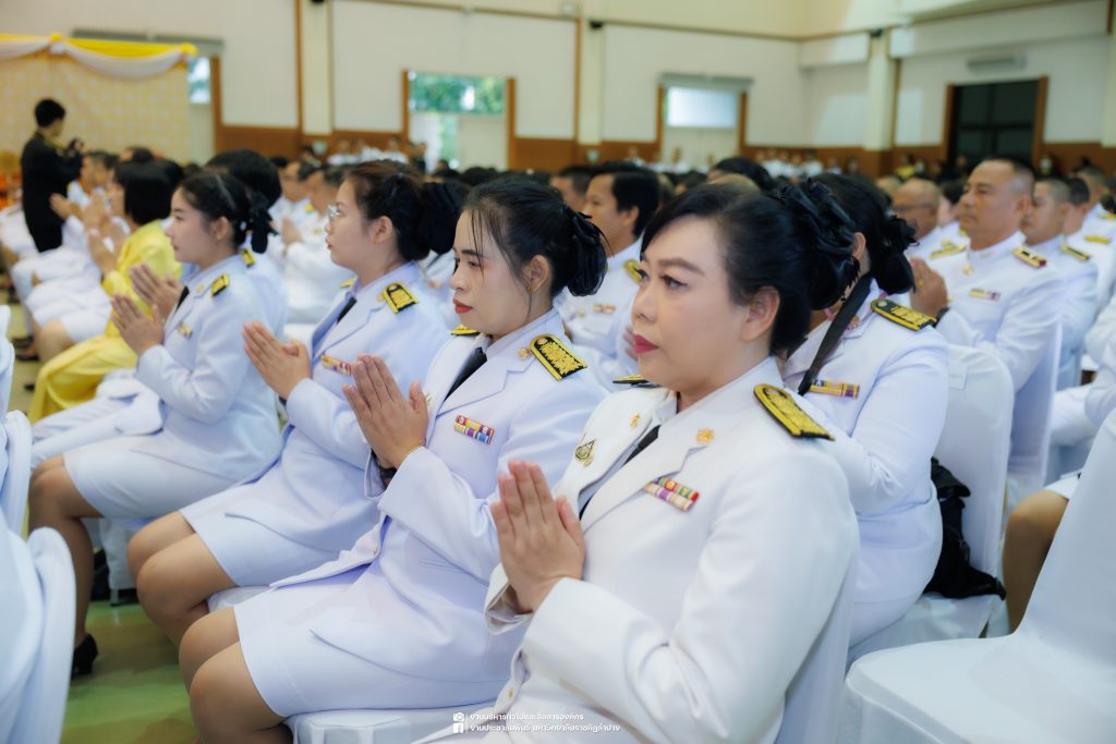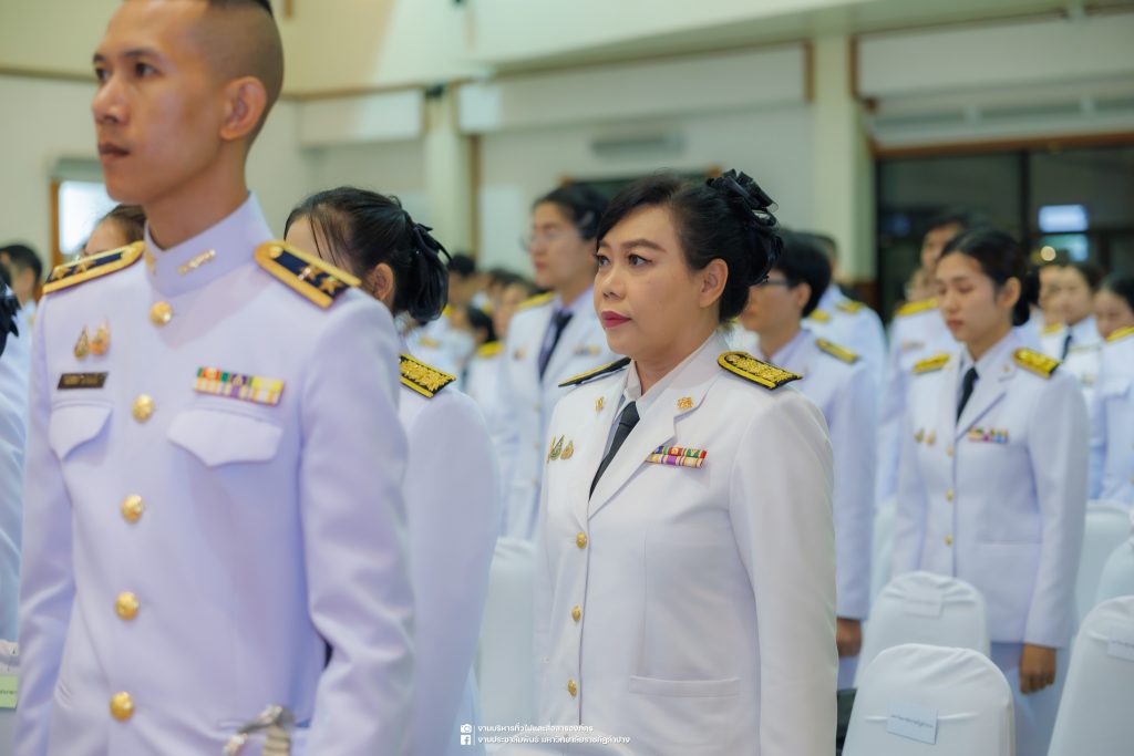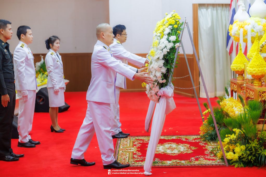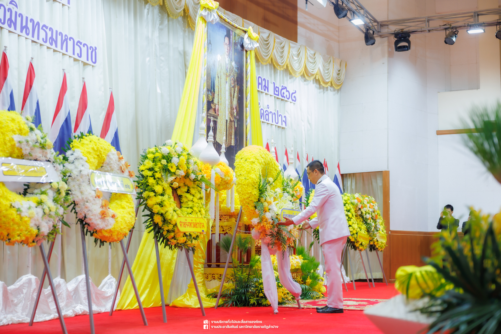เมื่อวันที่ 13 ตุลาคม 2568 รศ.ดร.ปริเยศ สิทธิสรวง รองอธิการบดีฝ่ายบริหาร มหาวิทยาลัยราชภัฏลำปาง พร้อมด้วย อ.ดร.เยาวลักษณ์ งามแสนโรจน์ รองผู้อำนวยการสำนักศิลปะและวัฒนธรรม นางสาวธิดารัตน์ ไชยยาสืบ รักษาการหัวหน้าสำนักงานผู้อำนวยการสำนักศิลปะและวัฒนธรรม นายอาทิตย์ สุปินะ นักวิชาการศึกษา นางสาวพักตร์ชนก ริยาคำ เจ้าหน้าที่บริหารงานทั่วไป นางสาวปานฤทัย ไชยรังษี นักวิชาการศึกษา สังกัดสำนักศิลปะและวัฒนธรรม นางสาวหอมนวล ศรีริ นักประชาสัมพันธ์ นายชนาธิป เมืองมูล นักประชาสัมพันธ์ สังกัดงานบริหารทั่วไปและสื่อสารองค์กร กองกลาง สำนักงานอธิการบดี นางสาวนงเยาว์ ตะนะวงค์ เจ้าหน้าที่บริหารงานทั่วไป นางสาวบงกช สมรอบรู้ เจ้าหน้าที่บริหารงานทั่วไป นางสาวรวีพรรณ แนบสนิทธรรม นักวิชาการศึกษา นางณัฐกานต์ ห่อทอง นักวิชาการศึกษา และนายคฑาวุฒิ วังใจฟู นักวิชาการคอมพิวเตอร์ สังกัดกองบริการการศึกษา ร่วมพิธีสวดพระพุทธมนต์ ทำบุญตักบาตรถวายพระราชกุศล และพิธีวางพวงมาลาน้อมรำลึกในพระมหากรุณาธิคุณ เนื่องในวันคล้ายวันสวรรคต พระบาทสมเด็จพระบรมชนกาธิเบศร มหาภูมิพลอดุลยเดชมหาราช บรมนาถบพิตร “วันนวมินทรมหาราช” ณ หอประชุมจังหวัดลำปาง ศาลากลางจังหวัดลำปาง โดยมี นายวิบูนณ์ แววบัณฑิต ผู้ว่าราชการจังหวัดลำปาง เป็นประธานในพิธี พร้อมด้วยคณะผู้บริหาร หัวหน้าส่วนราชการ ข้าราชการ เจ้าหน้าที่ และประชาชนชาวจังหวัดลำปาง เข้าร่วมเพื่อร่วมกันแสดงความจงรักภักดี และน้อมรำลึกถึงพระมหากรุณาธิคุณอันหาที่สุดมิได้