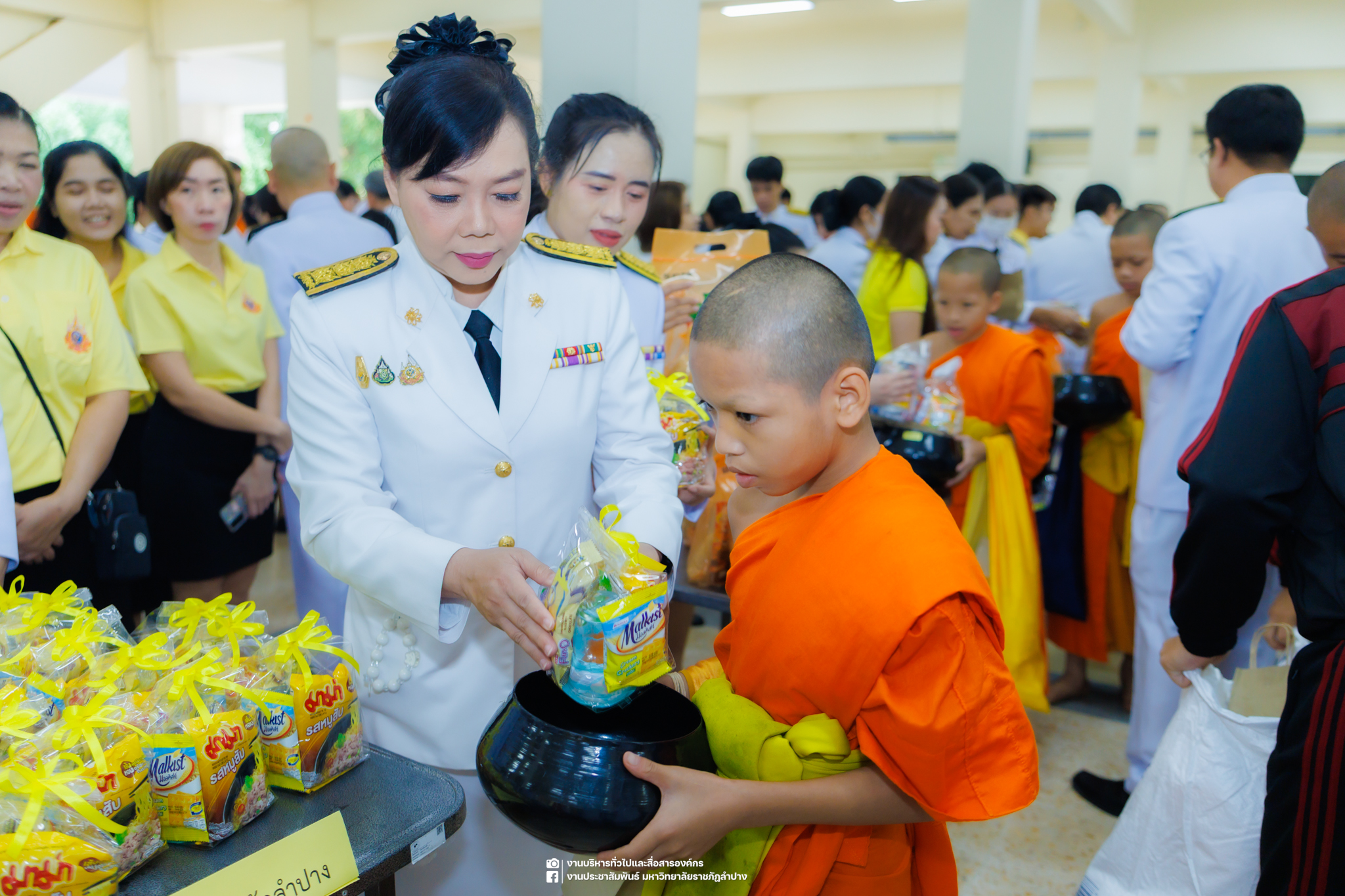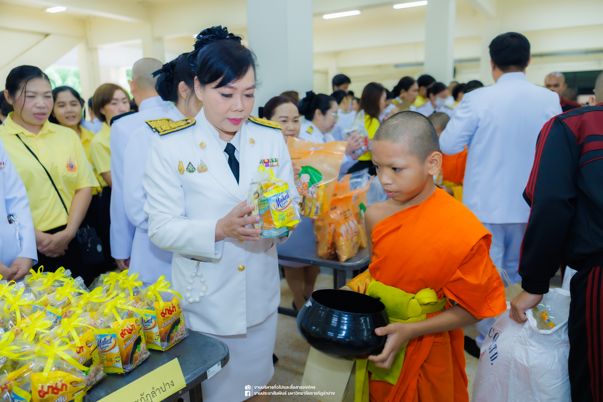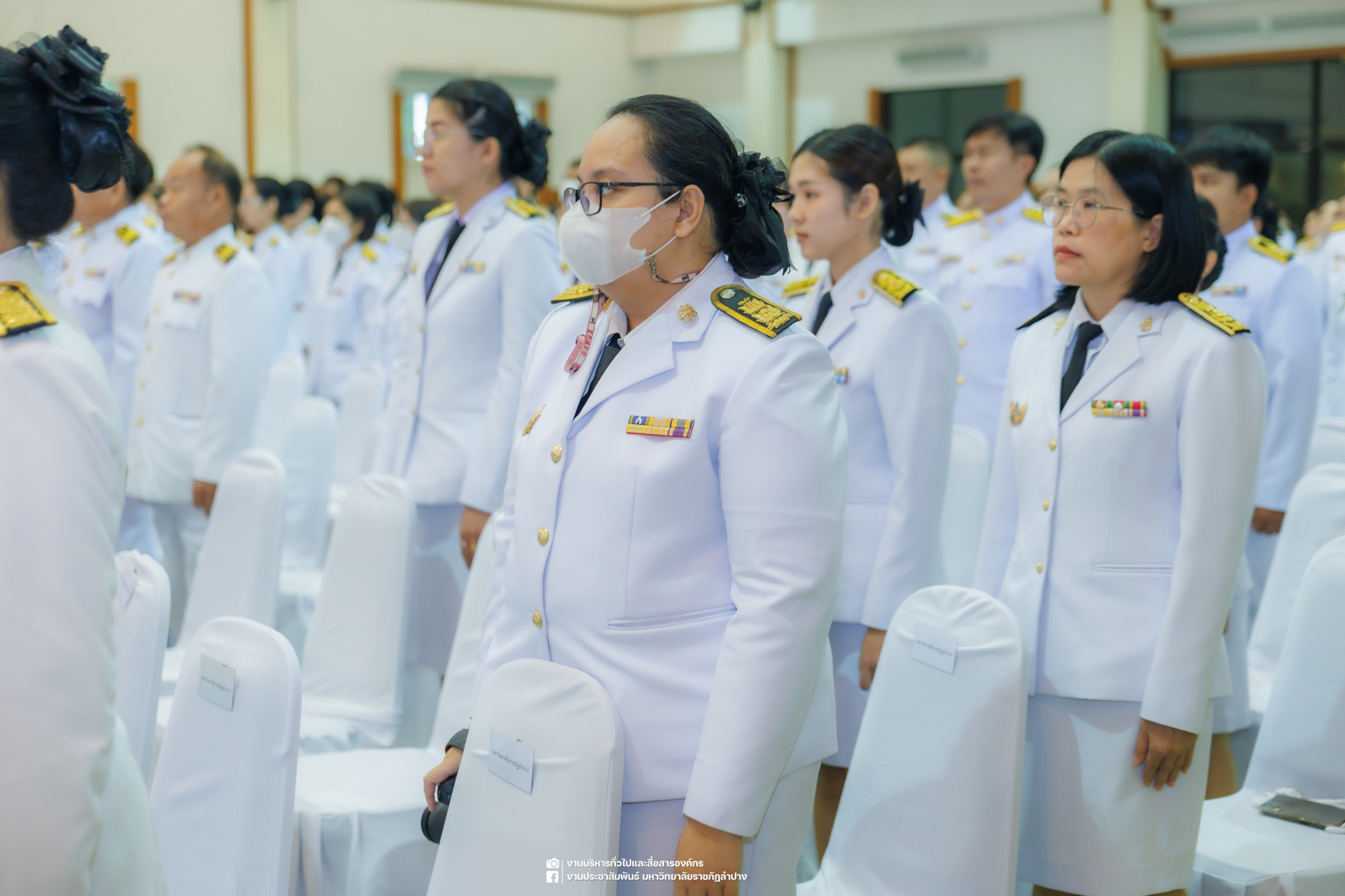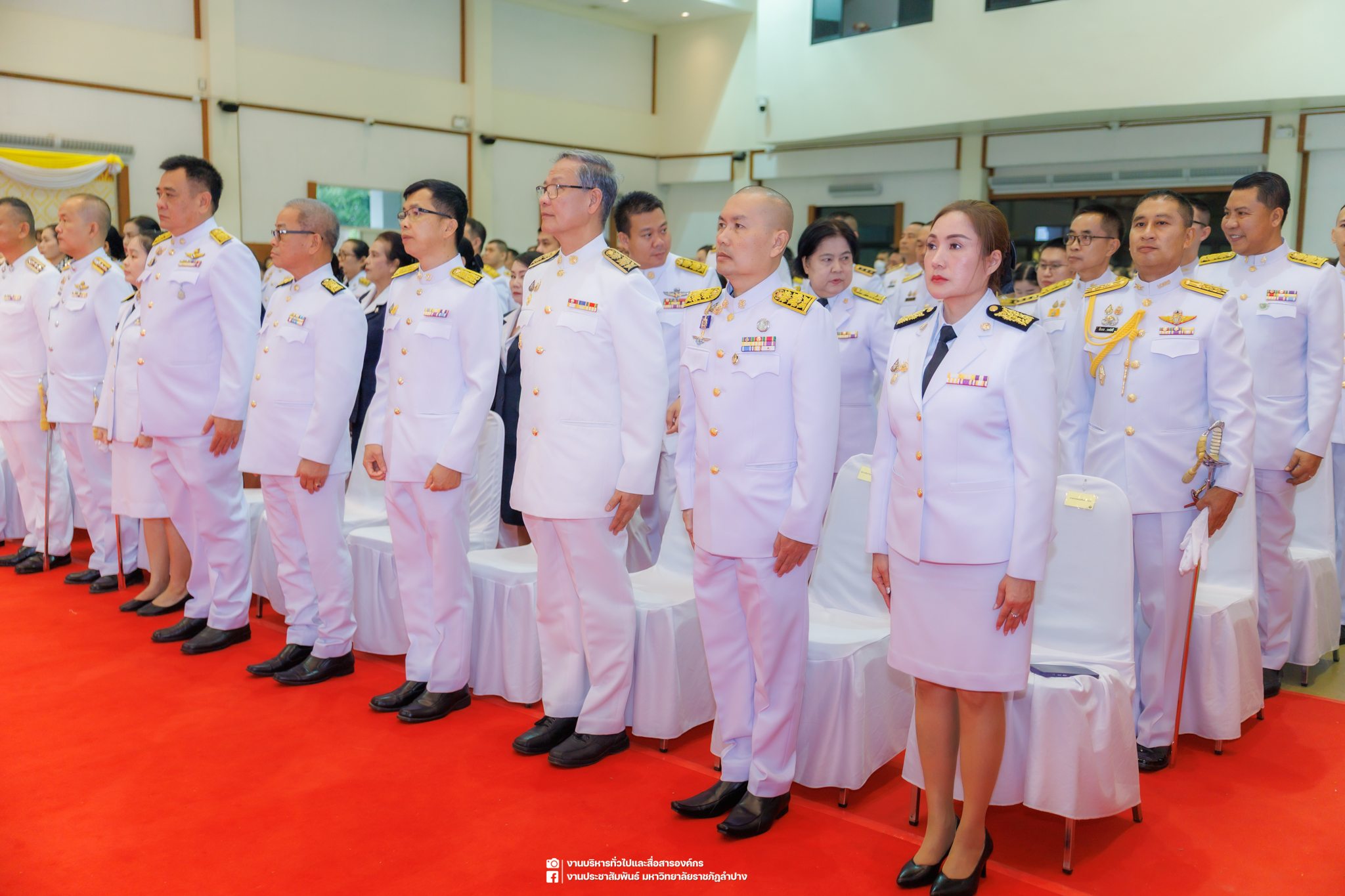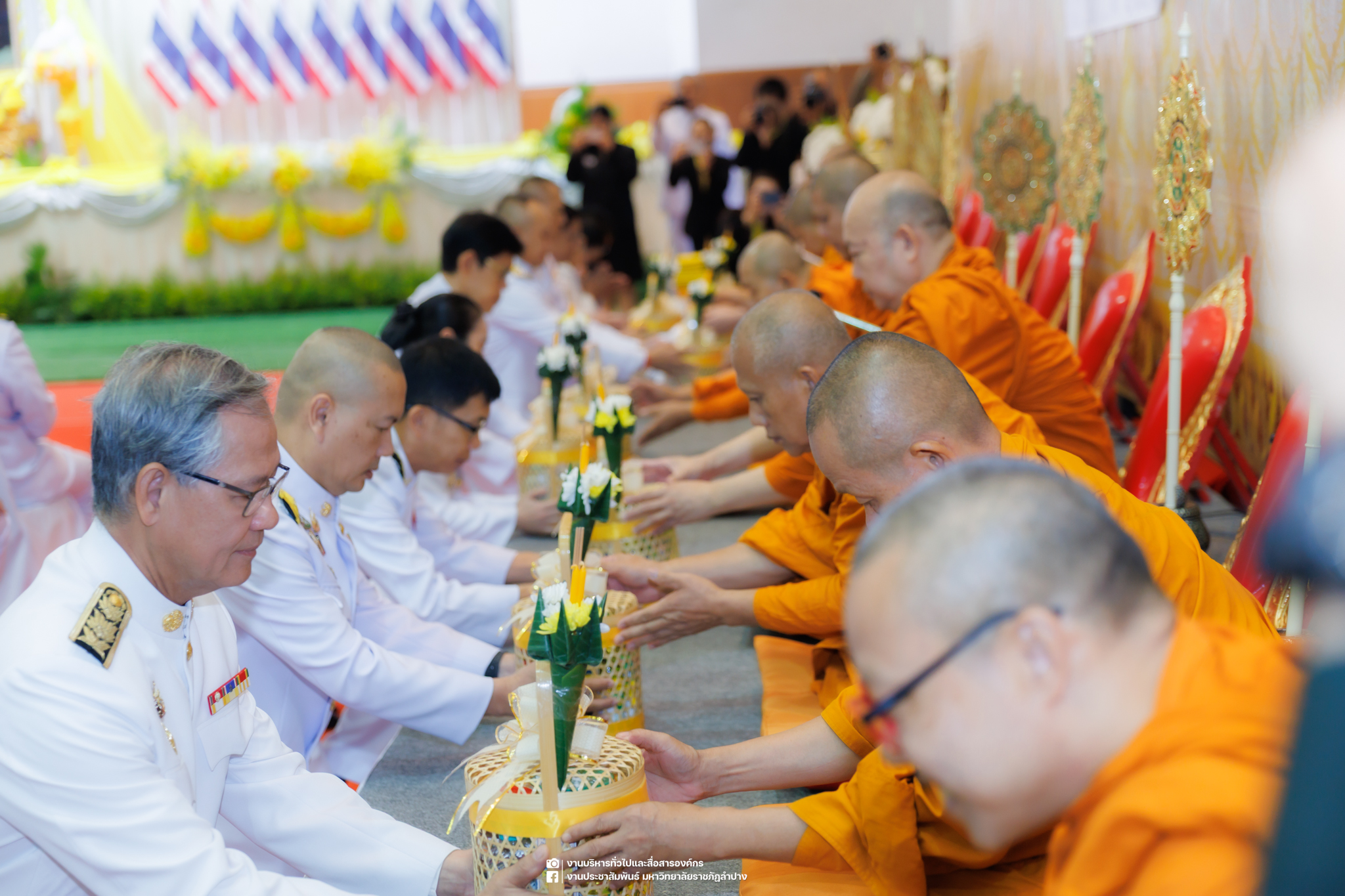 เมื่อวันที่ 13 ตุลาคม 2568 รศ.ดร.ปริเยศ สิทธิสรวง รองอธิการบดีฝ่ายบริหาร มหาวิทยาลัยราชภัฏลำปาง พร้อมด้วย อ.ดร.เยาวลักษณ์ งามแสนโรจน์ รองผู้อำนวยการสำนักศิลปะและวัฒนธรรม นางสาวธิดารัตน์ ไชยยาสืบ รักษาการหัวหน้าสำนักงานผู้อำนวยการสำนักศิลปะและวัฒนธรรม นายอาทิตย์ สุปินะ นักวิชาการศึกษา นางสาวพักตร์ชนก ริยาคำ เจ้าหน้าที่บริหารงานทั่วไป นางสาวปานฤทัย ไชยรังษี นักวิชาการศึกษา สังกัดสำนักศิลปะและวัฒนธรรม นางสาวหอมนวล ศรีริ นักประชาสัมพันธ์ นายชนาธิป เมืองมูล นักประชาสัมพันธ์ สังกัดงานบริหารทั่วไปและสื่อสารองค์กร กองกลาง สำนักงานอธิการบดี นางสาวนงเยาว์ ตะนะวงค์ เจ้าหน้าที่บริหารงานทั่วไป นางสาวบงกช สมรอบรู้ เจ้าหน้าที่บริหารงานทั่วไป นางสาวรวีพรรณ แนบสนิทธรรม นักวิชาการศึกษา นางณัฐกานต์ ห่อทอง นักวิชาการศึกษา และนายคฑาวุฒิ วังใจฟู นักวิชาการคอมพิวเตอร์ สังกัดกองบริการการศึกษา ร่วมพิธีสวดพระพุทธมนต์ ทำบุญตักบาตรถวายพระราชกุศล และพิธีวางพวงมาลาน้อมรำลึกในพระมหากรุณาธิคุณ เนื่องในวันคล้ายวันสวรรคต พระบาทสมเด็จพระบรมชนกาธิเบศร มหาภูมิพลอดุลยเดชมหาราช บรมนาถบพิตร “วันนวมินทรมหาราช” ณ หอประชุมจังหวัดลำปาง ศาลากลางจังหวัดลำปาง โดยมี นายวิบูนณ์ แววบัณฑิต ผู้ว่าราชการจังหวัดลำปาง เป็นประธานในพิธี พร้อมด้วยคณะผู้บริหาร หัวหน้าส่วนราชการ ข้าราชการ เจ้าหน้าที่ และประชาชนชาวจังหวัดลำปาง เข้าร่วมเพื่อร่วมกันแสดงความจงรักภักดี และน้อมรำลึกถึงพระมหากรุณาธิคุณอันหาที่สุดมิได้