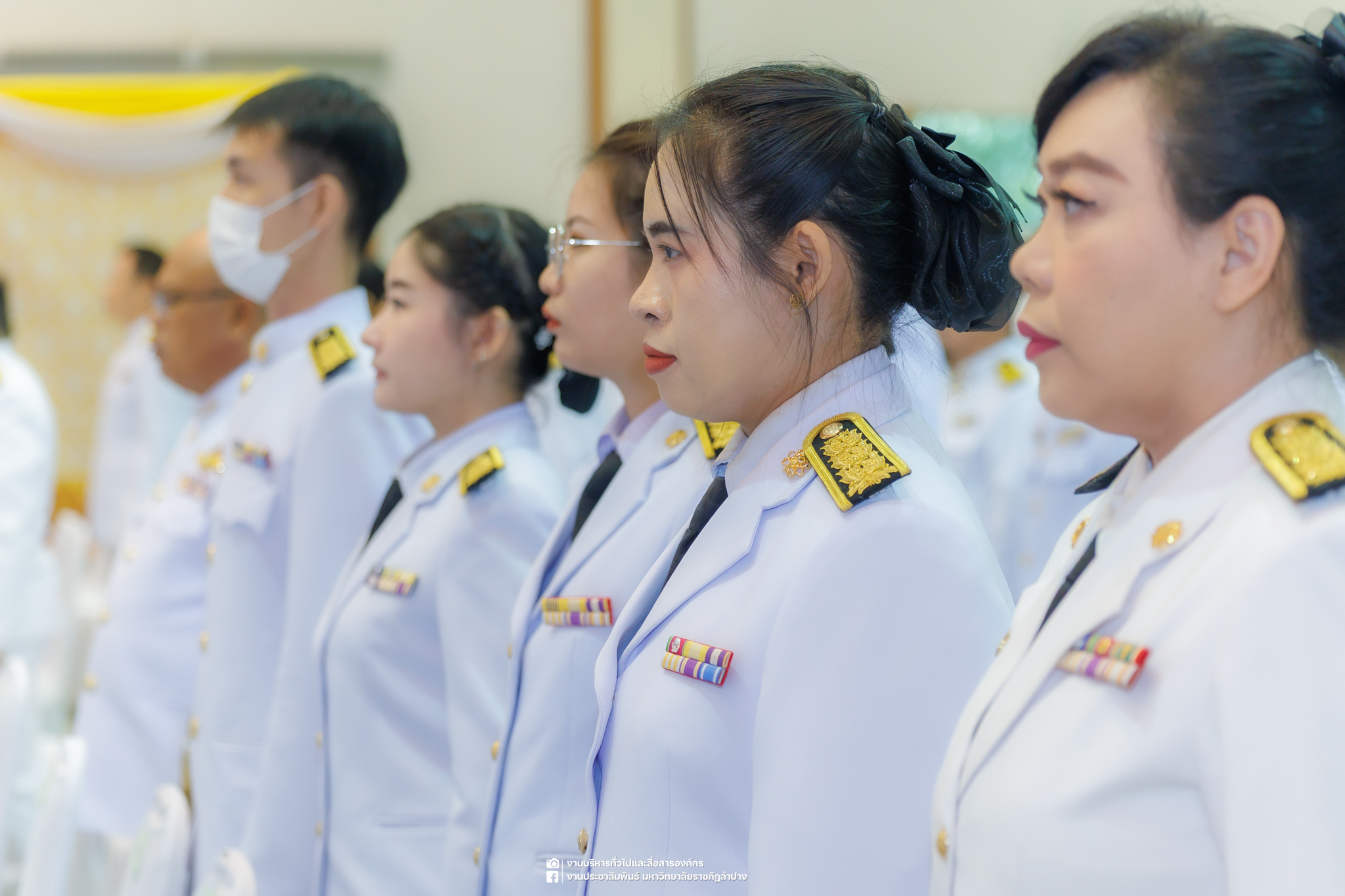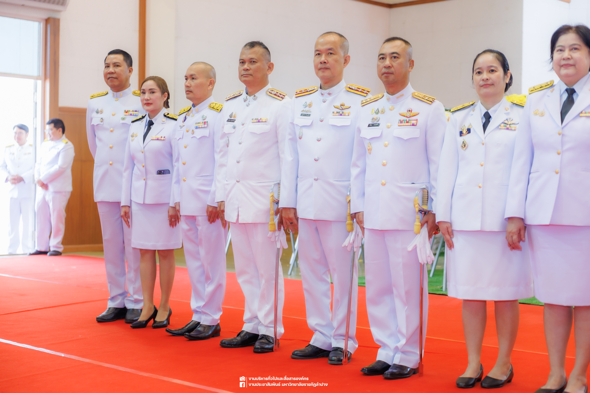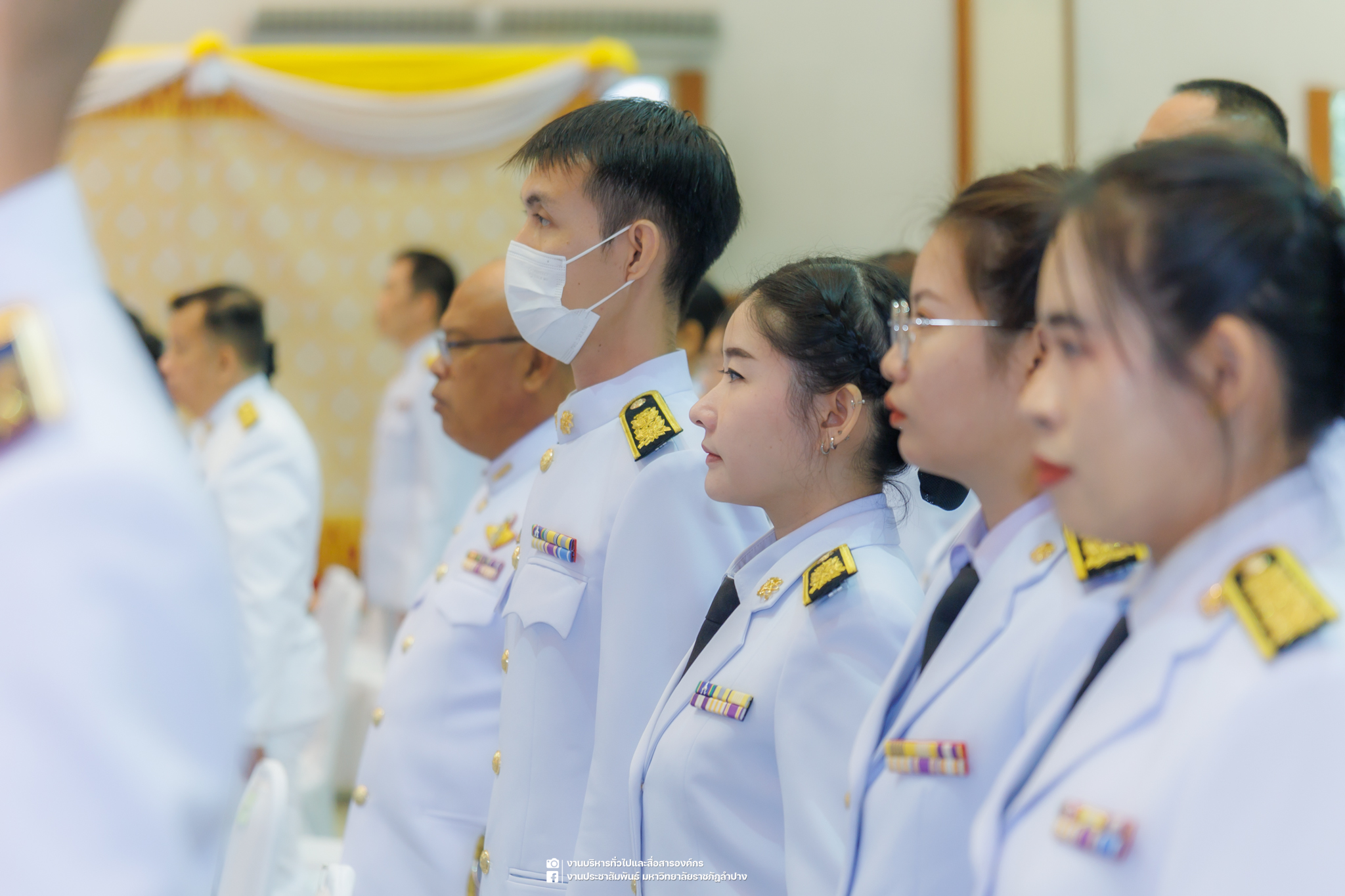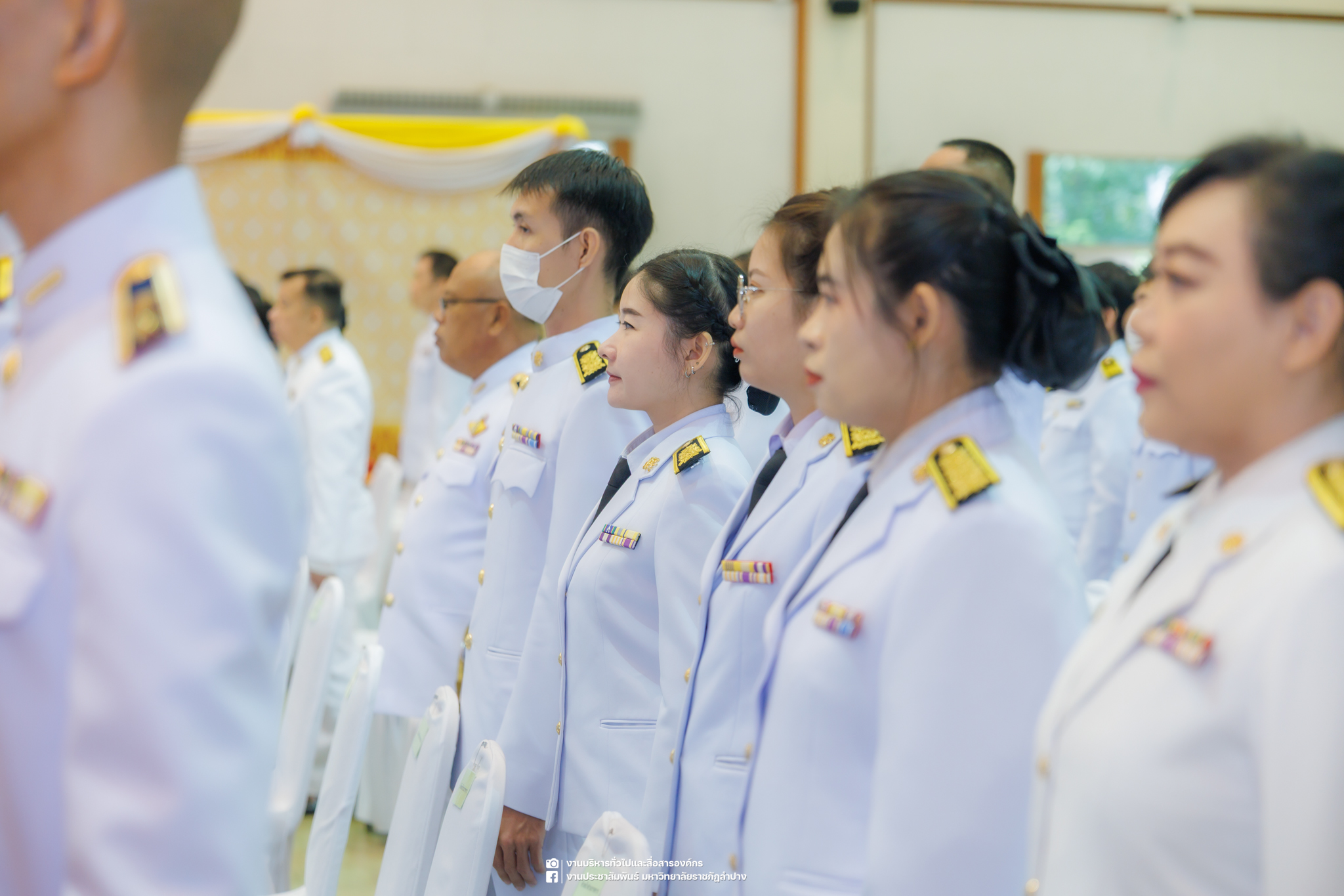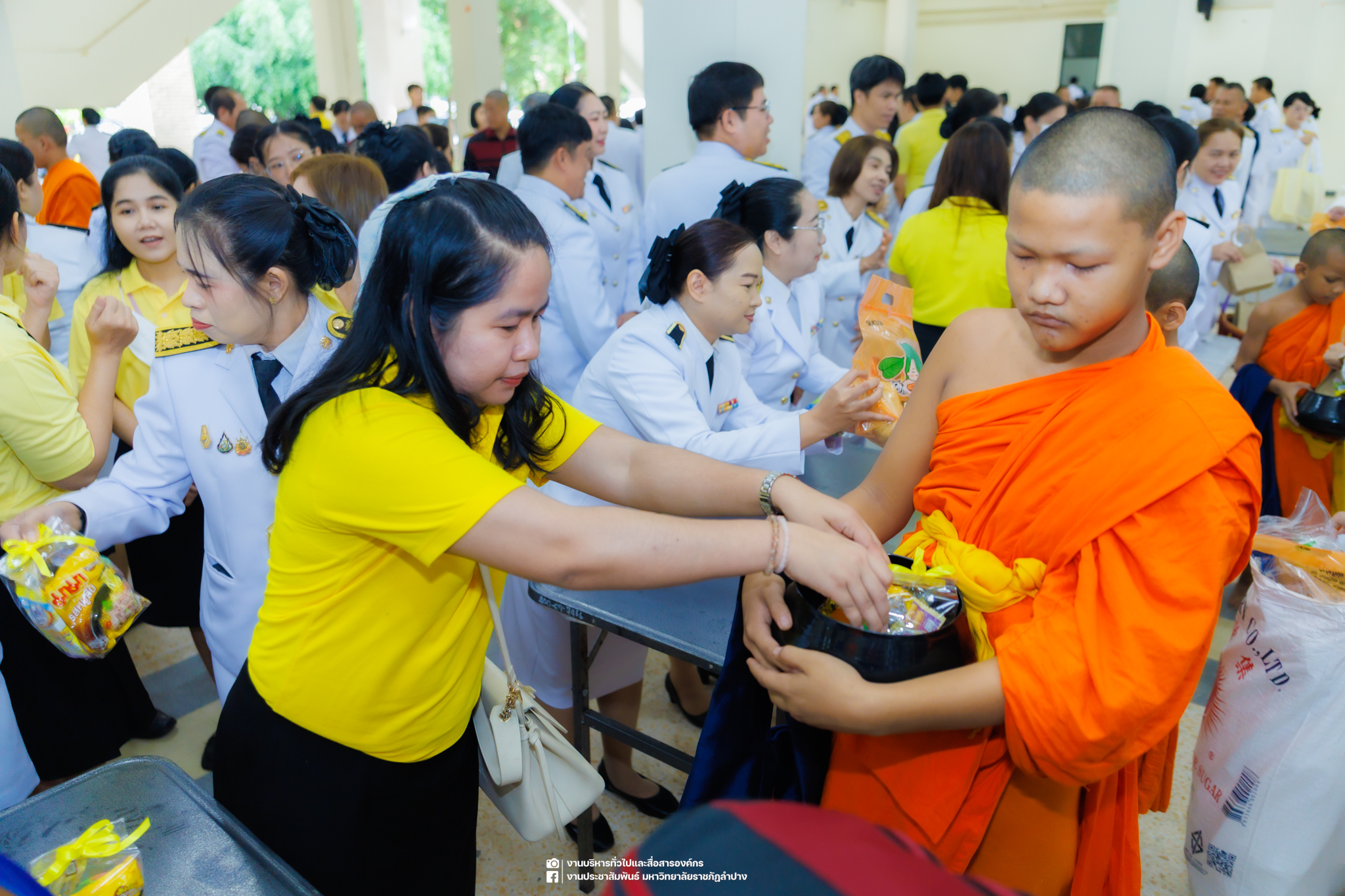 เมื่อวันที่ 13 ตุลาคม 2568 รศ.ดร.ปริเยศ สิทธิสรวง รองอธิการบดีฝ่ายบริหาร มหาวิทยาลัยราชภัฏลำปาง พร้อมด้วย อ.ดร.เยาวลักษณ์ งามแสนโรจน์ รองผู้อำนวยการสำนักศิลปะและวัฒนธรรม นางสาวธิดารัตน์ ไชยยาสืบ รักษาการหัวหน้าสำนักงานผู้อำนวยการสำนักศิลปะและวัฒนธรรม นายอาทิตย์ สุปินะ นักวิชาการศึกษา นางสาวพักตร์ชนก ริยาคำ เจ้าหน้าที่บริหารงานทั่วไป นางสาวปานฤทัย ไชยรังษี นักวิชาการศึกษา สังกัดสำนักศิลปะและวัฒนธรรม นางสาวหอมนวล ศรีริ นักประชาสัมพันธ์ นายชนาธิป เมืองมูล นักประชาสัมพันธ์ สังกัดงานบริหารทั่วไปและสื่อสารองค์กร กองกลาง สำนักงานอธิการบดี นางสาวนงเยาว์ ตะนะวงค์ เจ้าหน้าที่บริหารงานทั่วไป นางสาวบงกช สมรอบรู้ เจ้าหน้าที่บริหารงานทั่วไป นางสาวรวีพรรณ แนบสนิทธรรม นักวิชาการศึกษา นางณัฐกานต์ ห่อทอง นักวิชาการศึกษา และนายคฑาวุฒิ วังใจฟู นักวิชาการคอมพิวเตอร์ สังกัดกองบริการการศึกษา ร่วมพิธีสวดพระพุทธมนต์ ทำบุญตักบาตรถวายพระราชกุศล และพิธีวางพวงมาลาน้อมรำลึกในพระมหากรุณาธิคุณ เนื่องในวันคล้ายวันสวรรคต พระบาทสมเด็จพระบรมชนกาธิเบศร มหาภูมิพลอดุลยเดชมหาราช บรมนาถบพิตร “วันนวมินทรมหาราช” ณ หอประชุมจังหวัดลำปาง ศาลากลางจังหวัดลำปาง โดยมี นายวิบูนณ์ แววบัณฑิต ผู้ว่าราชการจังหวัดลำปาง เป็นประธานในพิธี พร้อมด้วยคณะผู้บริหาร หัวหน้าส่วนราชการ ข้าราชการ เจ้าหน้าที่ และประชาชนชาวจังหวัดลำปาง เข้าร่วมเพื่อร่วมกันแสดงความจงรักภักดี และน้อมรำลึกถึงพระมหากรุณาธิคุณอันหาที่สุดมิได้