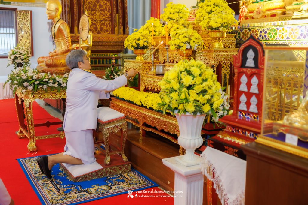 ในการนี้ ผศ.สุวรรณี จันทร์ตา รองอธิการบดีฝ่ายวิชาการ มหาวิทยาลัยราชภัฏลำปาง เป็นประธานฝ่ายฆราวาส พร้อมด้วย คณะผู้บริหาร คณาจารย์ เจ้าหน้าที่ มหาวิทยาลัยราชภัฏลำปาง มหาวิทยาลัยสวนดุสิต ศูนย์การศึกษาลำปาง มหาวิทยาลัยเนชั่นลำปาง หน่วยงานในสังกัด อว. และประชาชนชาวจังหวัดลำปาง เข้าร่วมในพิธีด้วยความสำนึกในพระมหากรุณาธิคุณอย่างหาที่สุดมิได้ โดยมี พระจินดารัตนาภรณ์ เจ้าคณะจังหวัดลำปาง เป็นประธานฝ่ายสงฆ์ เพื่อถวายเป็นพระราชกุศลอันเป็นส่วนหนึ่งของกิจกรรมบำเพ็ญกุศลตามที่จังหวัดลำปางกำหนดจัดขึ้น เวลา 17.00 น. เป็นต้นไป ตามมติมหาเถรสมาคมให้วัดทุกวัดทั่วราชอาณาจักร ประกอบพิธีบำเพ็ญกุศลสวดพระพุทธมนต์ หรือสวดพระอภิธรรม อุทิศถวายพระราชกุศล ตามเวลาที่เหมาะสมของแต่ละวัดและชุมชน ประจำทุกวันเป็นเวลา 30 วัน เริ่มตั้งแต่วันที่ 26 ตุลาคม – 24 พฤศจิกายน 2568