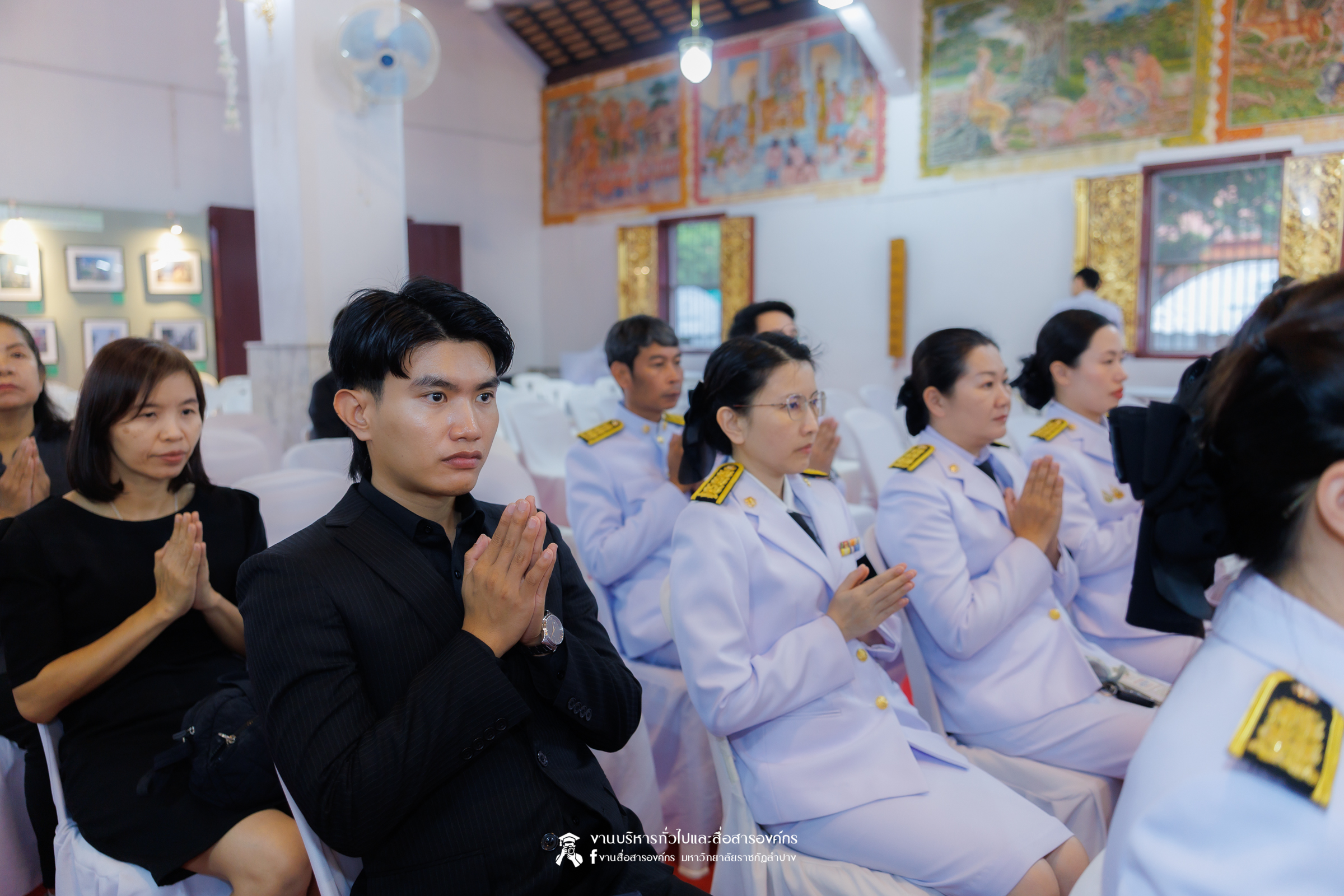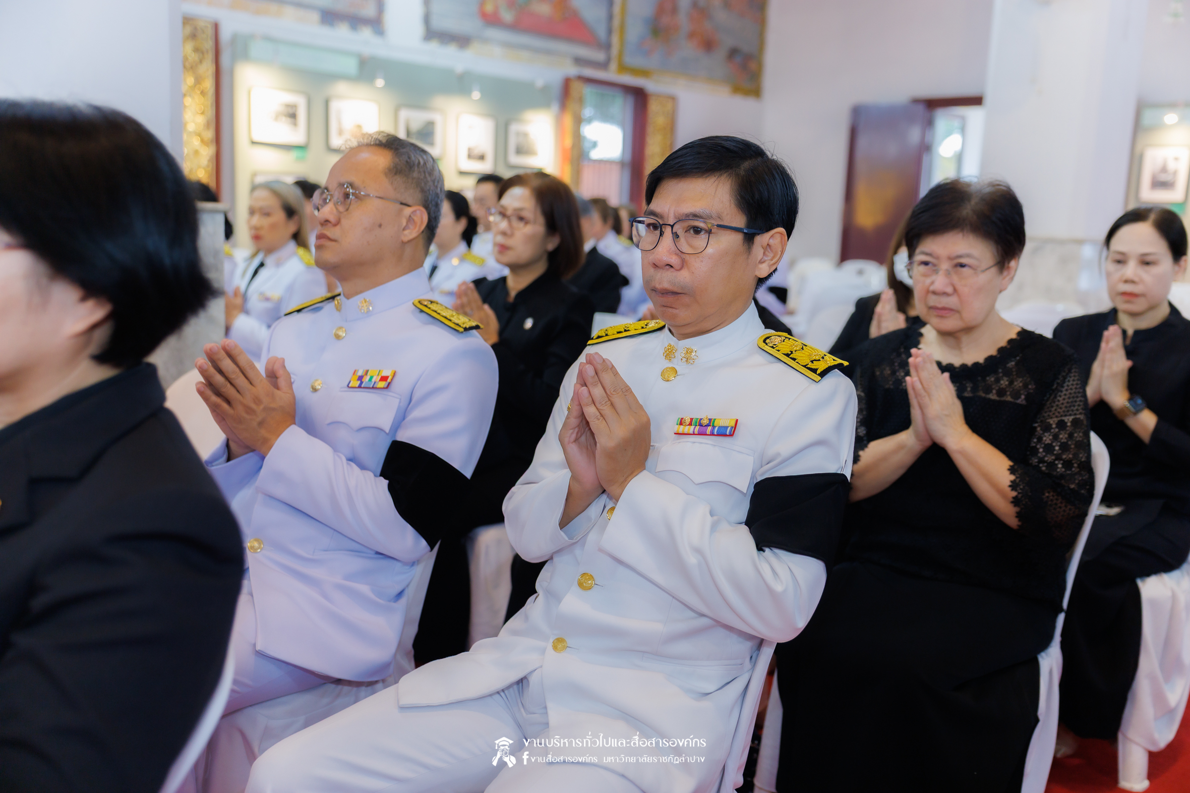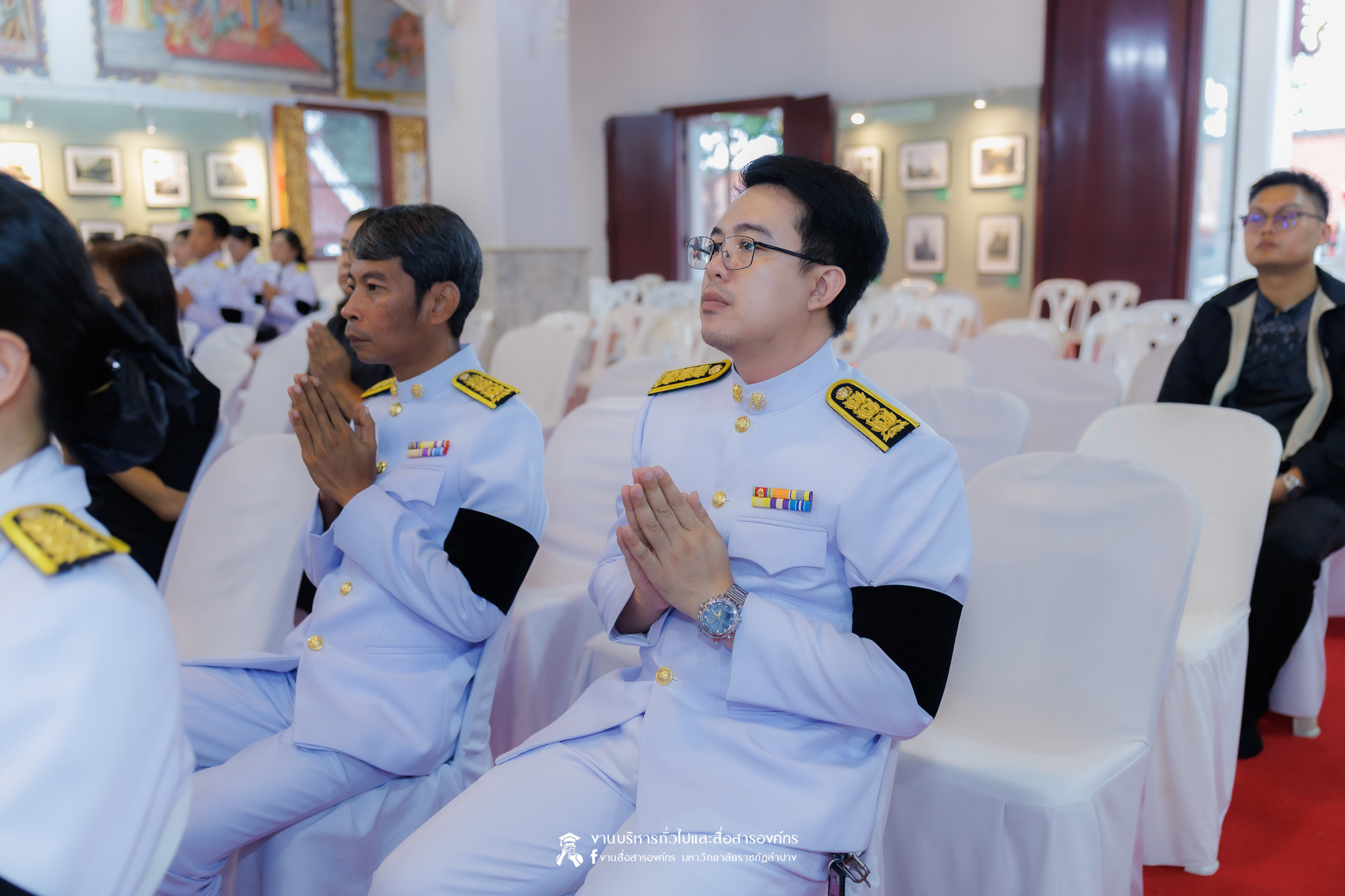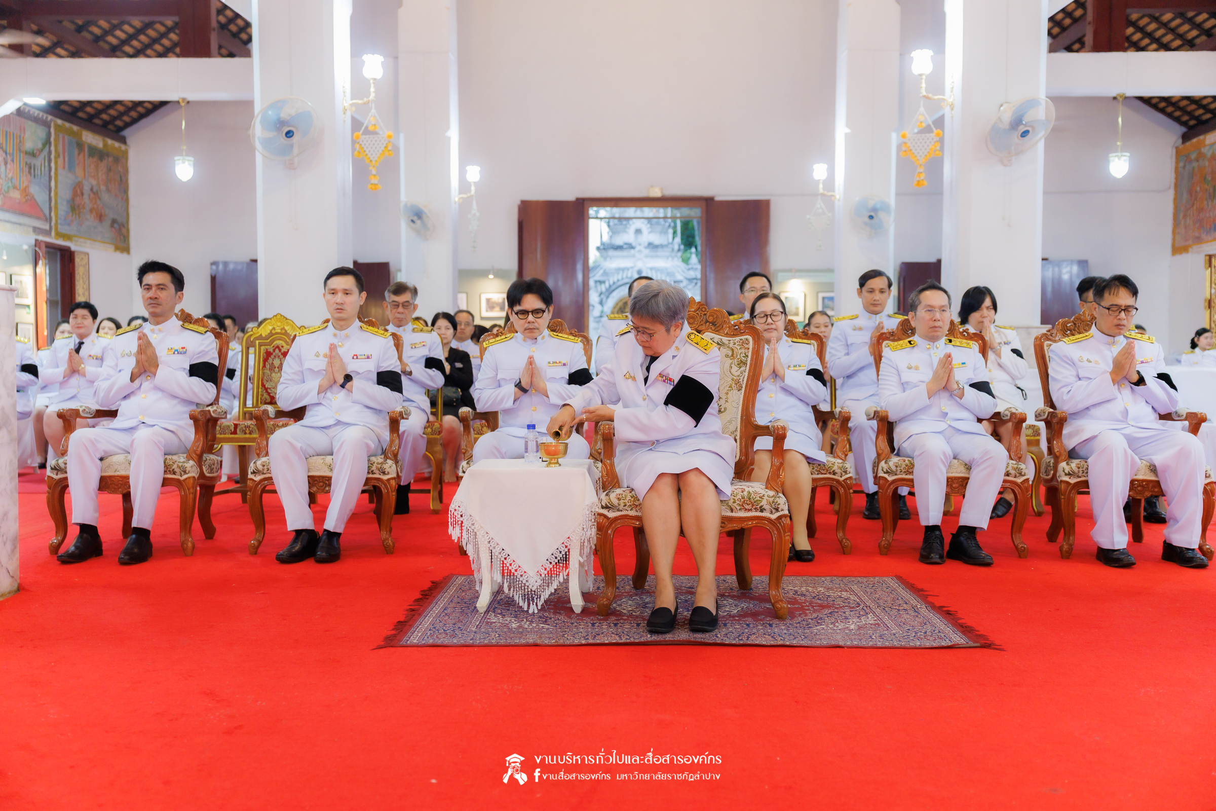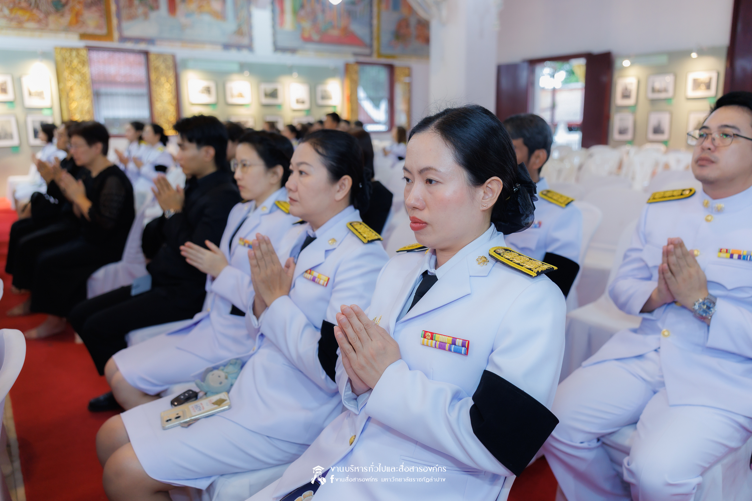 ในการนี้ ผศ.สุวรรณี จันทร์ตา รองอธิการบดีฝ่ายวิชาการ มหาวิทยาลัยราชภัฏลำปาง เป็นประธานฝ่ายฆราวาส พร้อมด้วย คณะผู้บริหาร คณาจารย์ เจ้าหน้าที่ มหาวิทยาลัยราชภัฏลำปาง มหาวิทยาลัยสวนดุสิต ศูนย์การศึกษาลำปาง มหาวิทยาลัยเนชั่นลำปาง หน่วยงานในสังกัด อว. และประชาชนชาวจังหวัดลำปาง เข้าร่วมในพิธีด้วยความสำนึกในพระมหากรุณาธิคุณอย่างหาที่สุดมิได้ โดยมี พระจินดารัตนาภรณ์ เจ้าคณะจังหวัดลำปาง เป็นประธานฝ่ายสงฆ์ เพื่อถวายเป็นพระราชกุศลอันเป็นส่วนหนึ่งของกิจกรรมบำเพ็ญกุศลตามที่จังหวัดลำปางกำหนดจัดขึ้น เวลา 17.00 น. เป็นต้นไป ตามมติมหาเถรสมาคมให้วัดทุกวัดทั่วราชอาณาจักร ประกอบพิธีบำเพ็ญกุศลสวดพระพุทธมนต์ หรือสวดพระอภิธรรม อุทิศถวายพระราชกุศล ตามเวลาที่เหมาะสมของแต่ละวัดและชุมชน ประจำทุกวันเป็นเวลา 30 วัน เริ่มตั้งแต่วันที่ 26 ตุลาคม – 24 พฤศจิกายน 2568