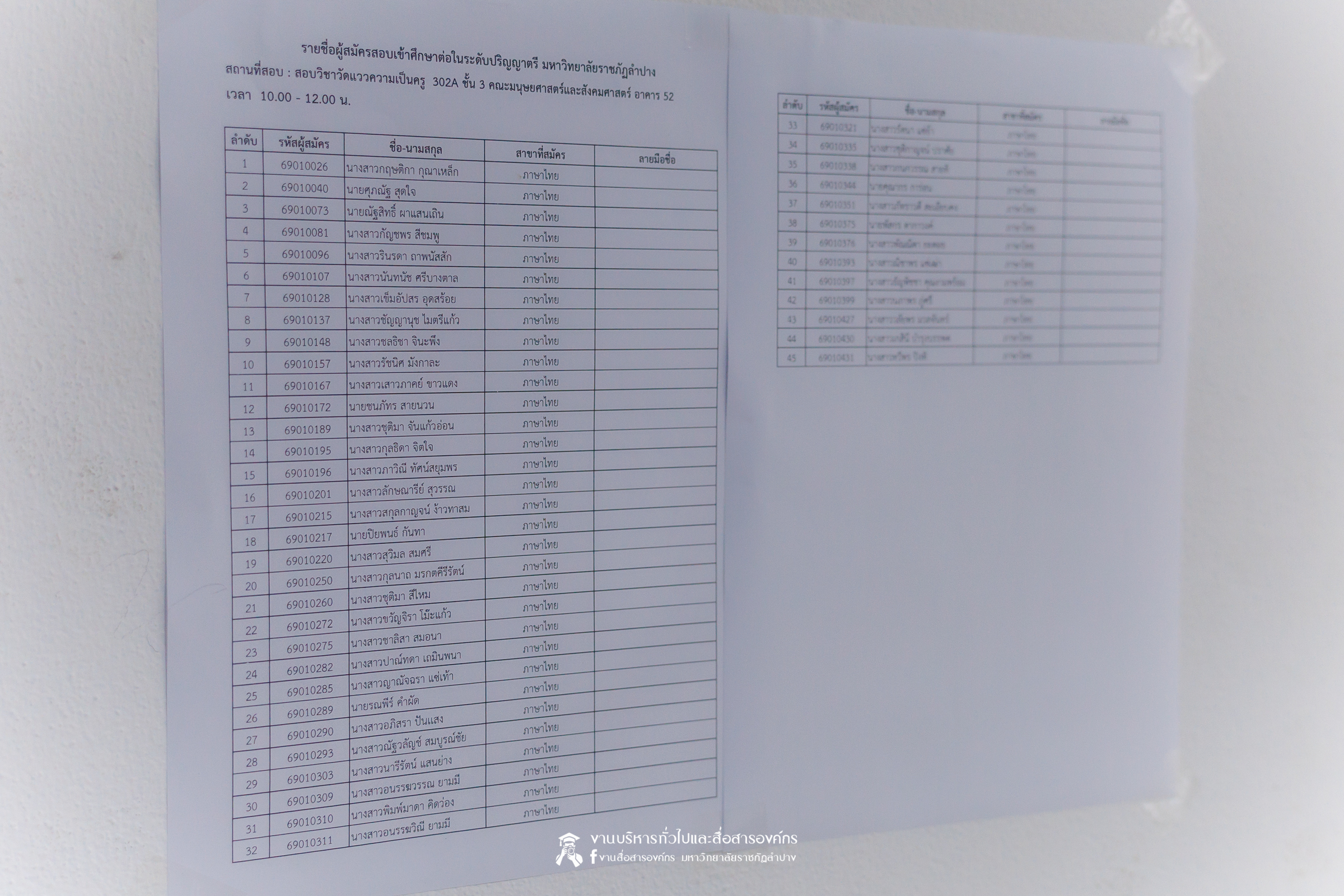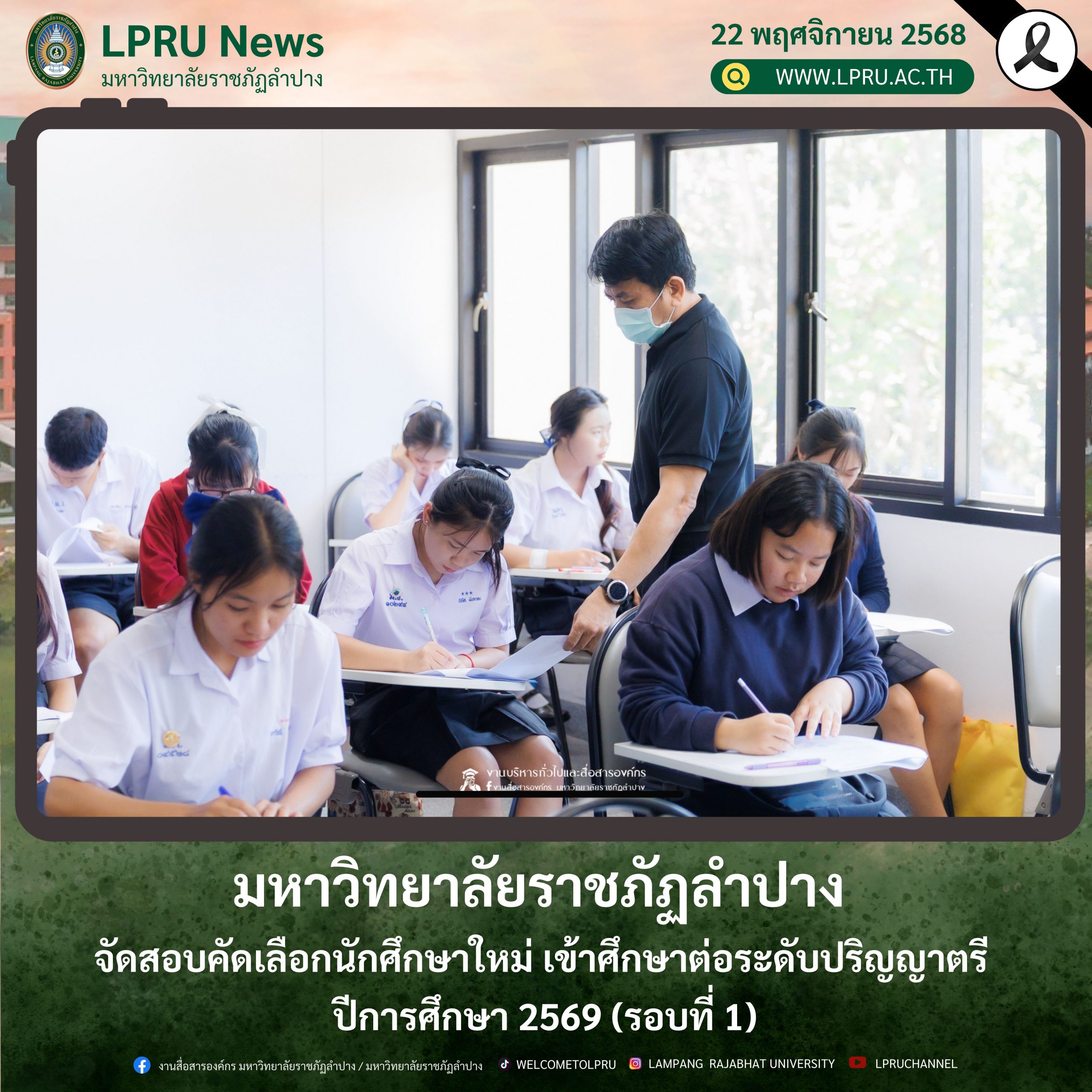 มหาวิทยาลัยราชภัฏลำปาง จัดสอบคัดเลือกนักศึกษาใหม่ เข้าศึกษาต่อระดับปริญญาตรี ปีการศึกษา 2569 (รอบที่ 1)