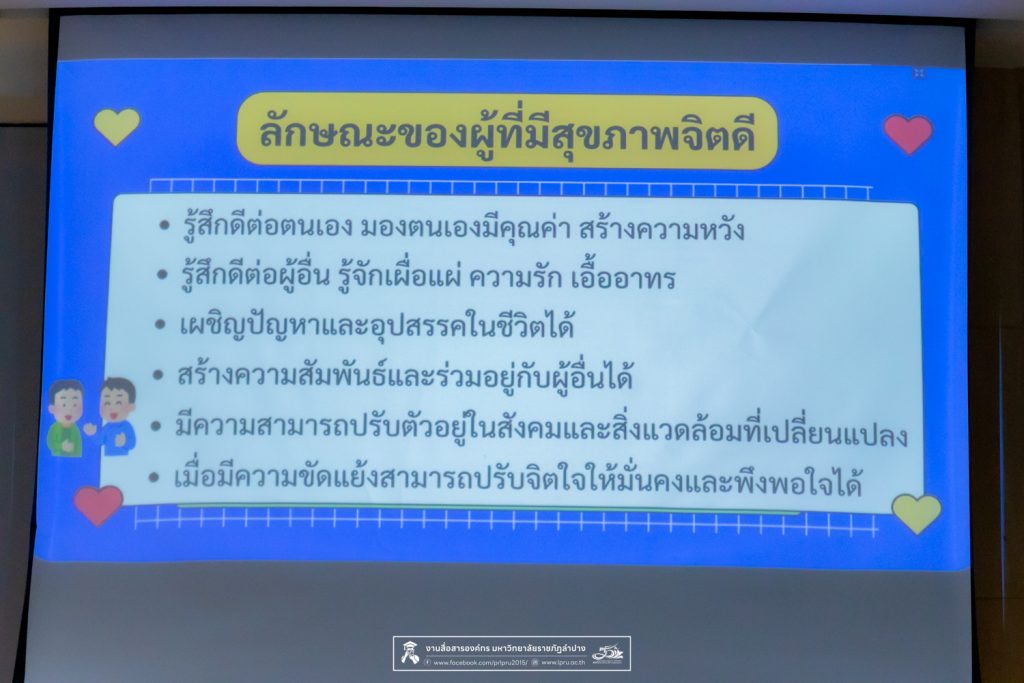 โครงการดังกล่าวจัดขึ้นโดยกองพัฒนานักศึกษา มหาวิทยาลัยราชภัฏลำปาง ร่วมกับศูนย์สุขภาพจิตที่ 1 จังหวัดเชียงใหม่ เพื่อเสริมสร้างองค์ความรู้ ทักษะ และมุมมองที่ถูกต้องในการสื่อสารเชิงบวก การรับฟังอย่างลึกซึ้ง และการให้คำปรึกษาเบื้องต้น อันจะนำไปสู่การสร้างสังคมแห่งความเข้าใจ ความเอื้ออาทร และการมีสุขภาวะทางจิตที่ดีร่วมกัน
