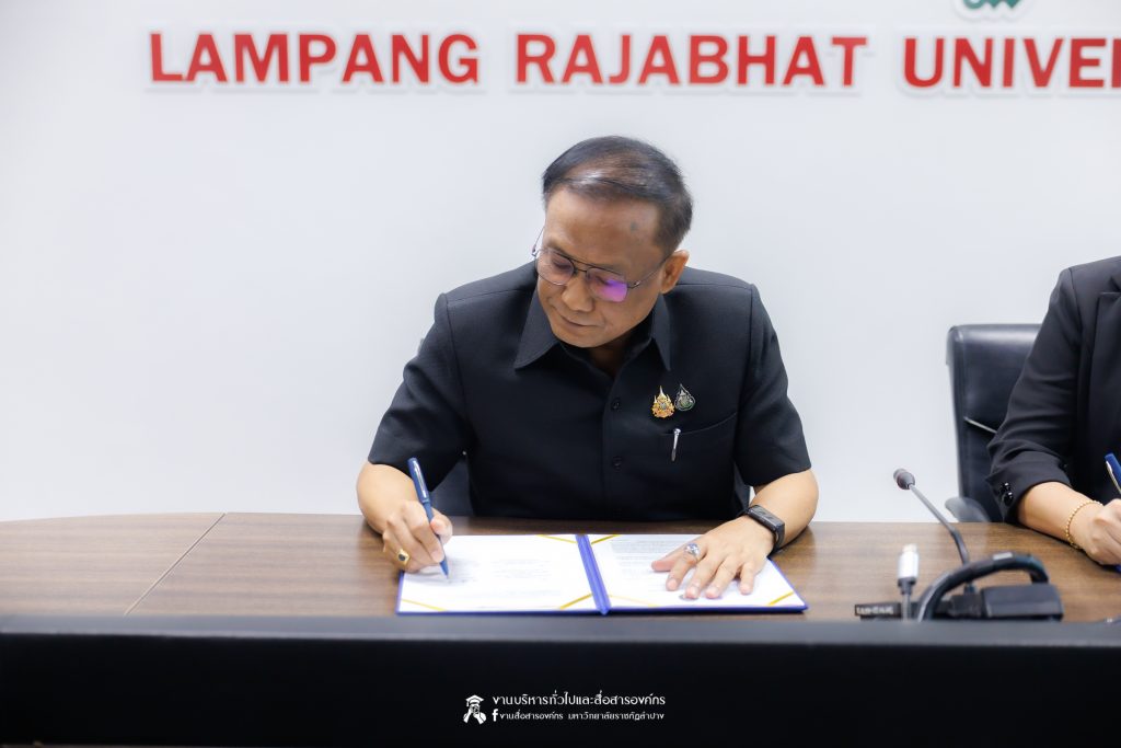 เมื่อวันที่ 23 ธันวาคม 2568 มหาวิทยาลัยราชภัฏลำปาง ได้ลงนามบันทึกความเข้าใจ (Memorandum of Understanding : MOU) โครงการพัฒนาความเป็นเลิศของสถาบันอุดมศึกษาและพัฒนากำลังคนขั้นสูง (Reinventing University) ประจำปีงบประมาณ พ.ศ. 2569 ร่วมกับสำนักงานปลัดกระทรวงการอุดมศึกษา วิทยาศาสตร์ วิจัยและนวัตกรรม (สป.อว.) โดย นายพันธุ์เพิ่มศักดิ์ อารุณี ผู้ช่วยปลัดกระทรวงการอุดมศึกษา วิทยาศาสตร์ วิจัยและนวัตกรรม ปฏิบัติราชการแทนปลัดกระทรวง ฯ กับ มหาวิทยาลัยราชภัฏลำปาง โดย รศ.ดร.กิตติศักดิ์ สมุทธารักษ์ อธิการบดีมหาวิทยาลัยราชภัฏลำปาง โดยมี ผศ.ณัฐนันท์ ฐิติยาปราโมทย์ ประธานหลักสูตรบริหารธุรกิจมหาบัณฑิตสาขาวิชาการบัญชี คณะวิทยาการจัดการ มหาวิทยาลัยราชภัฏลำปาง ลงนามเป็นพยาน ณ ห้องประชุมดอกปีบ ชั้น 2 อาคารสำนักงานอธิการบดีมหาวิทยาลัยราชภัฏลำปาง โดยบันทึกการลงนามดังกล่าวจะนำส่งให้กับทางสำนักงานปลัดกระทรวงการอุดมศึกษา วิทยาศาสตร์ วิจัยและนวัตกรรม (สป.อว.) เพื่อเซ็นลงนามในลำดับ ต่อไป