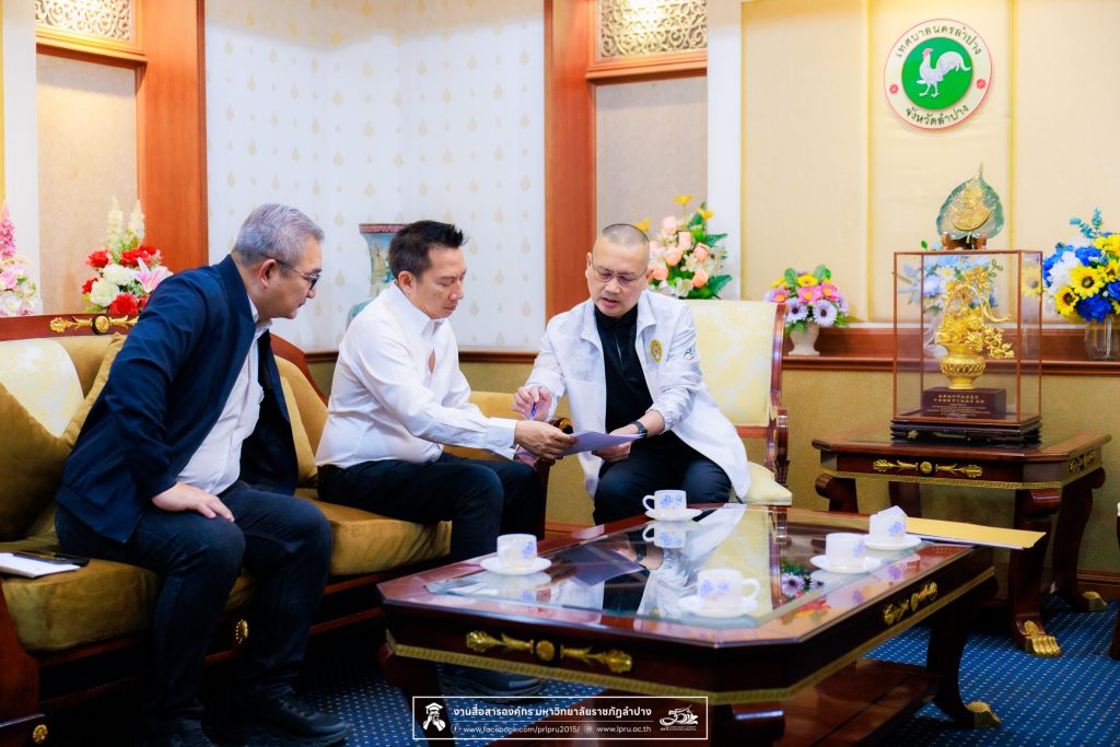 เมื่อวันที่ 24 มีนาคม 2569 รศ.ดร.ปริเยศ สิทธิสรวง รองอธิการบดีฝ่ายบริหาร มหาวิทยาลัยราชภัฏลำปาง พร้อมด้วย น.ส.ศศธร เครือนันตา นักประชาสัมพันธ์ ชำนาญการ ปฏิบัติหน้าที่ในตำแหน่งหัวหน้างานบริหารทั่วไปและสื่อสารองค์กร น.ส.นันทนัช กลิ่นซ้อน เจ้าหน้าที่ปฏิบัติงานบริหารงานตำแหน่งทางวิชาการ สังกัดงานบริหารทรัพยากรบุคคลและนิติการ และนายชนาธิป เมืองมูล นักประชาสัมพันธ์ ปฏิบัติการ สังกัดงานบริหารทั่วไปและสื่อสารองค์กร เข้าพบ นายปุณณสิน มณีนันทน์ นายกเทศมนตรีนครลำปาง โดยมี นายธนภณ แสงวิจิตร สมาชิกสภาเทศบาลนครลำปาง ให้การต้อนรับและร่วมแลกเปลี่ยนข้อมูลด้านงานจราจรที่อยู่ในความดูแลและรับผิดชอบของเทศบาลนครลำปาง ณ ห้องรับรองนายกเทศมนตรีเทศบาลนครลำปาง ชั้น 3 สำนักงานเทศบาลนครลำปาง อำเภอเมือง จังหวัดลำปาง