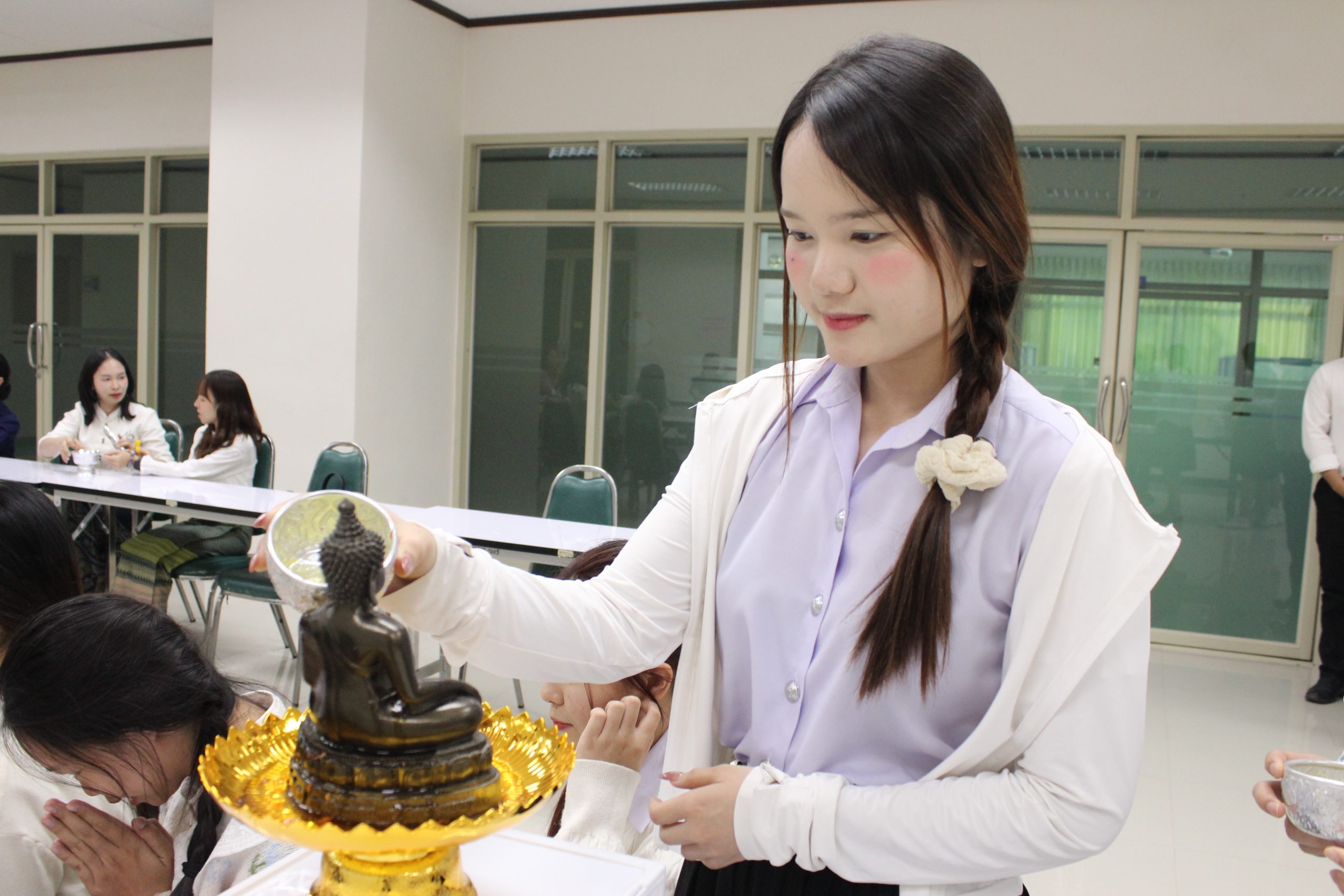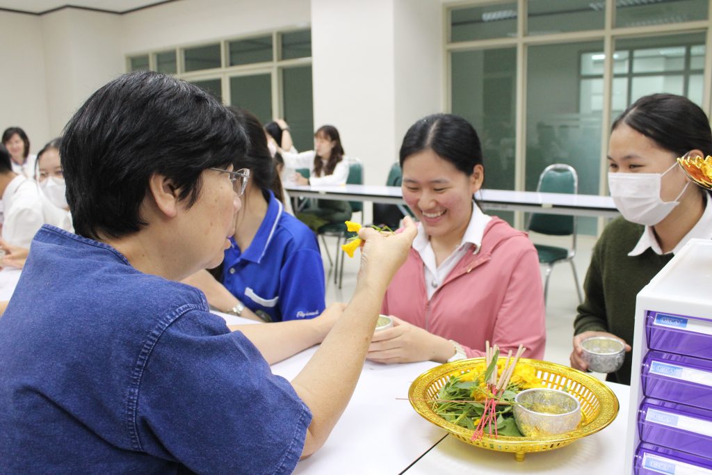 ภายในงาน นักศึกษาหลักสูตรพยาบาลศาสตร์ได้ร่วมกันจัดกิจกรรมเพื่อสืบสานวัฒนธรรมอันดีงามของล้านนา โดยตัวแทนสโมสรนักศึกษาเป็นผู้นำกล่าวคำขอขมา ก่อนร่วมพิธีสรงน้ำพระพุทธรูป และรดน้ำดำหัวคณาจารย์ เพื่อแสดงมุทิตาจิต ท่ามกลางบรรยากาศที่อบอุ่นและเปี่ยมด้วยความเคารพ