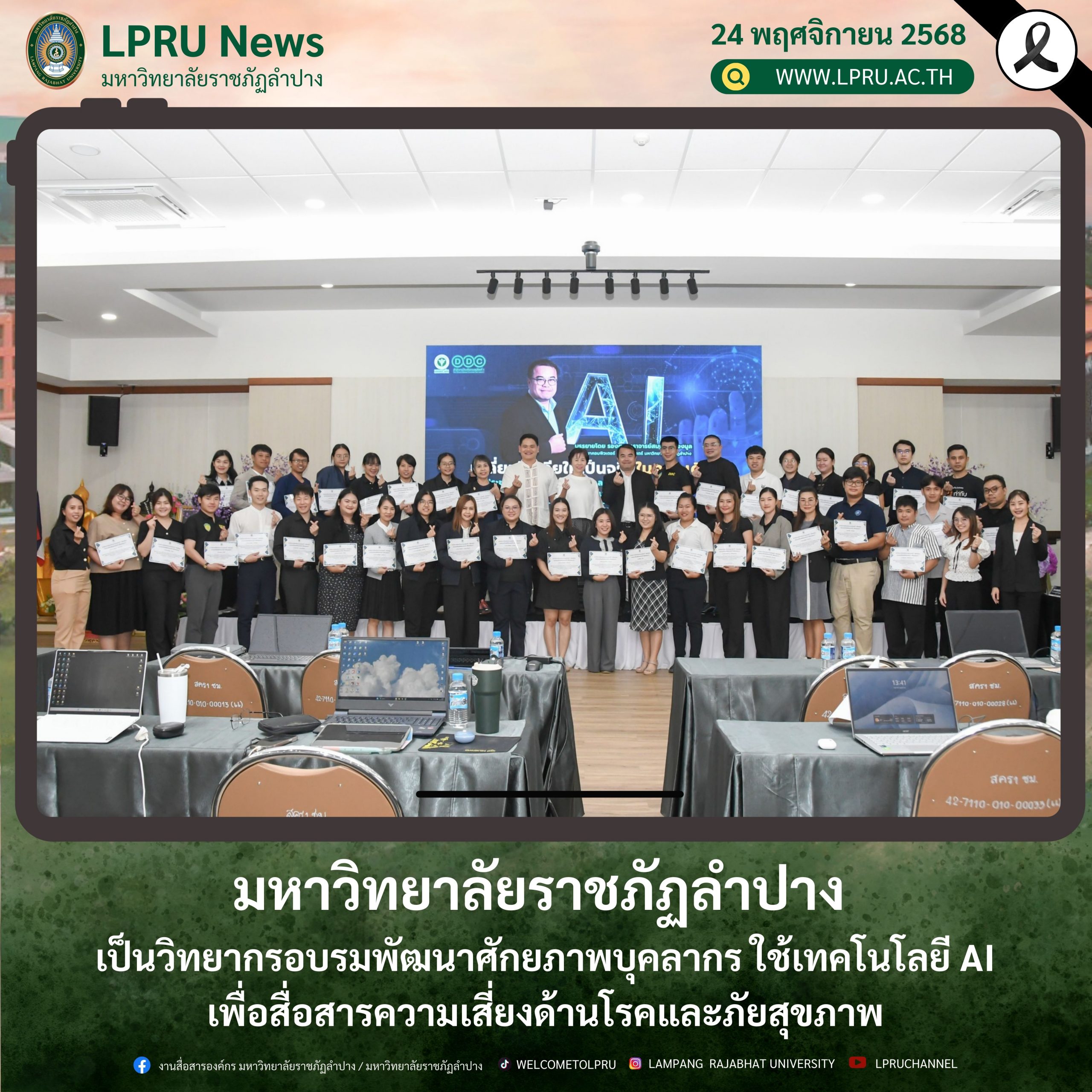 มร.ลป. เป็นวิทยากรอบรมพัฒนาศักยภาพบุคลากร ใช้เทคโนโลยี AI เพื่อสื่อสารความเสี่ยงด้านโรคและภัยสุขภาพ