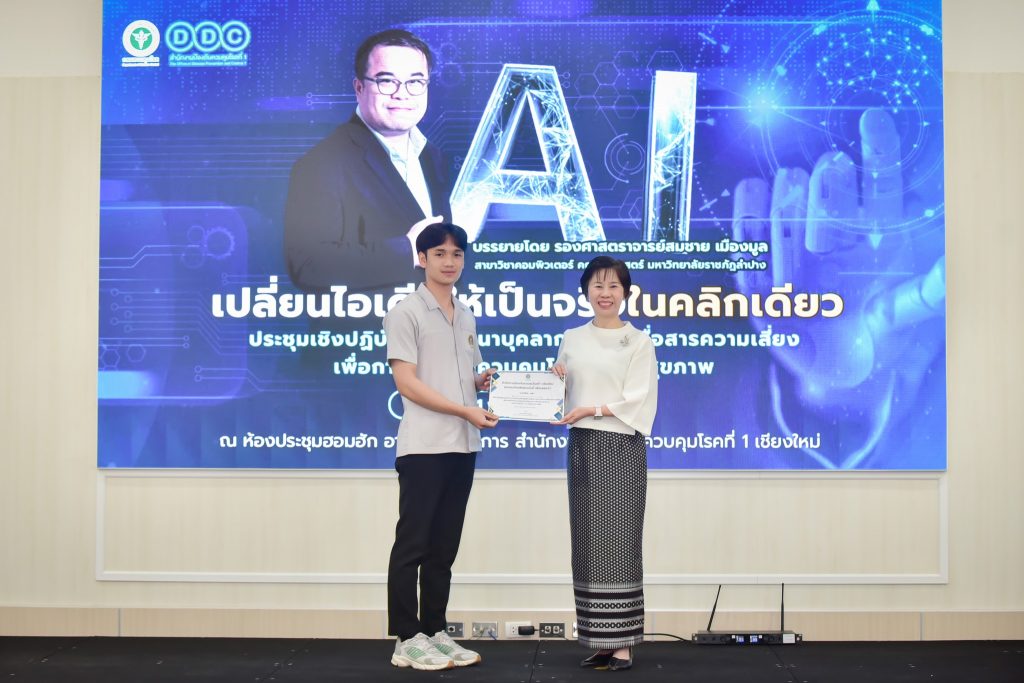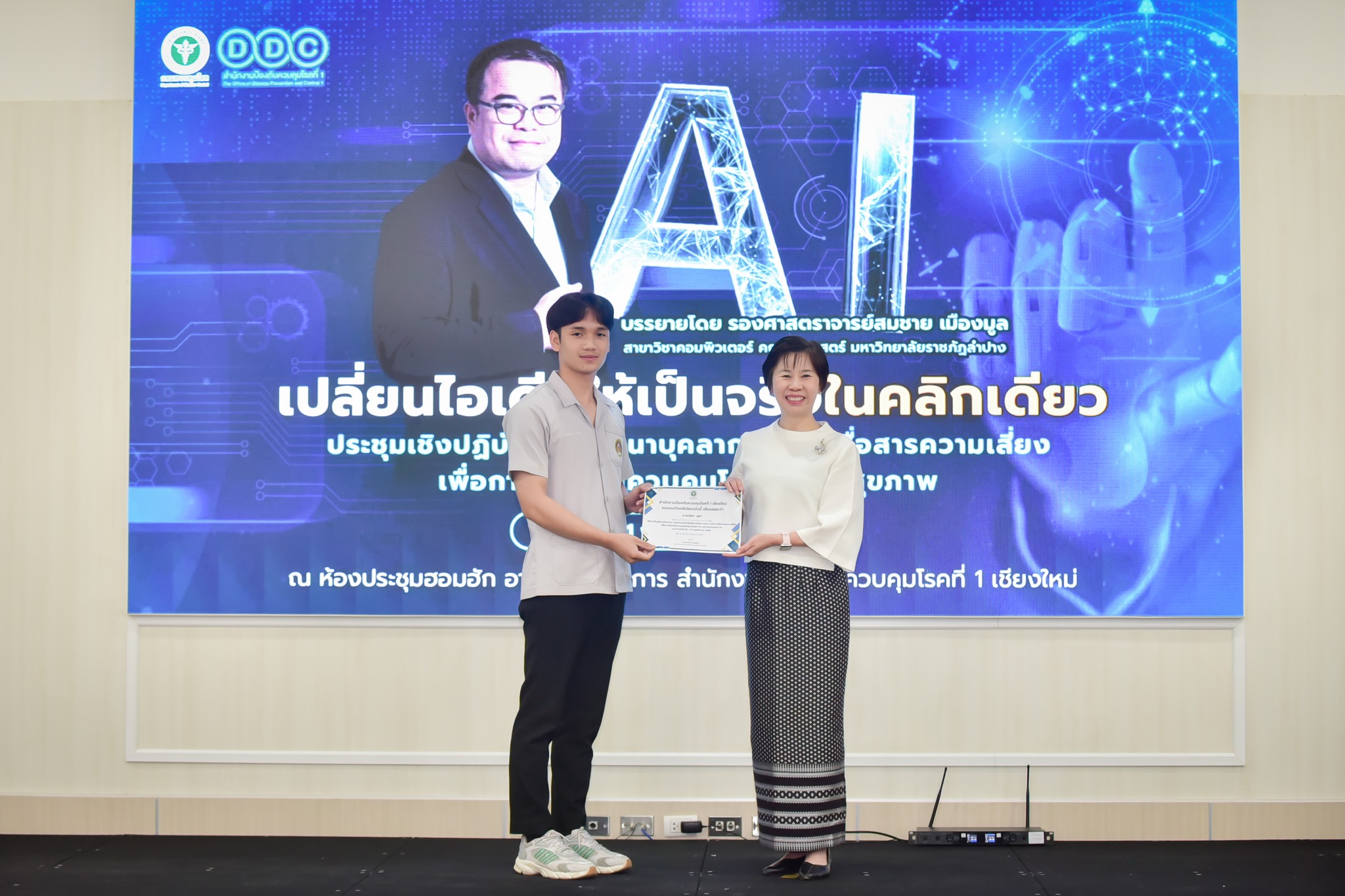 วันที่ 20-21 พฤศจิกายน 2568 รศ.สมชาย เมืองมูล อาจารย์สังกัดสาขาวิชาคอมพิวเตอร์ คณะครุศาสตร์ มหาวิทยาลัยราชภัฏลำปาง พร้อมด้วยนักศึกษาสาขาวิชาคอมพิวเตอร์ ร่วมทำหน้าที่เป็นวิทยากรบรรยายและให้การอบรมเชิงปฏิบัติการ ในโครงการพัฒนาศักยภาพบุคลากรในการใช้เทคโนโลยีปัญญาประดิษฐ์ (AI) เพื่อสื่อสารความเสี่ยงป้องกันโรคและภัยสุขภาพ หัวข้อ “เปลี่ยนไอเดียให้เป็นจริงในคลิกเดียว” แก่เจ้าหน้าที่จากสำนักงานป้องกันควบคุมโรคที่ 1 จังหวัดเชียงใหม่