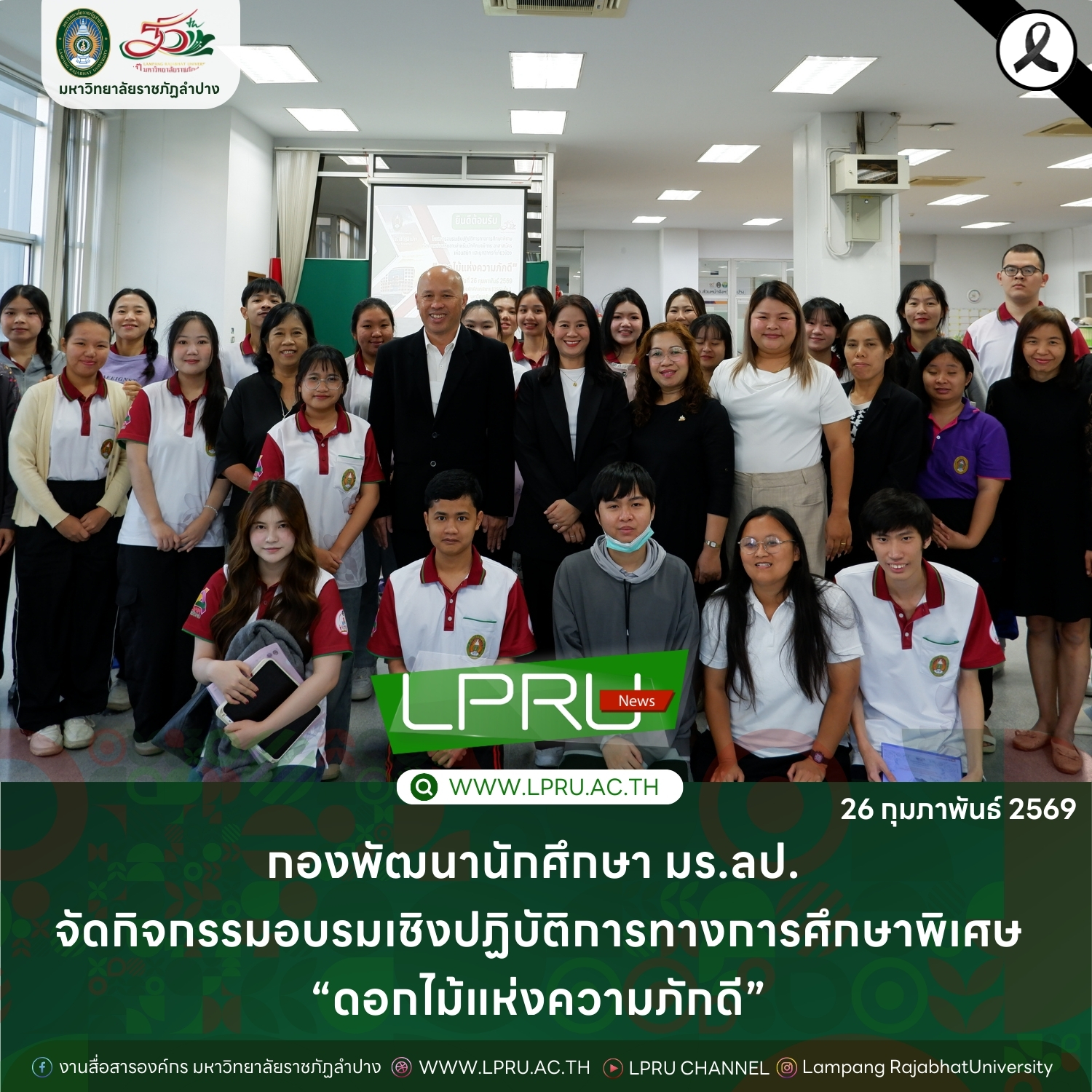 งานประชาสัมพันธ์ มหาวิทยาลัยราชภัฏลำปาง กองพัฒนานักศึกษา มร.ลป. จัดกิจกรรมอบรมเชิงปฏิบัติการทางการศึกษาพิเศษ “ดอกไม้แห่งความภักดี” CHANATIP.M 2 ชั่วโมง ago จำนวนคนเปิดอ่านแล้ว : 3 Tags: กองพัฒนานักศึกษา มร.ลป. จัดโครงการสร้างบ้านแปงเมือง ในรูปแบบออนไลน์ Post navigation Previous: คณะมนุษยศาสตร์และสังคมศาสตร์ มร.ลป. จัดโครงการปัจฉิมนิเทศและพบผู้ประกอบการ เตรียมความพร้อมนักศึกษาก่อนก้าวสู่โลกการทำงานNext: สาขาวิชาคณิตศาสตร์ คณะวิทย์ มร.ลป. เข้าร่วมการประชุมวิชาการระดับชาติด้านคณิตศาสตรศึกษา ครั้งที่ 12 (TSMEd12) ข่าวประจำวัน งานประชาสัมพันธ์ มหาวิทยาลัยราชภัฏลำปาง มร.ลป. จัดโครงการสร้างความเข้าใจเอกภาพหลักสูตรวิชาโท เสริมคุณภาพการจัดการเรียนการสอน CHANATIP.M 9 นาที ago งานประชาสัมพันธ์ มหาวิทยาลัยราชภัฏลำปาง สาขาวิชาคณิตศาสตร์ คณะวิทย์ มร.ลป. เข้าร่วมการประชุมวิชาการระดับชาติด้านคณิตศาสตรศึกษา ครั้งที่ 12 (TSMEd12) CHANATIP.M 48 นาที ago งานประชาสัมพันธ์ มหาวิทยาลัยราชภัฏลำปาง คณะมนุษยศาสตร์และสังคมศาสตร์ มร.ลป. จัดโครงการปัจฉิมนิเทศและพบผู้ประกอบการ เตรียมความพร้อมนักศึกษาก่อนก้าวสู่โลกการทำงาน CHANATIP.M 5 ชั่วโมง ago