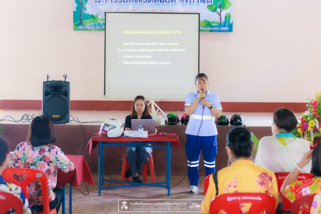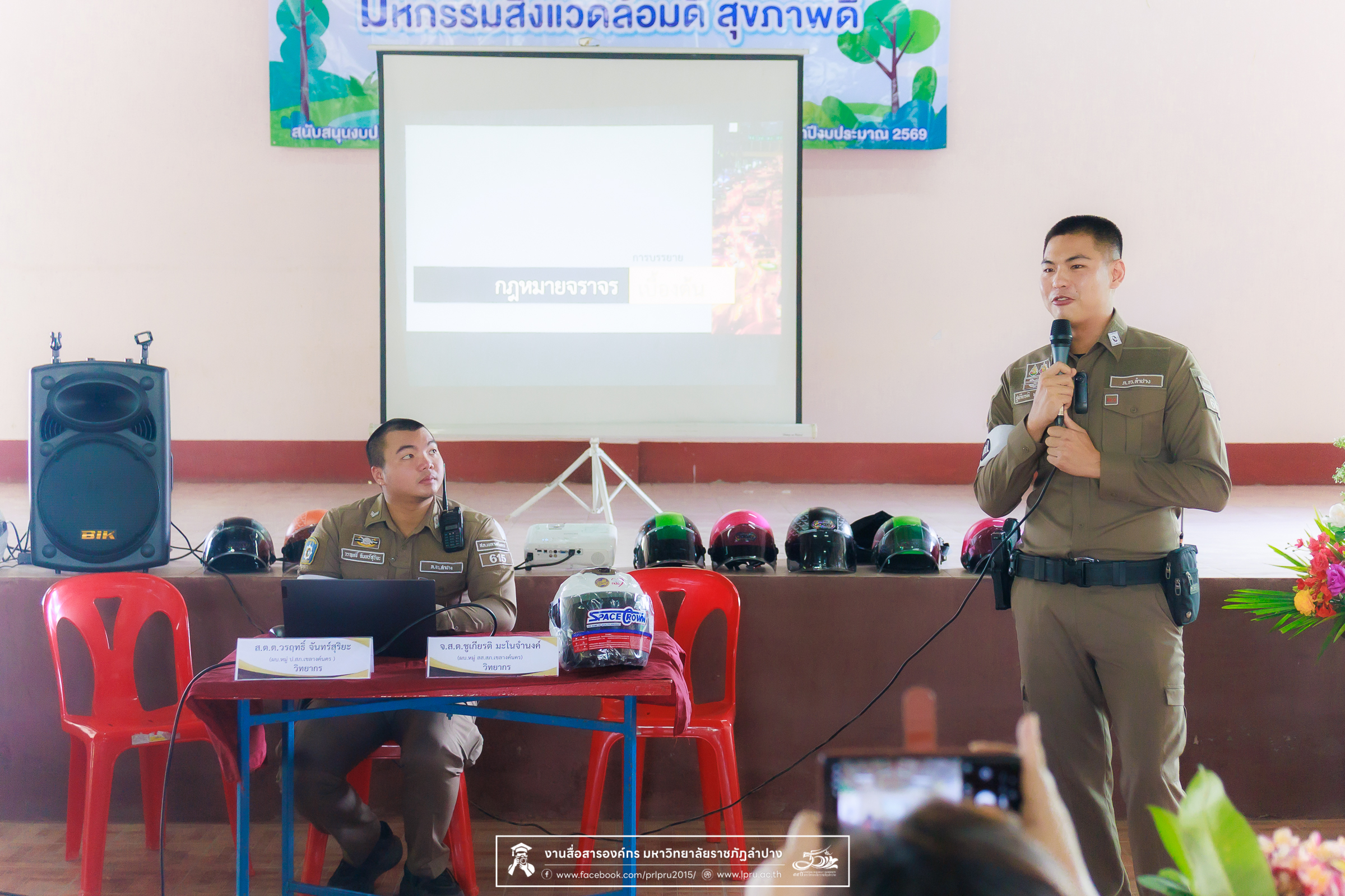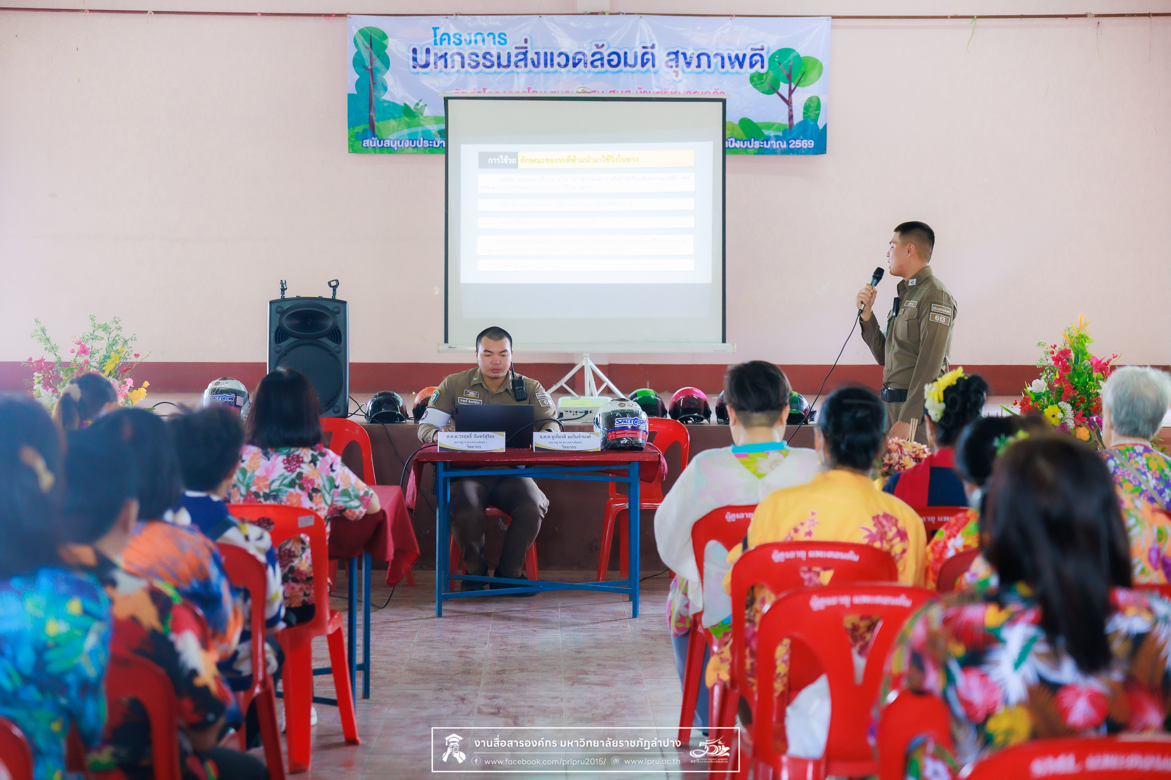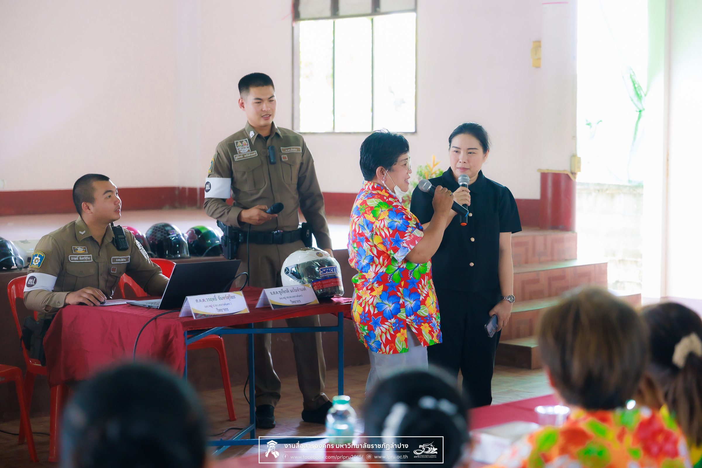 โครงการดังกล่าวจัดขึ้นเพื่อเสริมสร้างความร่วมมือในการขับเคลื่อนองค์กรด้านความปลอดภัยทางถนน ทั้งในกลุ่มนักศึกษา ชุมชน และหน่วยงานโดยรอบมหาวิทยาลัย ผ่านการถ่ายทอดความรู้ด้านวินัยจราจร การขับขี่รถจักรยานยนต์อย่างปลอดภัย และการปลูกจิตสำนึกในการสวมหมวกนิรภัยอย่างถูกต้อง โดยได้รับเกียรติจากวิทยากรผู้เชี่ยวชาญร่วมให้ความรู้ ได้แก่ นายวิษณุ อังกุรนาค เจ้าหน้าที่ชำนาญการ สำนักงานคณะกรรมการกำกับและส่งเสริมการประกอบธุรกิจประกันภัย (คปภ.) จังหวัดลำปาง บรรยายหัวข้อ “ขับขี่อุ่นใจเมื่อทำประกันภัย พ.ร.บ.” จ.ส.ต. ชูเกียรติ มะโนจำนงค์ และ ส.ต.ต. วรฤทธิ์ จันทร์สุริยะ เจ้าหน้าที่ตำรวจกลุ่มงานจราจร สถานีตำรวจภูธรเขลางค์นคร บรรยายหัวข้อ “กฎหมายจราจรที่ควรรู้ วินัยจราจรและการขับขี่ที่ปลอดภัย” และ น.ส.จิรัชยา พันธุ์สุภา พยาบาลวิชาชีพชำนาญการ โรงพยาบาลลำปาง บรรยายหัวข้อ “การปฐมพยาบาลเบื้องต้น การป้องกันอุบัติอุบัติเหตุ สาเหตุของการบาดเจ็บรุนแรง และการสร้างจิตสำนึกในการขับขี่อย่างปลอดภัย เพื่อลดความสูญเสียและเตรียมความพร้อมรับมืออุบัติเหตุฉุกเฉินอย่างถูกต้อง” ทั้งนี้ มีผู้เข้าร่วมโครงการกว่า 250 คน ประกอบด้วย อาสาสมัครสาธารณสุขประจำหมู่บ้าน (อสม.) เจ้าหน้าที่ศูนย์บริการสาธารณสุขเทศบาลเมืองเขลางค์นคร ประธานชุมชน คณะกรรมการชุมชน ประชาชนชุมชนกาดเมฆ ชุมชนหนองหัวหงอก ชุมชนป่าแลว 1 ชุมชนบ้านแพะดอนตัน ชุมชนบ้านศรีหมวดเกล้า ชุมชนบ้านร้อง ชุมชนบ้านย่าเป้า ชุมชนบ้านศรีปงชัย และชุมชนบ้านกลางทุ่ง