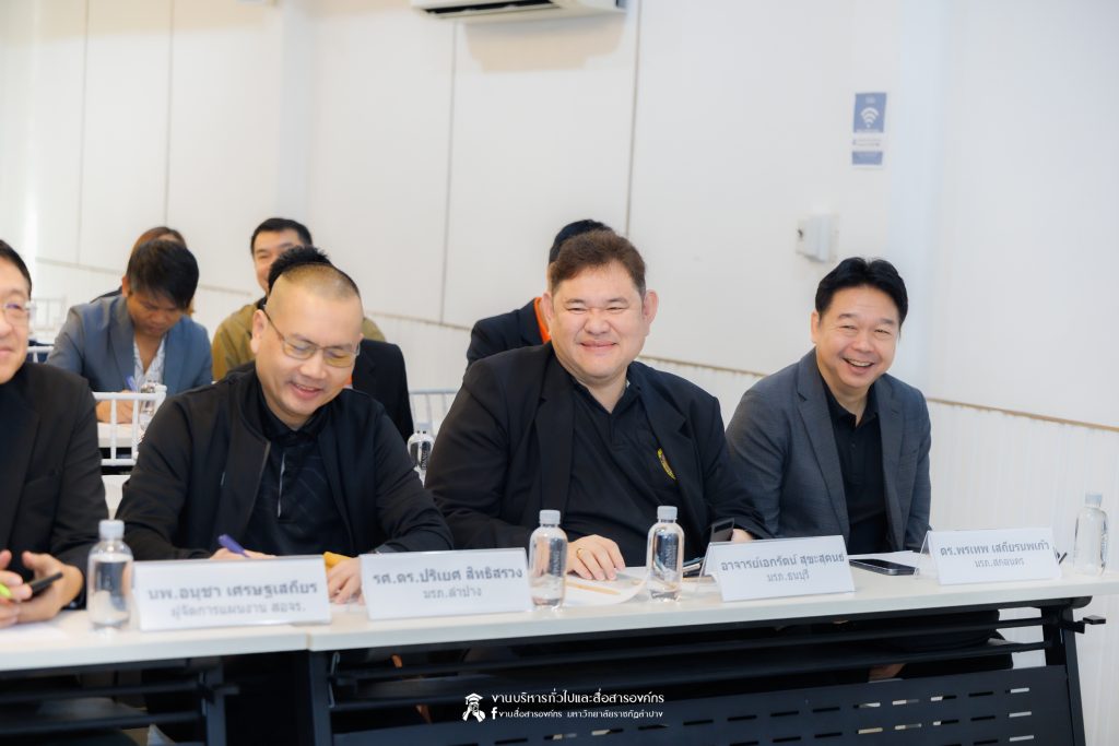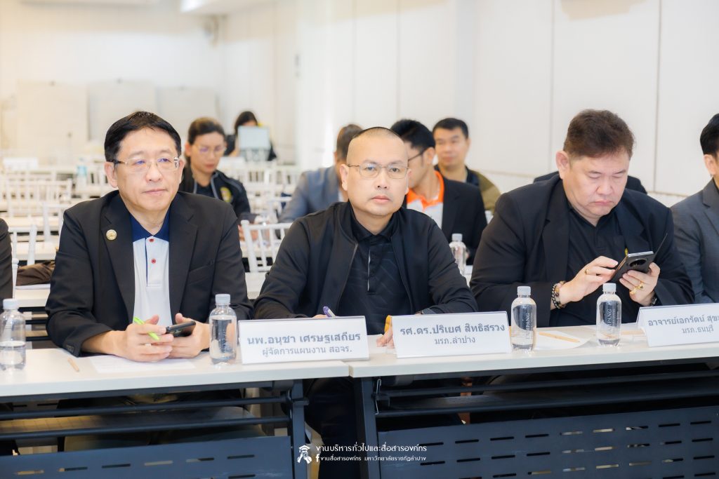 เมื่อวันที่ 27 มกราคม 2569 รศ.ดร.ปริเยศ สิทธิสรวง รองอธิการบดีฝ่ายบริหาร มหาวิทยาลัยราชภัฏลำปาง พร้อมด้วย ผศ.ดร.ฉัตรสุดา มาทา รองผู้อำนวยการสถาบันวิจัยและพัฒนา ผศ.ศักดิ์ชัย ศรีมากรณ์ อาจารย์สังกัดสาขาวิชาวิศวกรรมซอฟต์แวร์ ผศ.ศุภวุฒิ  ผากา อาจารย์สังกัดสาขาวิชาวิศวกรรมไฟฟ้าอุตสาหกรรม คณะเทคโนโลยีอุตสาหกรรม ผศ.อนุกิจ เสาร์แก้ว ผศ.ดร.โอฬาร เชี่ยวชาญ อาจารย์สังกัดสาขาวิชาเทคโนโลยีสารสนเทศ และ ผศ.ชิสาพัชร์ ชูทอง อาจารย์สังกัดสาขาวิชาสาธารณสุขชุมชน คณะวิทยาศาสตร์ เข้าร่วมประชุมเชิงปฏิบัติการเพื่อขับเคลื่อนมาตรการองค์กรด้านความปลอดภัยทางถนนในมหาวิทยาลัยราชภัฏ ภายใต้โครงการ MOVE U Thailand โดยมี นพ.อนุชา เศรษฐเสถียร ผู้ทรงคุณวุฒิกองทุนเพื่อความปลอดภัยในการใช้รถใช้ถนน นางสาวศิริกุล กุลเลียบ ผู้ทรงคุณวุฒิ แผนงาน สอจร. นางสาวสุพัตรา สำราญจิตร์ ผู้จัดการโครงการ MOVE U Thailand อ.ดร.พรเทพ เสถียรนพเก้า รองอธิการบดีฝ่ายกิจการนักศึกษา มหาวิทยาลัยราชภัฏสกลนคร ผศ.ดร.บุญสิทธิ์ ไชยชนะ รองอธิการบดีฝ่ายพัฒนานักศึกษาและมวลชนสัมพันธ์  มหาวิทยาลัยราชภัฏยะลา อ.เอกรัตน์ สุขะสุคนธ์ รองอธิการบดีฝ่ายกิจการนักศึกษา มหาวิทยาลัยราชภัฏธนบุรี อ.ดร.เมธาวิน สาระยาน รองอธิการบดีฝ่ายกิจการนักศึกษา มหาวิทยาลัยราชภัฏเพชรบุรี และเจ้าหน้าที่จากมหาวิทยาลัยราชภัฏเครือข่ายภาคเหนือ ทั้ง 8 แห่งเข้าร่วม ณ ห้องประชุม Whiteballroom โรงแรมทีวีธารา อำเมือง จังหวัดลำปาง