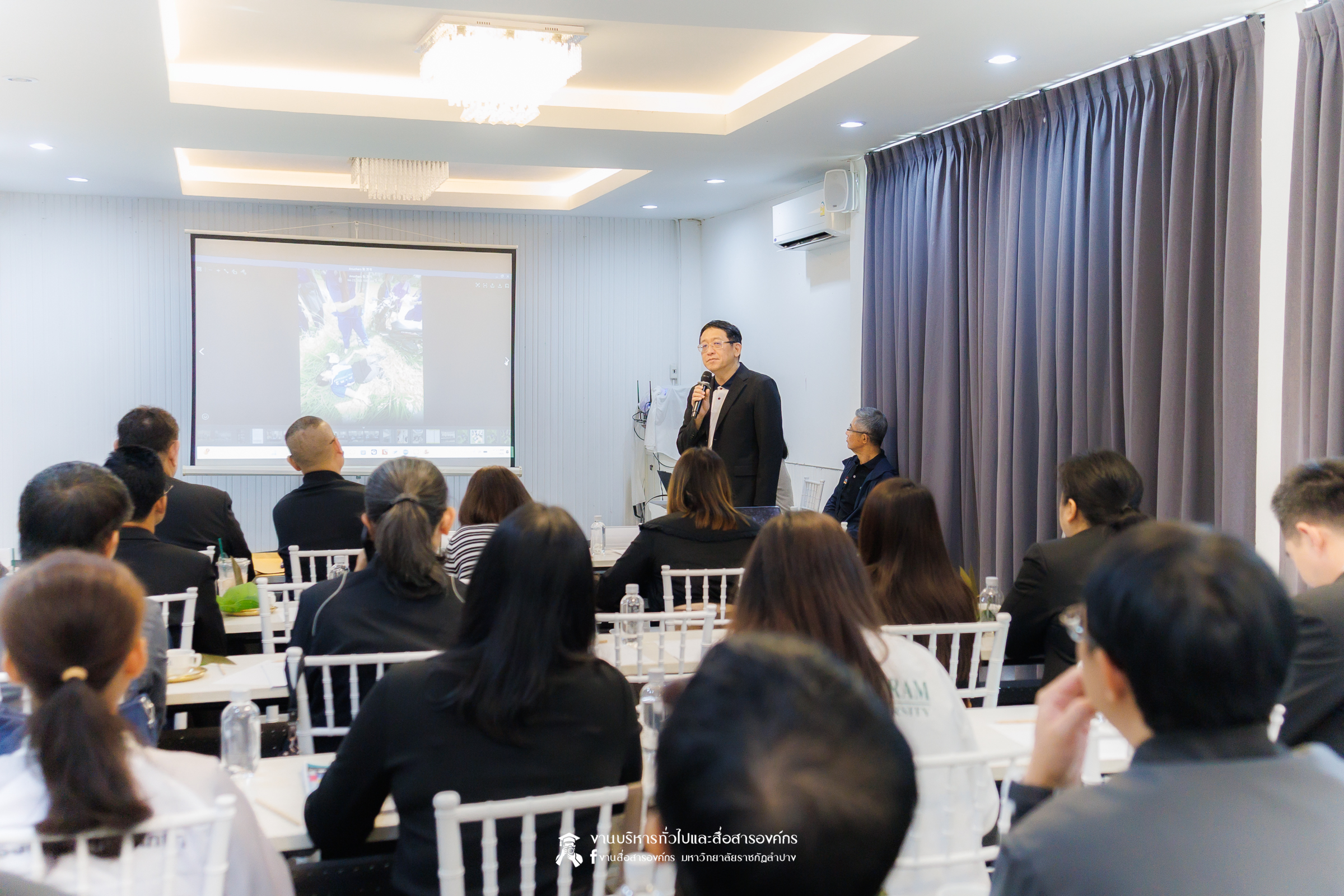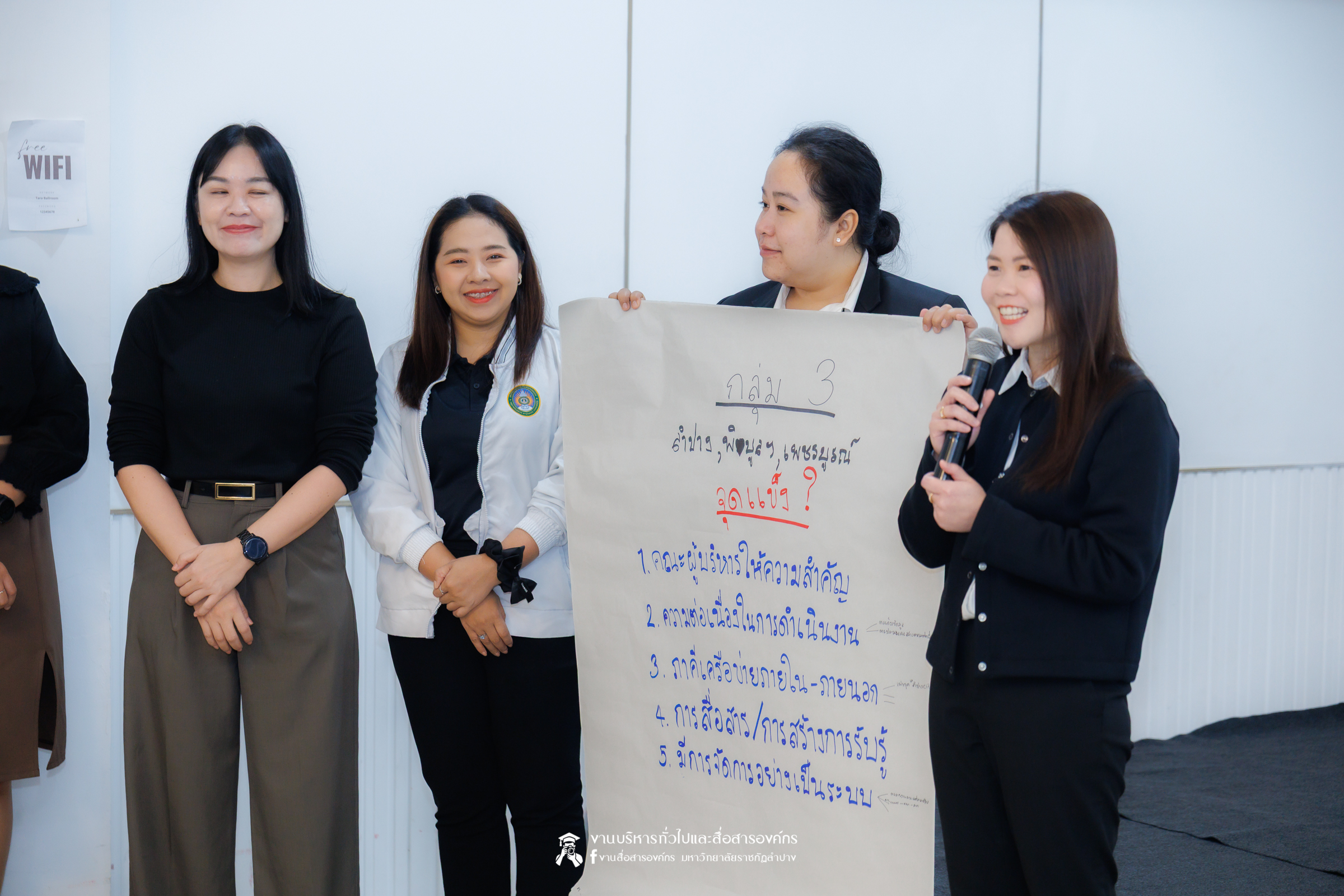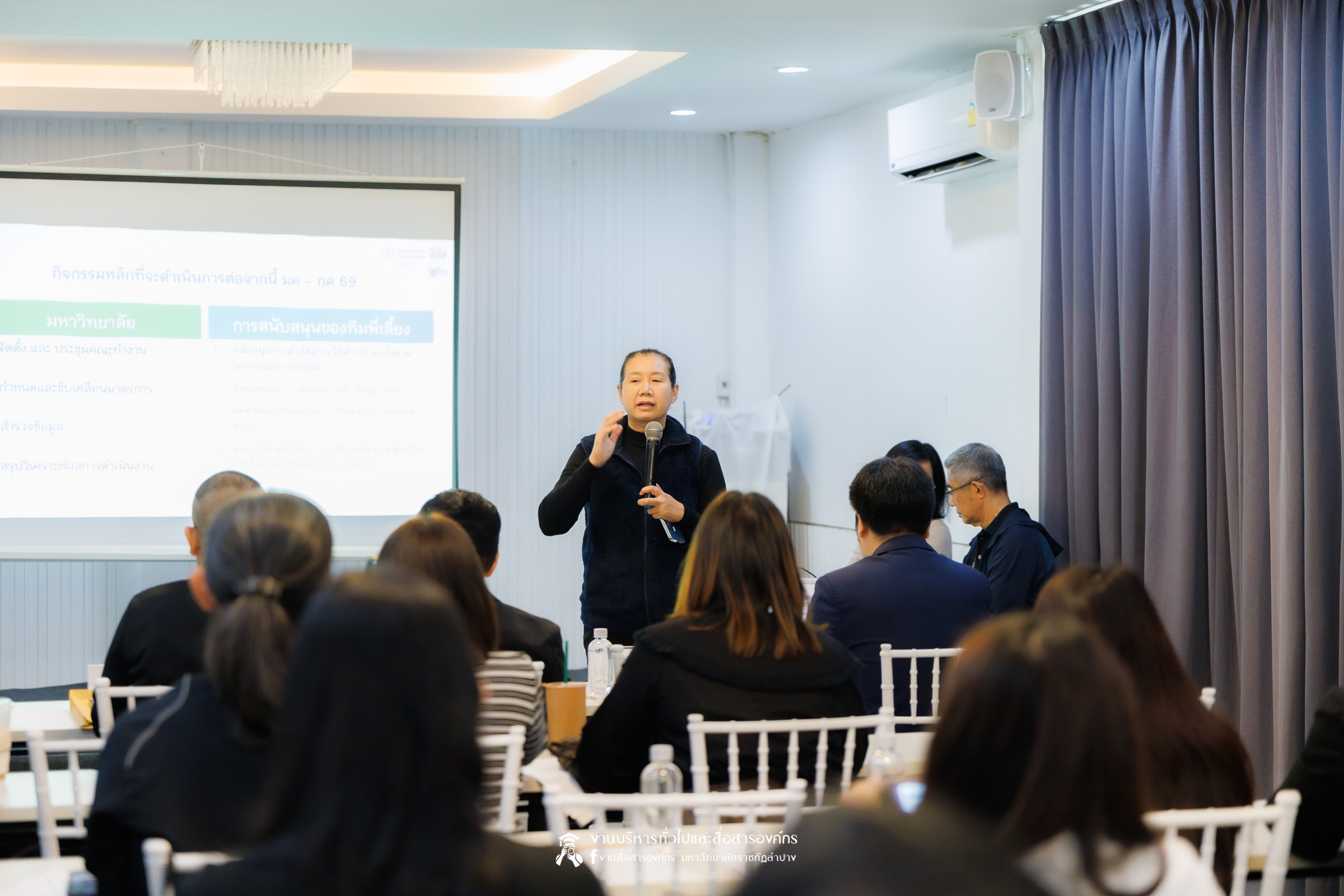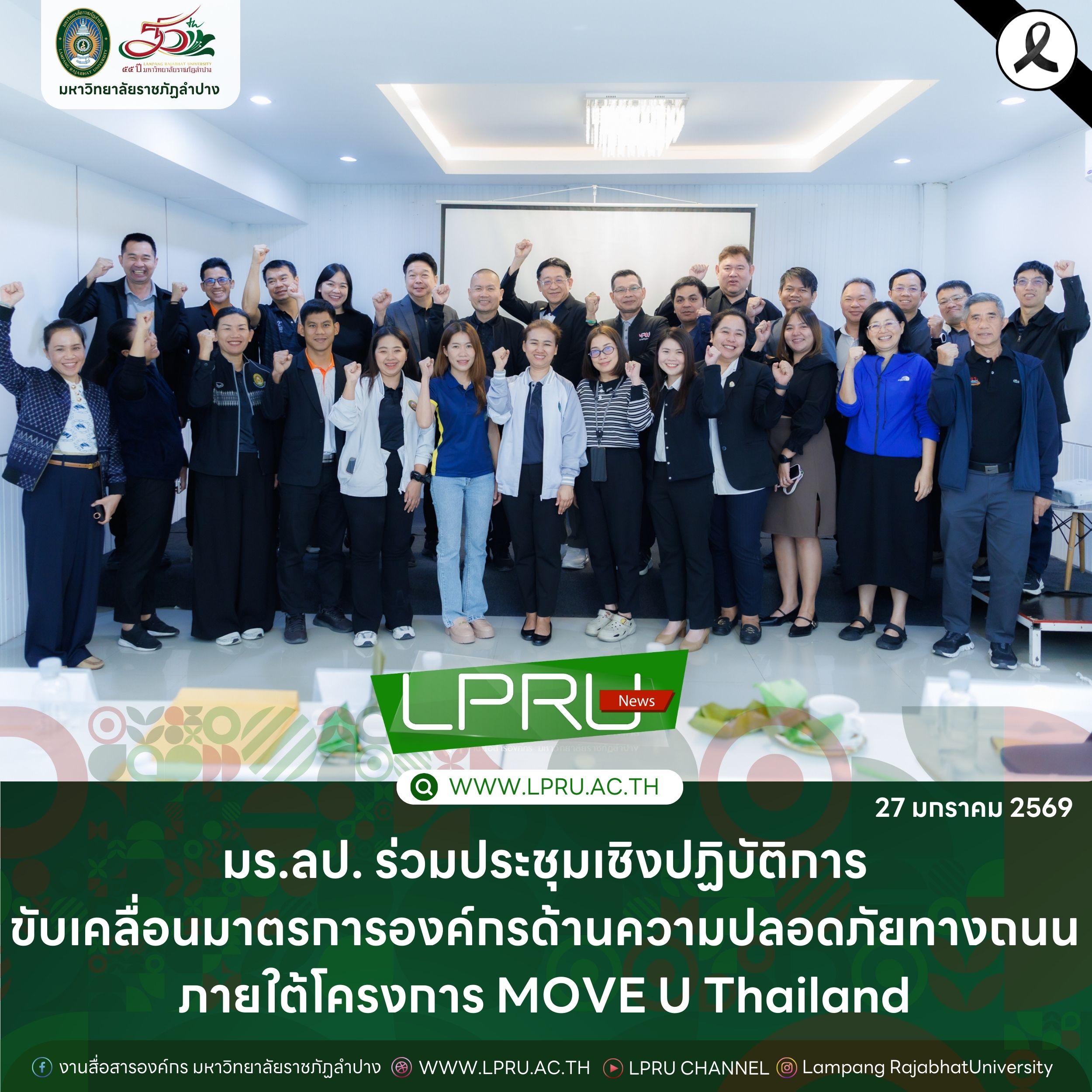 เมื่อวันที่ 27 มกราคม 2569 รศ.ดร.ปริเยศ สิทธิสรวง รองอธิการบดีฝ่ายบริหาร มหาวิทยาลัยราชภัฏลำปาง พร้อมด้วย ผศ.ดร.ฉัตรสุดา มาทา รองผู้อำนวยการสถาบันวิจัยและพัฒนา ผศ.ศักดิ์ชัย ศรีมากรณ์ อาจารย์สังกัดสาขาวิชาวิศวกรรมซอฟต์แวร์ ผศ.ศุภวุฒิ  ผากา อาจารย์สังกัดสาขาวิชาวิศวกรรมไฟฟ้าอุตสาหกรรม คณะเทคโนโลยีอุตสาหกรรม ผศ.อนุกิจ เสาร์แก้ว ผศ.ดร.โอฬาร เชี่ยวชาญ อาจารย์สังกัดสาขาวิชาเทคโนโลยีสารสนเทศ และ ผศ.ชิสาพัชร์ ชูทอง อาจารย์สังกัดสาขาวิชาสาธารณสุขชุมชน คณะวิทยาศาสตร์ เข้าร่วมประชุมเชิงปฏิบัติการเพื่อขับเคลื่อนมาตรการองค์กรด้านความปลอดภัยทางถนนในมหาวิทยาลัยราชภัฏ ภายใต้โครงการ MOVE U Thailand โดยมี นพ.อนุชา เศรษฐเสถียร ผู้ทรงคุณวุฒิกองทุนเพื่อความปลอดภัยในการใช้รถใช้ถนน นางสาวศิริกุล กุลเลียบ ผู้ทรงคุณวุฒิ แผนงาน สอจร. นางสาวสุพัตรา สำราญจิตร์ ผู้จัดการโครงการ MOVE U Thailand อ.ดร.พรเทพ เสถียรนพเก้า รองอธิการบดีฝ่ายกิจการนักศึกษา มหาวิทยาลัยราชภัฏสกลนคร ผศ.ดร.บุญสิทธิ์ ไชยชนะ รองอธิการบดีฝ่ายพัฒนานักศึกษาและมวลชนสัมพันธ์  มหาวิทยาลัยราชภัฏยะลา อ.เอกรัตน์ สุขะสุคนธ์ รองอธิการบดีฝ่ายกิจการนักศึกษา มหาวิทยาลัยราชภัฏธนบุรี อ.ดร.เมธาวิน สาระยาน รองอธิการบดีฝ่ายกิจการนักศึกษา มหาวิทยาลัยราชภัฏเพชรบุรี และเจ้าหน้าที่จากมหาวิทยาลัยราชภัฏเครือข่ายภาคเหนือ ทั้ง 8 แห่งเข้าร่วม ณ ห้องประชุม Whiteballroom โรงแรมทีวีธารา อำเมือง จังหวัดลำปาง