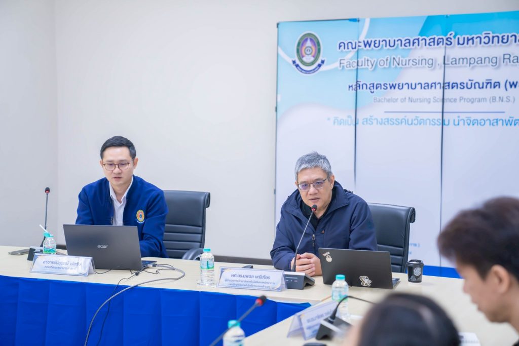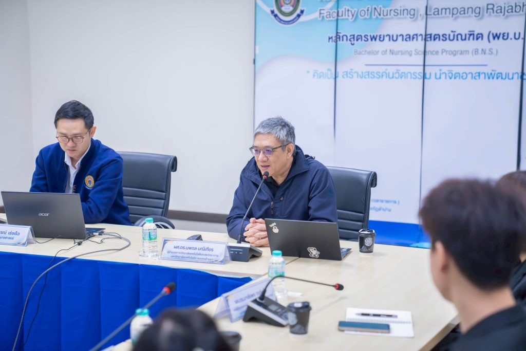 เมื่อวันที่ 26 มีนาคม 2569 อ.ปิยธรณ์ เร่งเร็ว คณะบดีคณะพยาบาลศาสตร์ มหาวิทยาลัยราชภัฏลำปาง พร้อมด้วย คณะผู้บริหาร คณาจารย์ ให้การต้อนรับ ผศ.ดร.นพดล มณีเฑียร ผู้อำนวยการวิทยาลัยเทคโนโลยีและสหวิทยาการ มหาวิทยาลัยเทคโนโลยีราชมงคลล้านนา รศ.ดร.มาลัยพร วงค์แก้ว รองผู้อำนวยการ ฯ ด้านวิชาการ วิจัย และบริการวิชาการ ผศ.เอกรินทร์ อินประมูล หัวหน้าหลักสูตรวิศวกรรมและนวัตกรรมอาหาร อ.พิกุลทอง ไชยมงคล อาจารย์ประจำกลุ่มวิชาศึกษาทั่วไป น.ส.ธมนวรรณ จิตบาล หัวหน้าสำนักงานวิทยาลัย ฯ นางสุพัตรา ปวนไฝ พยาบาลวิชาชีพชำนาญการพิเศษ หัวหน้าฝ่ายการพยาบาล นายจตุพงษ์ พันธ์วิไล พยาบาลวิชาชีพชำนาญการพิเศษ และ น.ส.กิ่งดาว ขุ่ยอาภัย พยาบาลวิชาชีพชำนาญการ โรงพยาบาลประสาทเชียงใหม่ กรมการแพทย์ ในการประชุมวางแผนความร่วมมือพัฒนาหลักสูตรประกาศนียบัตรผู้ช่วยพยาบาล ร่วมกับวิทยาลัยเทคโนโลยีและสหวิทยาการ มหาวิทยาลัยเทคโนโลยีราชมงคลล้านนา และโรงพยาบาลประสาทเชียงใหม่ ภายหลังจากทั้ง 3 หน่วยงานได้ลงนามบันทึกความร่วมมือทางวิชาการ เพื่อส่งเสริมการจัดการศึกษา การวิจัย และการบริการวิชาการด้านสุขภาพ ณ ห้องประชุมชั้น 8 คณะพยาบาลศาสตร์ มหาวิทยาลัยราชภัฏลำปาง