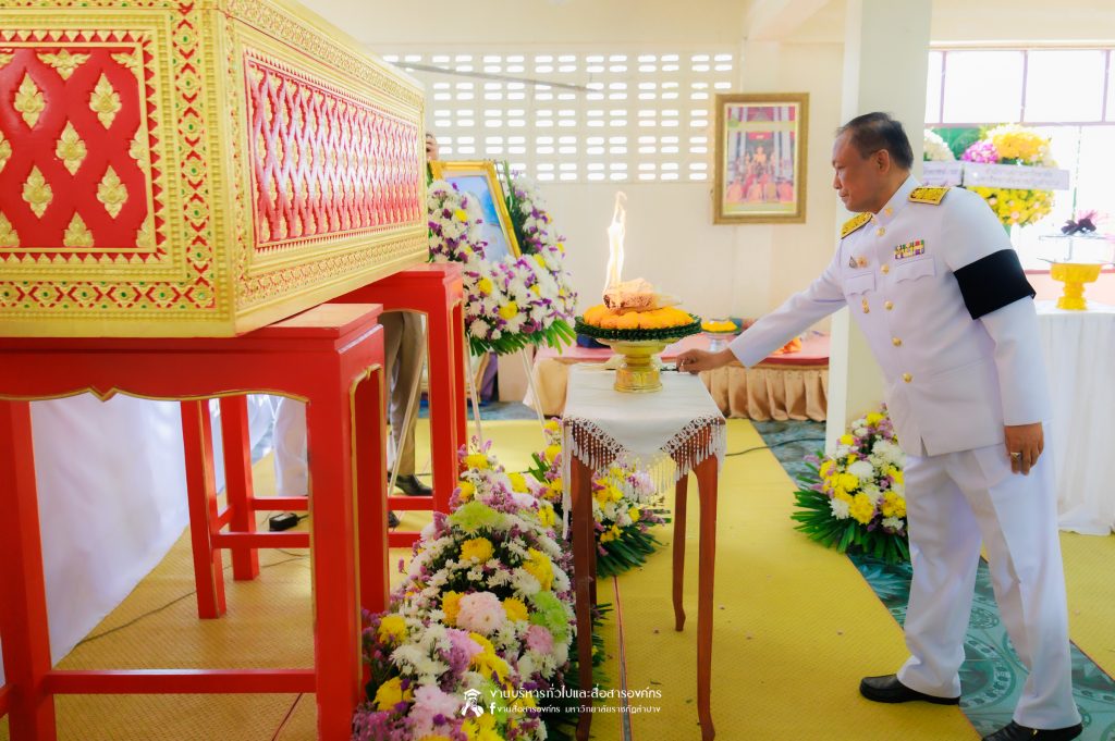 เมื่อวันที่ 28 กุมภาพันธ์ 2569 รศ.ดร.กิตติศักดิ์ สมุทธารักษ์ อธิการบดีมหาวิทยาลัยราชภัฏลำปาง เป็นประธานในพิธีพระราชทานเพลิงศพ ด.ต.เอกชัย อินต๊ะวงศา บิดาของ ผศ.เอกรัฐ อินต๊ะวงศา ผู้ช่วยอธิการบดีด้านงานบริหารทั่วไป ณ วัดภูมินทร์ บ้านแม่ต๋ำ อำเภอเมือง จังหวัดพะเยา โดยมีคณะผู้บริหาร คณาจารย์ และบุคลากรของมหาวิทยาลัยราชภัฏลำปาง