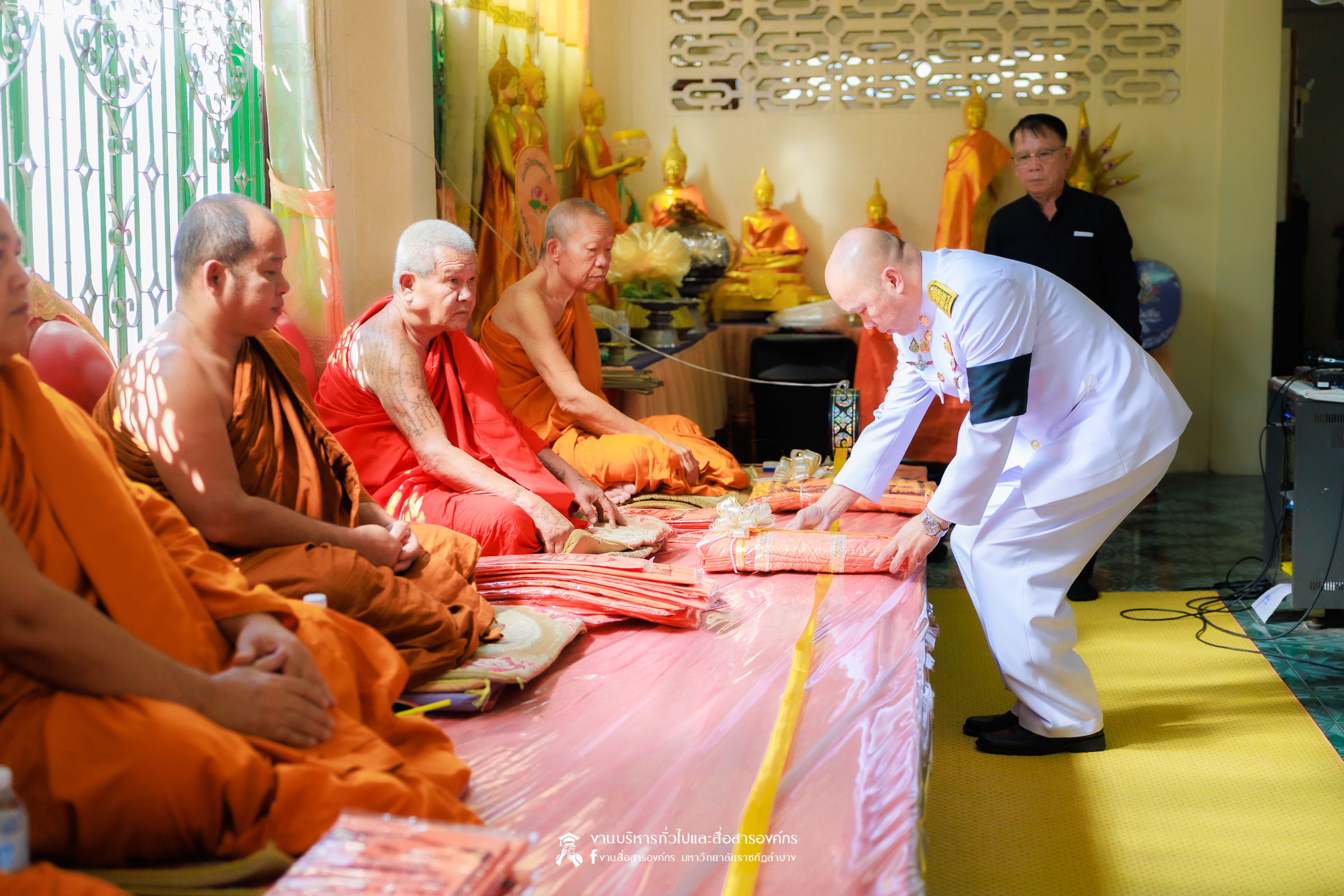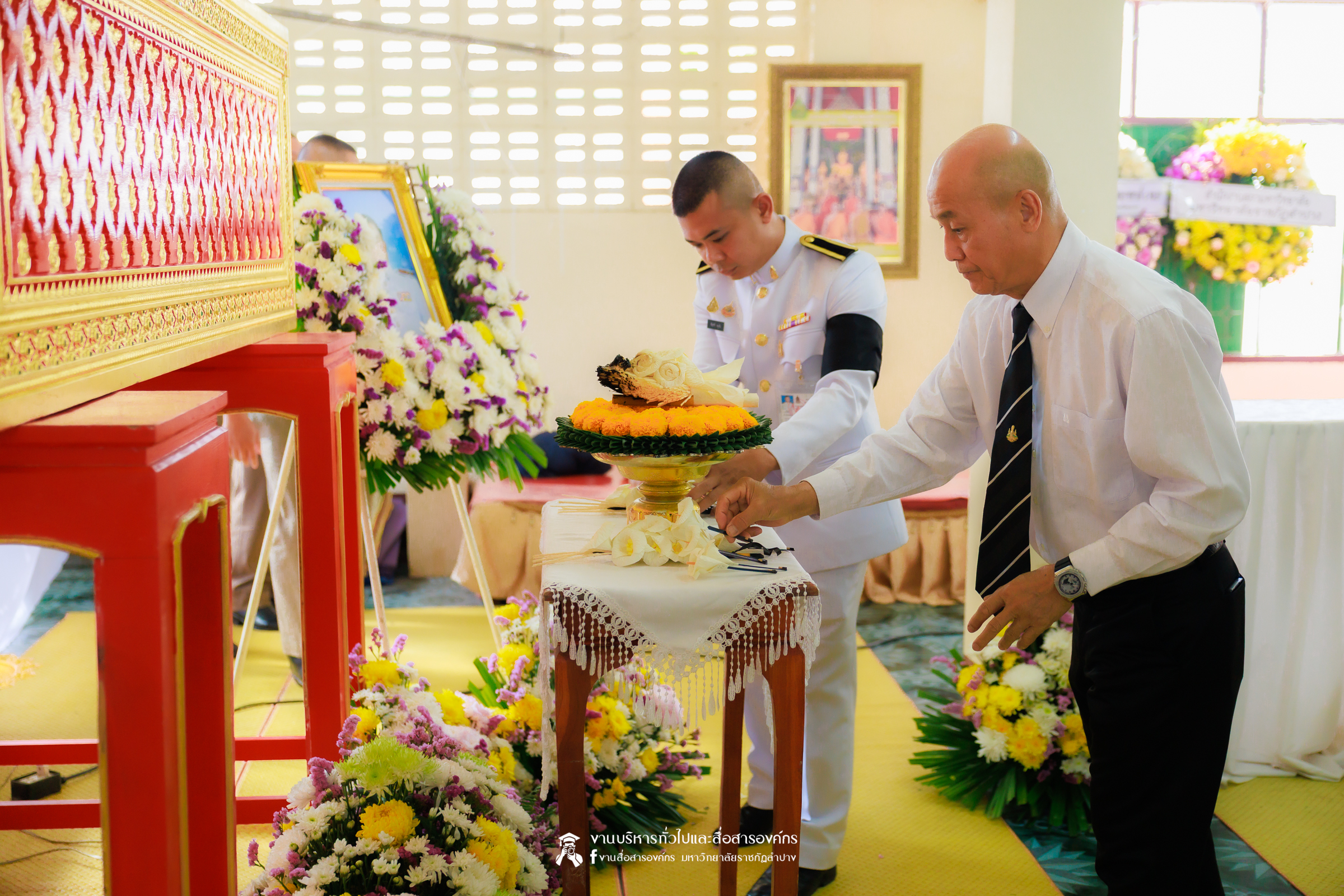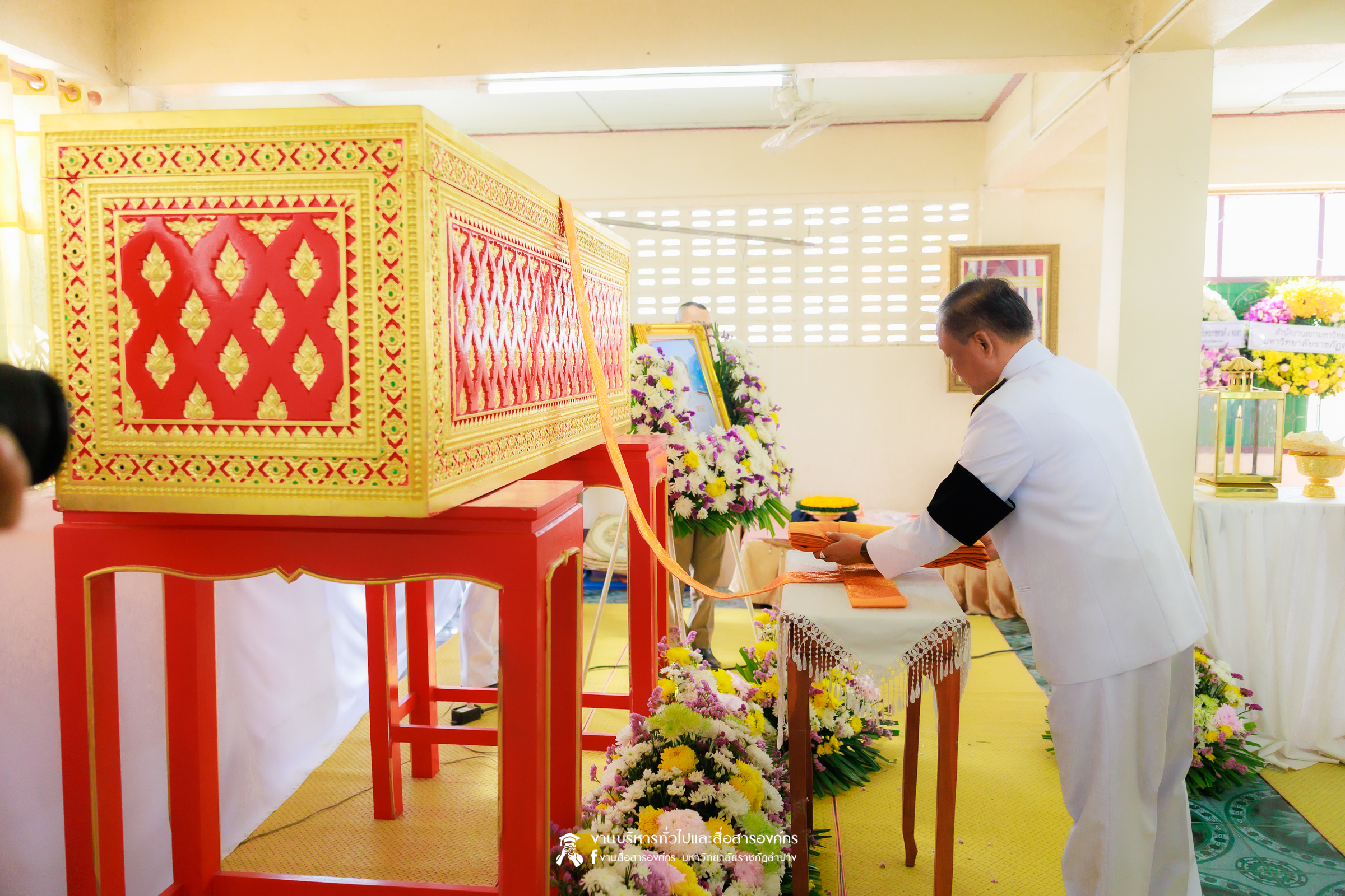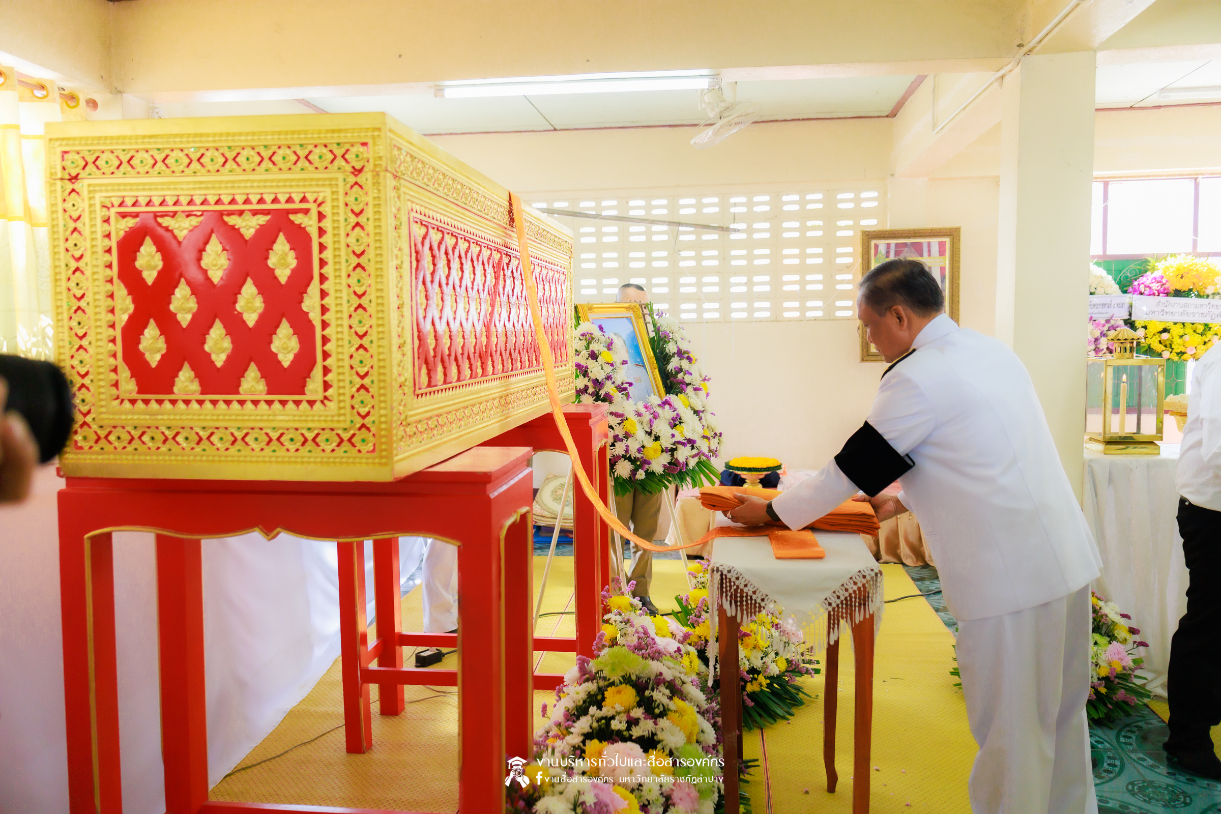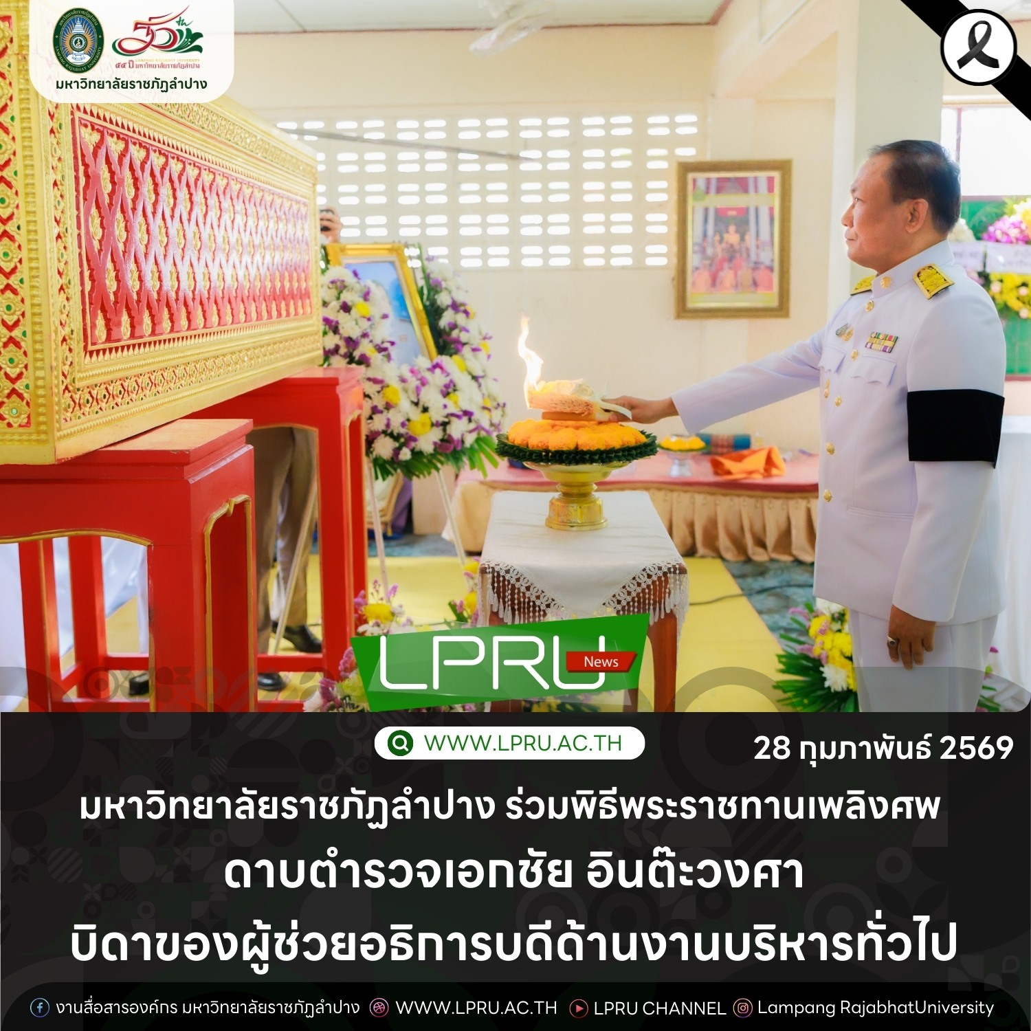 เมื่อวันที่ 28 กุมภาพันธ์ 2569 รศ.ดร.กิตติศักดิ์ สมุทธารักษ์ อธิการบดีมหาวิทยาลัยราชภัฏลำปาง เป็นประธานในพิธีพระราชทานเพลิงศพ ด.ต.เอกชัย อินต๊ะวงศา บิดาของ ผศ.เอกรัฐ อินต๊ะวงศา ผู้ช่วยอธิการบดีด้านงานบริหารทั่วไป ณ วัดภูมินทร์ บ้านแม่ต๋ำ อำเภอเมือง จังหวัดพะเยา โดยมีคณะผู้บริหาร คณาจารย์ และบุคลากรของมหาวิทยาลัยราชภัฏลำปาง