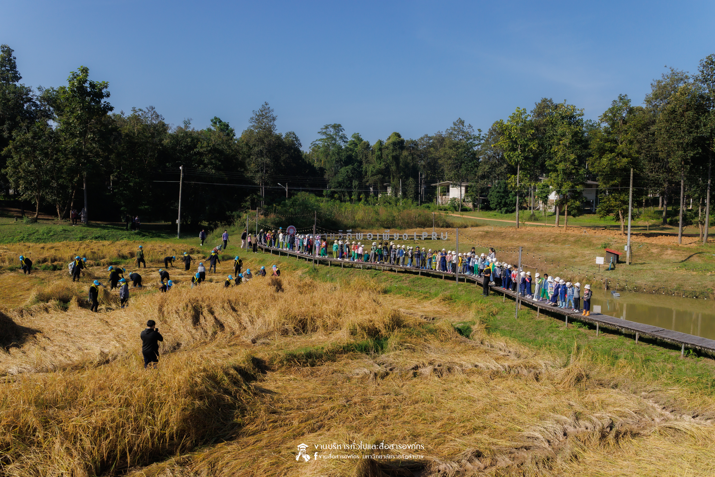 กิจกรรมเก็บเกี่ยวข้าวอินทรีย์ในครั้งนี้ เป็นส่วนหนึ่งของโครงการเรียนรู้การทำเกษตรอินทรีย์แบบครบวงจร ซึ่งดำเนินต่อเนื่องจากกิจกรรมดำนาแบบนาโยน (ปลูกข้าวหอมมะลิ 105) เมื่อวันที่ 31 กรกฎาคม 2568 ที่ผ่านมา โดยมีผู้เข้าร่วมกิจกรรมกว่า 100 คน โดยโครงการดังกล่าวถูกจัดขึ้นเป็นประจำทุกปี เพื่อส่งเสริมการเรียนรู้ด้านเกษตรอินทรีย์ ถ่ายทอดองค์ความรู้และทักษะด้านการเพาะปลูกแก่ นักเรียน นักศึกษา และผู้สนใจ อีกทั้งยังเป็นการปลูกฝังจิตสำนึกในการอนุรักษ์สิ่งแวดล้อมและเสริมสร้างความสามัคคีระหว่างบุคลากร นักศึกษา และเครือข่ายจิตอาสาในมหาวิทยาลัย