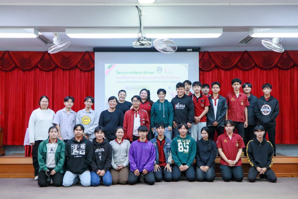 เมื่อวันที่ 28 มกราคม 2569 คณะเทคโนโลยีอุตสาหกรรม มหาวิทยาลัยราชภัฏลำปาง จัดโครงการพัฒนาทักษะการสื่อสารภาษาอังกฤษสำหรับนักศึกษาคณะเทคโนโลยีอุตสาหกรรม ณ ห้องประชุม 1315 อาคาร 13 คณะเทคโนโลยีอุตสาหกรรม โดยมีนักศึกษาชั้นปีที่ 2 คณะเทคโนโลยีอุตสาหกรรม เข้าร่วมกิจกรรมกว่า 40 คน