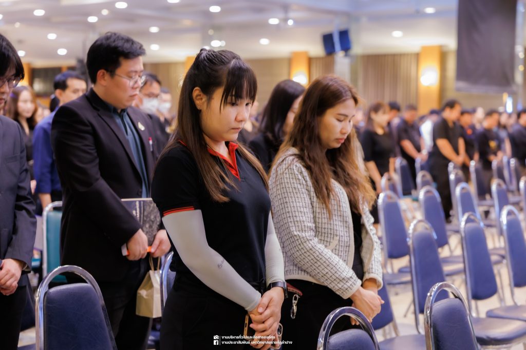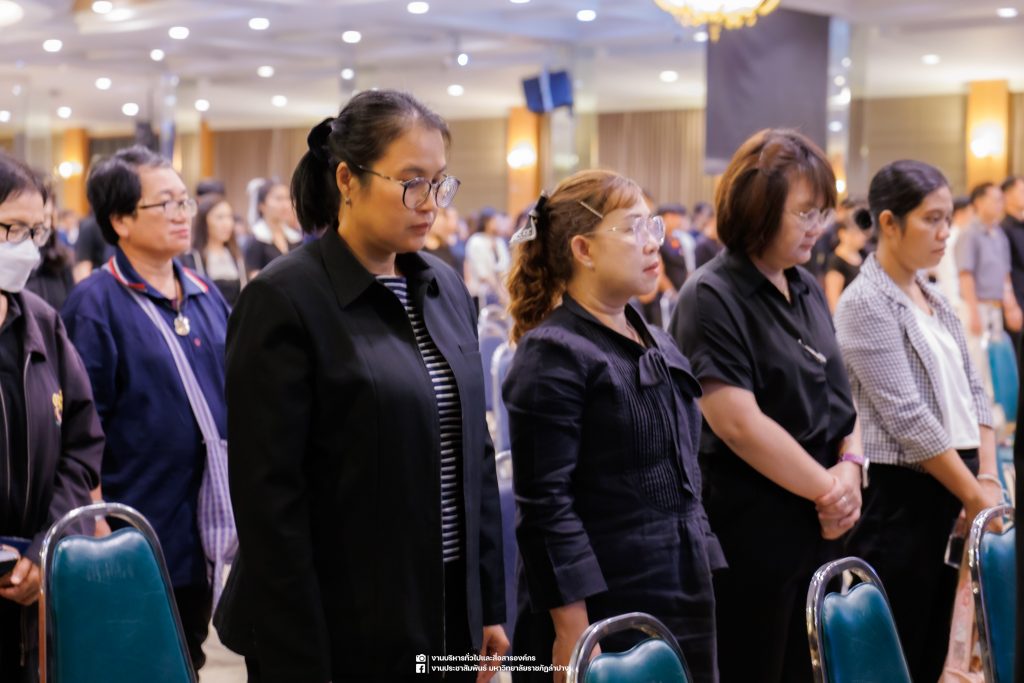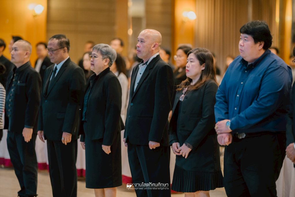 โดยก่อนการเริ่มประชุม รศ.ดร.กิตติศักดิ์ สมุทธารักษ์ อธิการบดีมหาวิทยาลัยราชภัฏลำปาง ได้นำคณะผู้บริหาร คณาจารย์ และบุคลกร ยืนสงบนิ่งน้อมรำลึกในพระมหากรุณาธิคุณ และถวายความอาลัย แด่สมเด็จพระนางเจ้าสิริกิติ์ พระบรมราชินีนาถ พระบรมราชชนนีพันปีหลวง เป็นเวลา 93 วินาที