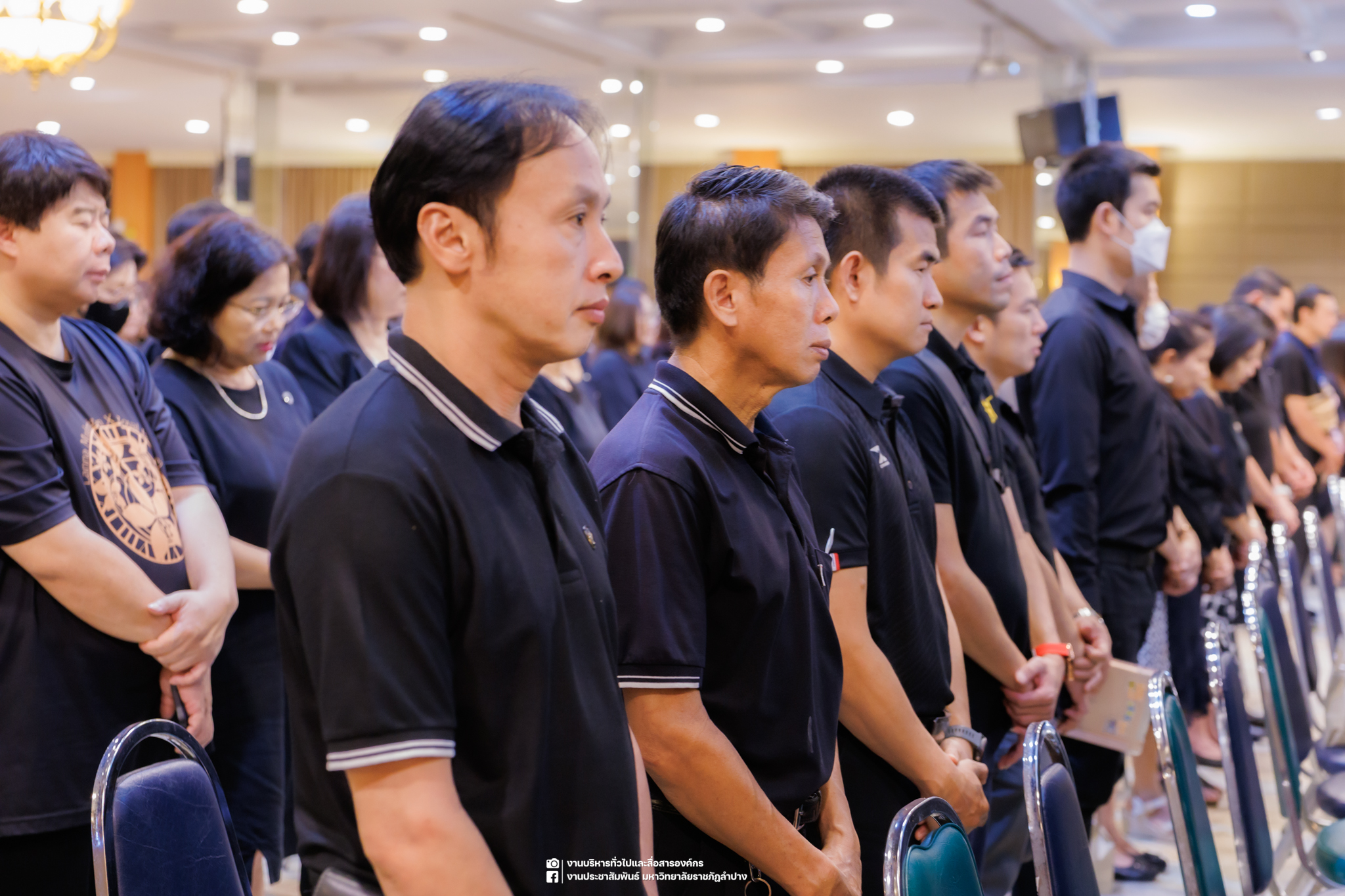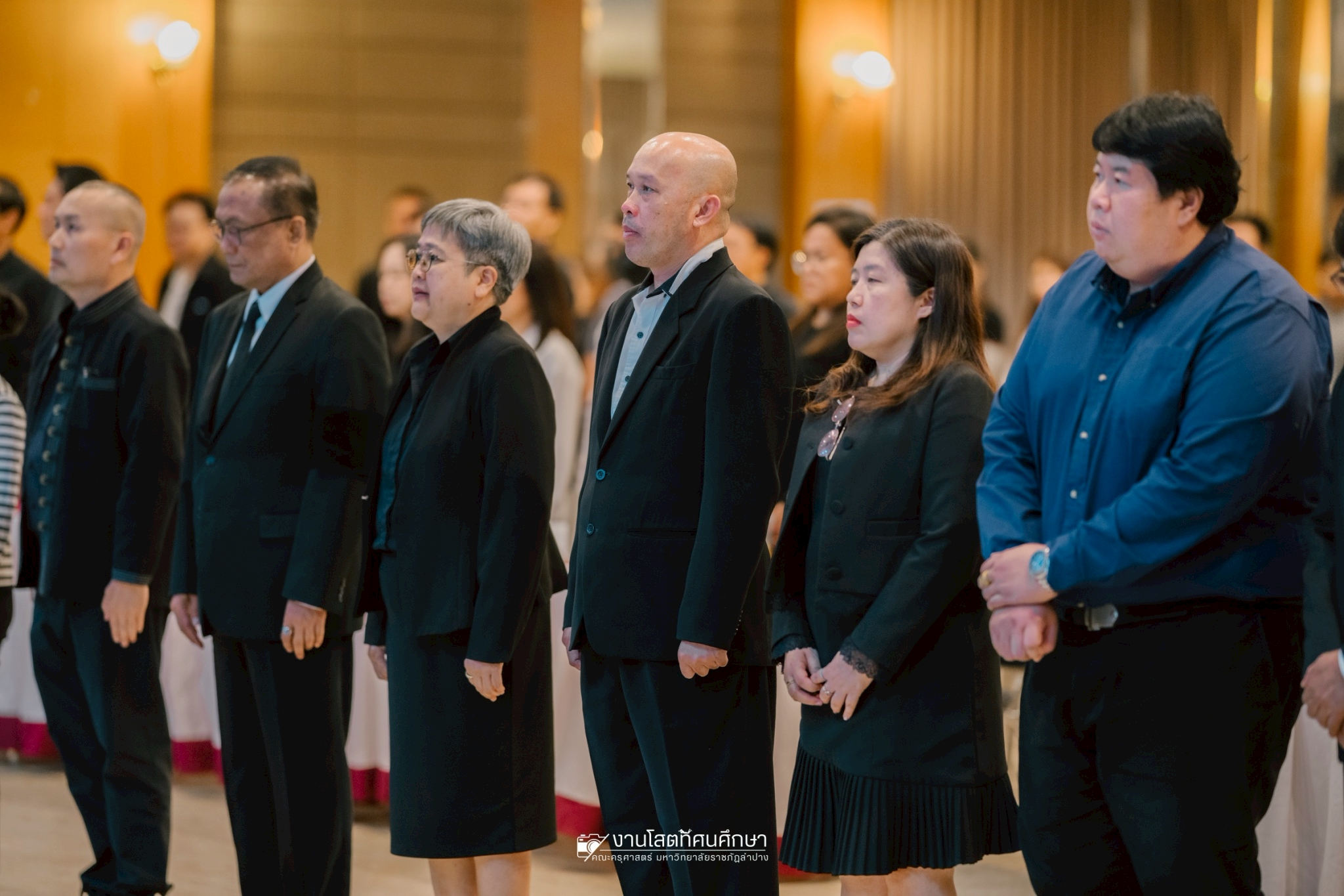 โดยก่อนการเริ่มประชุม รศ.ดร.กิตติศักดิ์ สมุทธารักษ์ อธิการบดีมหาวิทยาลัยราชภัฏลำปาง ได้นำคณะผู้บริหาร คณาจารย์ และบุคลกร ยืนสงบนิ่งน้อมรำลึกในพระมหากรุณาธิคุณ และถวายความอาลัย แด่สมเด็จพระนางเจ้าสิริกิติ์ พระบรมราชินีนาถ พระบรมราชชนนีพันปีหลวง เป็นเวลา 93 วินาที