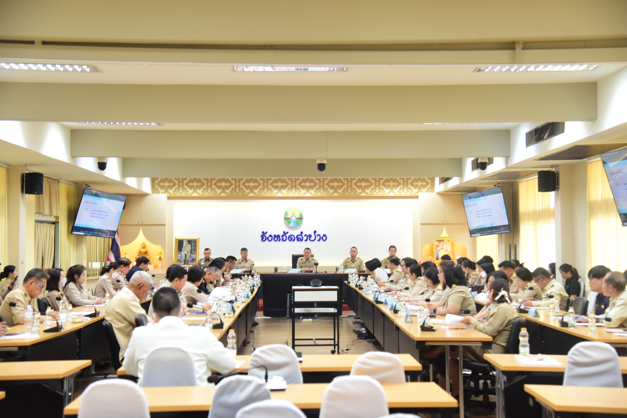 ในการประชุมครั้งนี้ มีรองผู้ว่าราชการจังหวัดลำปาง พร้อมด้วยหัวหน้าส่วนราชการ หน่วยงานภาครัฐ ตำรวจ และทหาร เข้าร่วมประชุมอย่างพร้อมเพรียง ณ ห้องประชุมอาลัมภางค์ ศาลากลางจังหวัดลำปาง