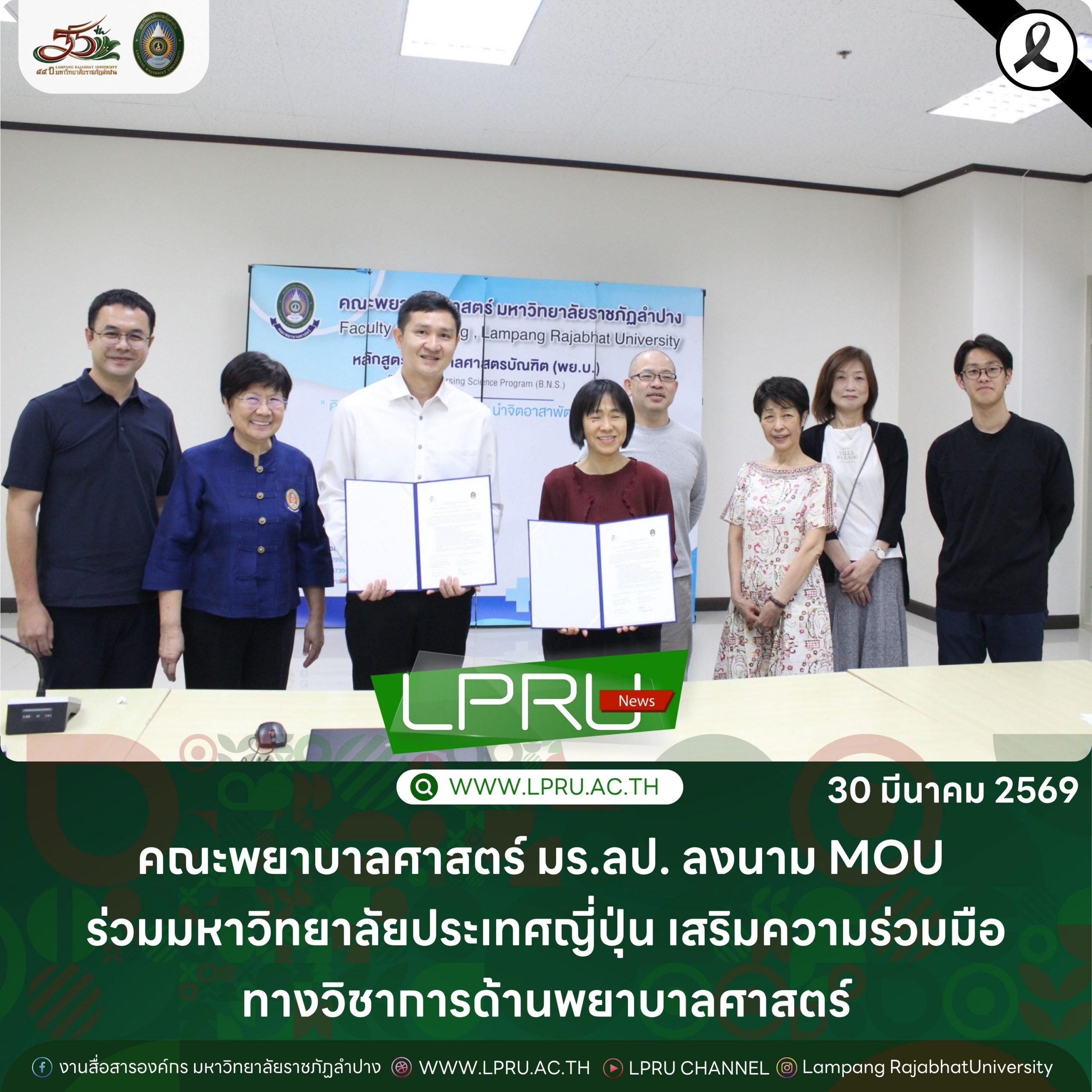 คณะพยาบาลศาสตร์ มร.ลป. ลงนาม MOU ร่วมมหาวิทยาลัยประเทศญี่ปุ่น เสริมความร่วมมือทางวิชาการด้านพยาบาลศาสตร์