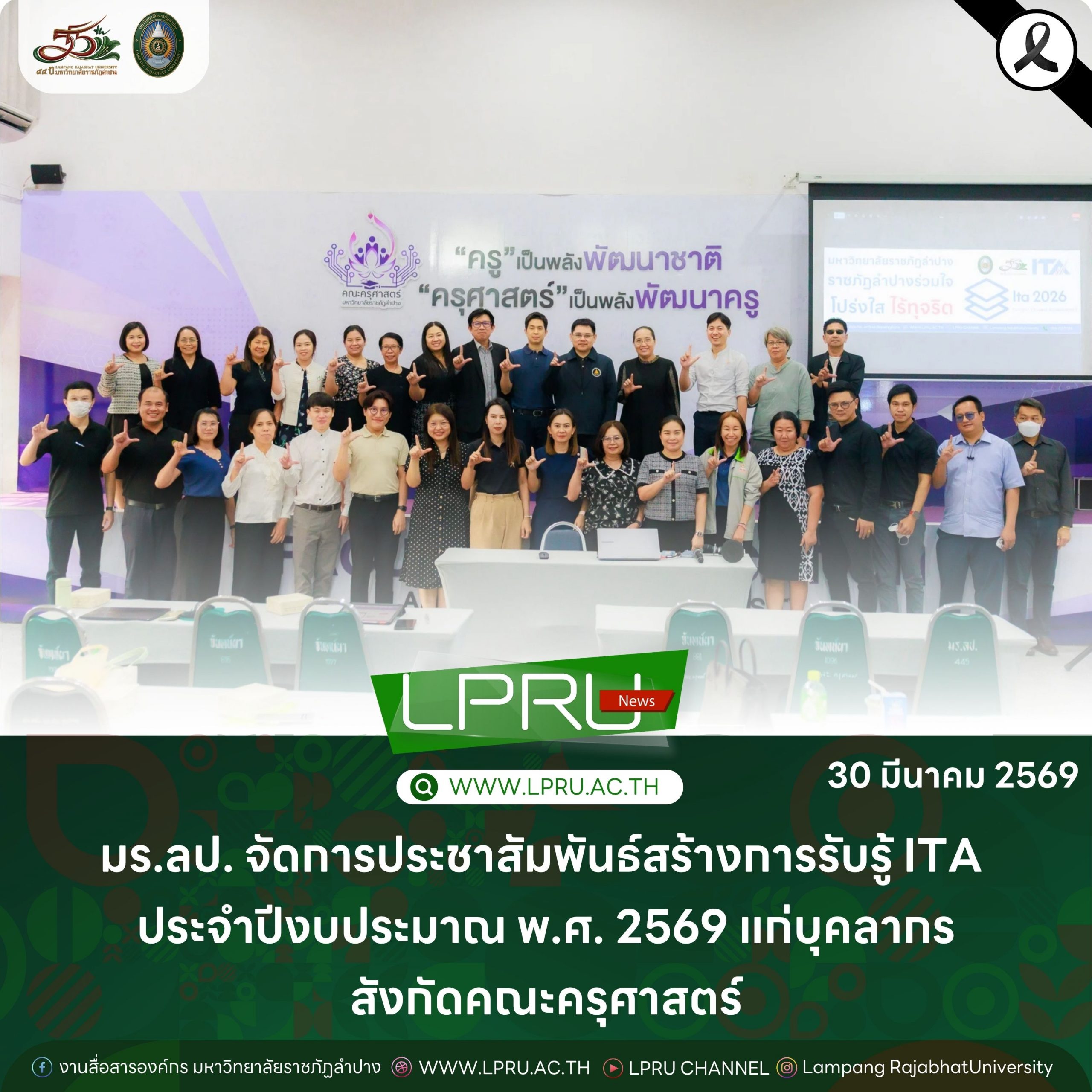 มร.ลป. จัดการประชาสัมพันธ์สร้างการรับรู้ ITA ประจำปีงบประมาณ พ.ศ. 2569 แก่บุคลากรสังกัดคณะครุศาสตร์