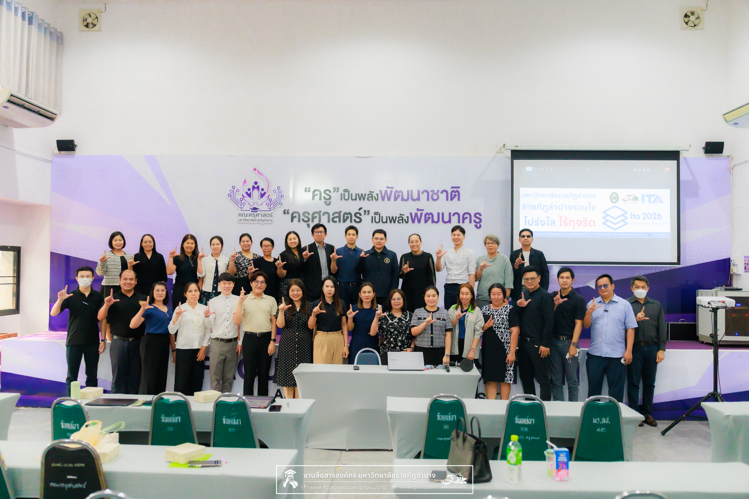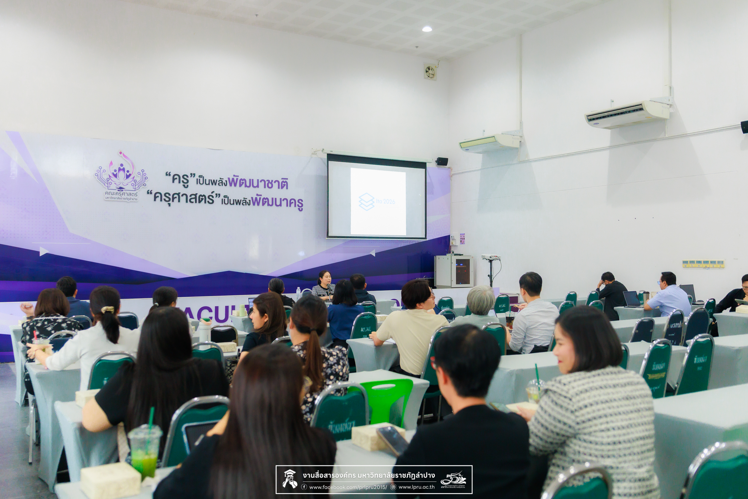เมื่อวันที่ 30 มีนาคม 2569 น.ส.ศศธร เครือนันตา นักประชาสัมพันธ์ ชำนาญการ ปฏิบัติหน้าที่ในตำแหน่งหัวหน้างานบริหารทั่วไปและสื่อสารองค์กร กองกลาง สำนักงานอธิการบดี มหาวิทยาลัยราชภัฏลำปาง จัดกิจกรรมการประชาสัมพันธ์สร้างการรับรู้ “การประเมินคุณธรรมและความโปร่งใสในการดำเนินงานของหน่วยงานภาครัฐ” (Integrity & Transparency Assessment : ITA) ประจำปีงบประมาณ พ.ศ. 2569 แก่บุคลากรสังกัดคณะวิทยาศาตร์ โดย รศ.ดร.ฟิสิกส์ ฌอณ บัวกนก คณบดีคณะครุศาสตร์ นำผู้บริหาร คณาจารย์ และบุคลากรในสังกัด เข้ารับฟัง ณ ห้องประชุมผลิตสื่อ ชั้น 3 อาคาร 52 คณะครุศาสตร์และคณะมนุษยศาสตร์และสังคมศาสตร์