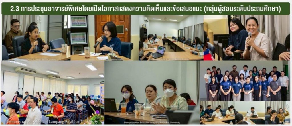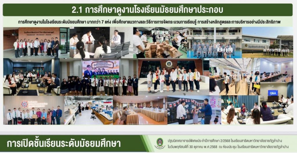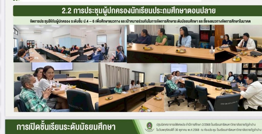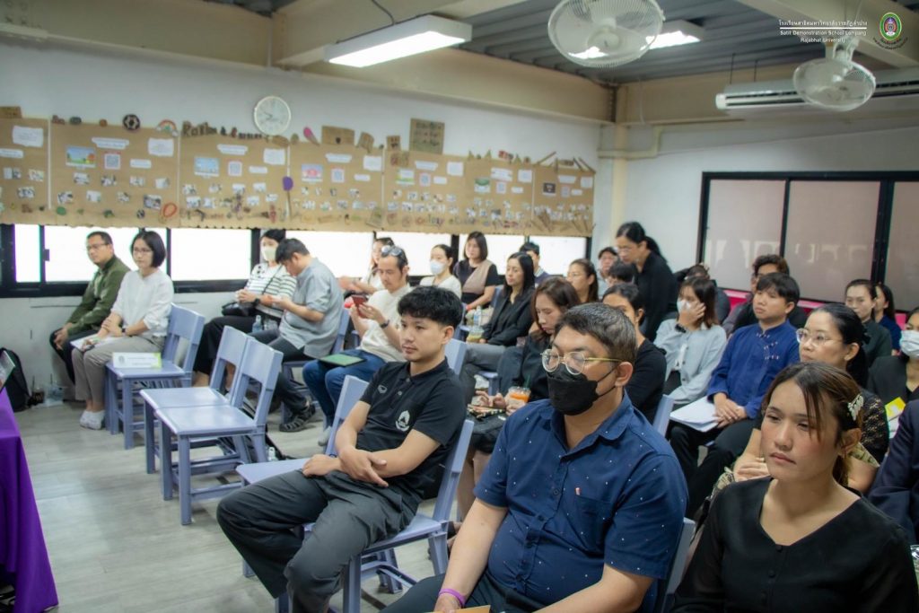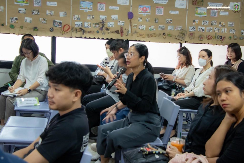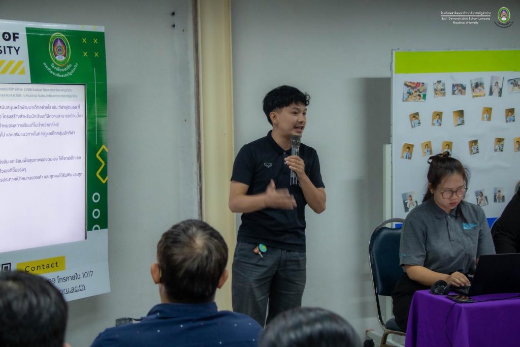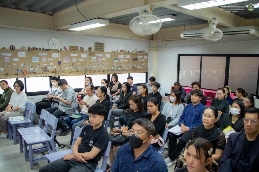 เมื่อวันที่ 30 ตุลาคม 2568 อ.ดร.สมศักดิ์ ก๋าทอง ผู้อำนวยการโรงเรียนสาธิตมหาวิทยาลัยราชภัฏลำปาง ได้กล่าวถึงแนวทางการเปิดชั้นเรียนระดับมัธยมศึกษาตอนต้นในปีการศึกษา 2569 และแนวทางการจัดการเรียนการสอน พร้อมเปิดโอกาสให้คณาจารย์ทุกคณะในมหาวิทยาลัยราชภัฏลำปางได้แสดงความคิดเห็นและร่วมแลกเปลี่ยนเรียนรู้ เพื่อนำมาสู่การพัฒนาหลักสูตร รวมทั้งเอกสารประกอบการสอน หนังสือเรียน และสื่อการสอนที่เน้นผู้เรียนเป็นสำคัญ โดยสร้างจุดเน้นและเสริมจุดแข็ง อ.ดร.พิมพ์ผกา อินทะรส รองผู้อำนวยการฯ ได้นำเสนอกรอบโครงสร้างของลักสูตรสถานศึกษาที่สร้างจุดเน้นและอัตลักษณ์ที่โดดเด่น โดยสอดคล้องกับความถนัดและความสนใจของผู้เรียน