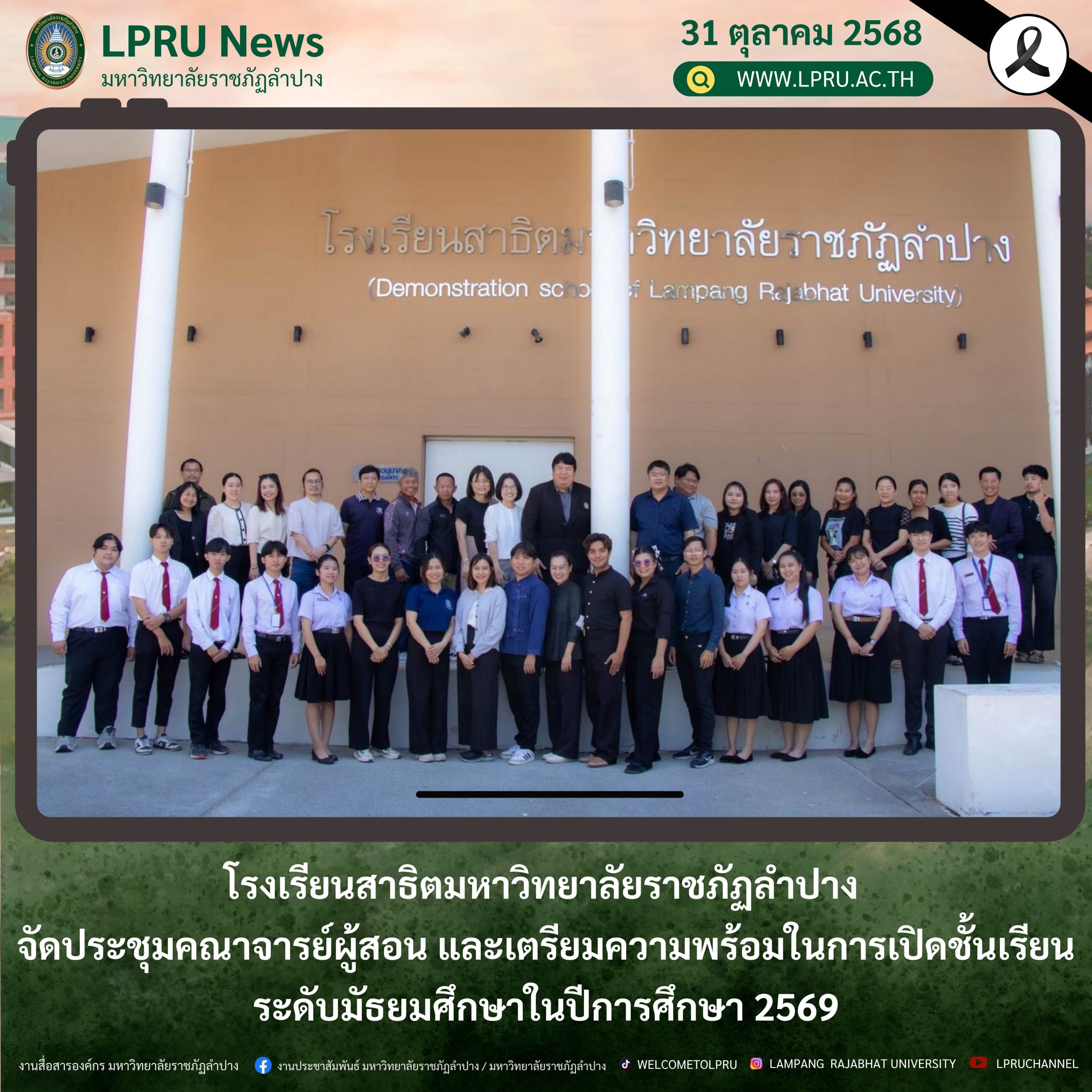 โรงเรียนสาธิตมหาวิทยาลัยราชภัฏลำปาง จัดประชุมคณาจารย์ผู้สอน และเตรียมความพร้อมในการเปิดชั้นเรียนระดับมัธยมศึกษาในปีการศึกษา 2569