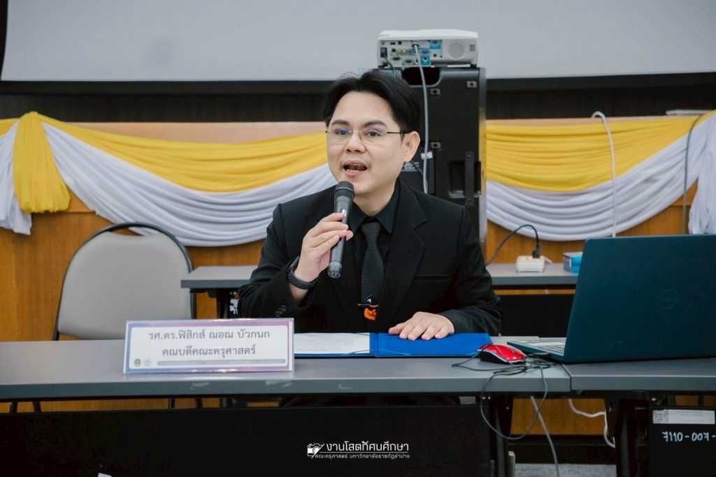 รศ.ดร.ฟิสิกส์ ฌอณ บัวกนก คณบดีคณะครุศาสตร์ เป็นประธานในพิธีเปิดการประชุมอาจารย์นิเทศก์นักศึกษาหลักสูตรครุศาสตรบัณฑิต (ค.บ. 4 ปี) เมื่อวันที่ 31 ตุลาคม 2568 ณ ห้องประชุมเอื้องหลวง อาคาร 52 คณะครุศาสตร์และคณะมนุษยศาสตร์และสังคมศาสตร์ มหาวิทยาลัยราชภัฏลำปาง โดยมีอาจารย์นิเทศก์สังกัดคณะครุศาสตร์และคณะร่วมผลิต เข้าร่วมกิจกรรมการประชุม กว่า 90 คน