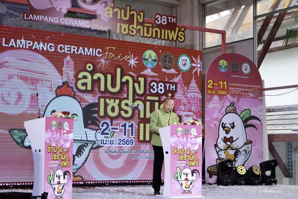 ในการนี้ งาน “ลำปางเซรามิกแฟร์” ครั้งที่ 38 จัดขึ้นเพื่อเพิ่มขีดความสามารถในการแข่งขัน สร้างงานสร้างรายได้ให้กับผู้ประกอบการ เพิ่มมูลค่าสินค้า การลงทุนของจังหวัด เพิ่มช่องทางการตลาด สร้างโอกาสในการขยายตลาดสินค้าจังหวัดลำปางทั้งในและต่างประเทศ รวมถึงเป็นการประชาสัมพันธ์สินค้าและแหล่งท่องเที่ยวของจังหวัดลำปางให้เป็นที่รู้จักอย่างแพร่หลาย จึงขอเชิญชวนทุกท่าน ร่วมเที่ยวชม และซื้อสินค้าในงาน ระหว่างวันที่ 2 – 11 เมษายน 2569 ณ ศูนย์ประชุมและแสดงสินค้าอุตสาหกรรมภาคเหนือ อำเภอเกาะคา จังหวัดลำปาง