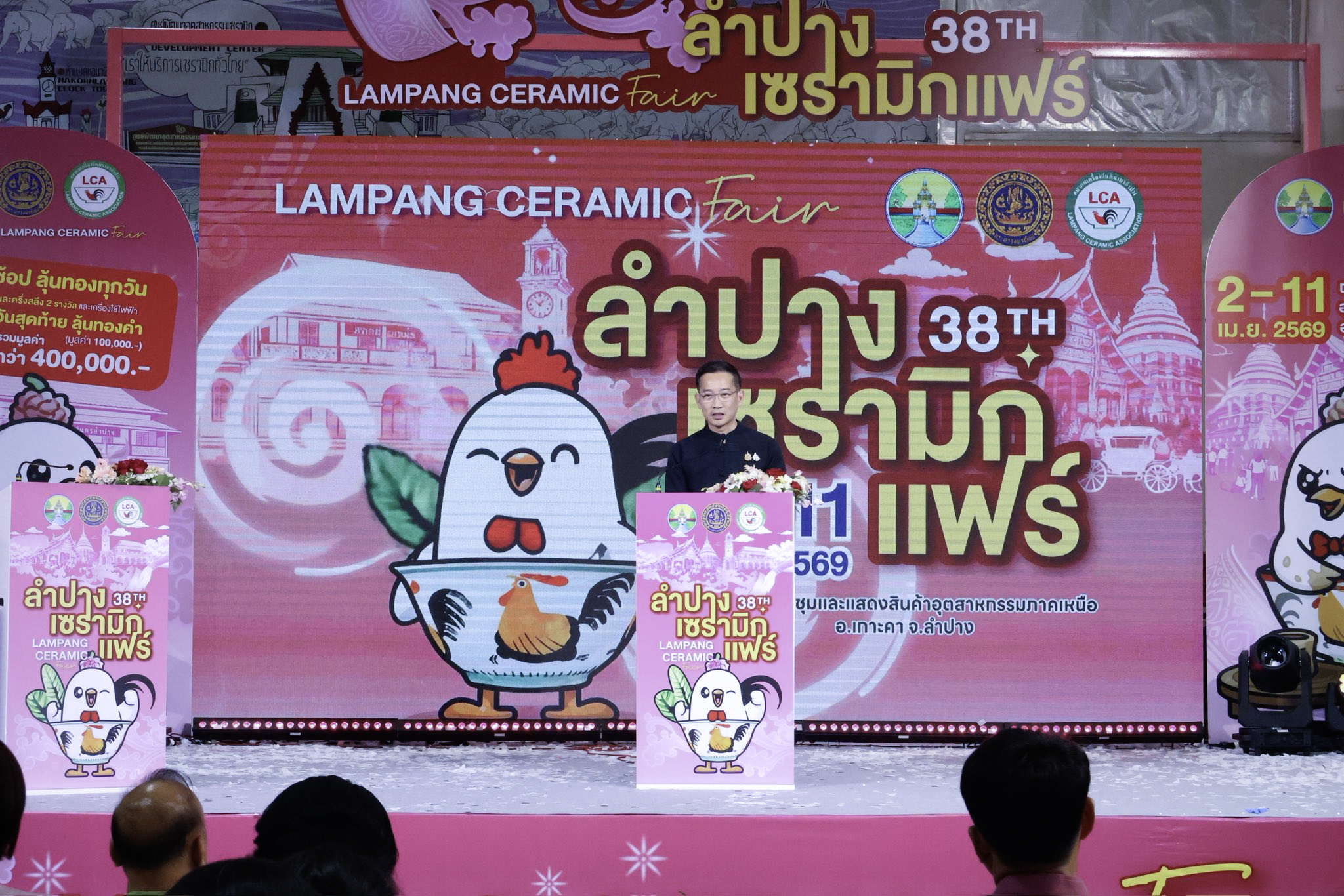 ในการนี้ งาน “ลำปางเซรามิกแฟร์” ครั้งที่ 38 จัดขึ้นเพื่อเพิ่มขีดความสามารถในการแข่งขัน สร้างงานสร้างรายได้ให้กับผู้ประกอบการ เพิ่มมูลค่าสินค้า การลงทุนของจังหวัด เพิ่มช่องทางการตลาด สร้างโอกาสในการขยายตลาดสินค้าจังหวัดลำปางทั้งในและต่างประเทศ รวมถึงเป็นการประชาสัมพันธ์สินค้าและแหล่งท่องเที่ยวของจังหวัดลำปางให้เป็นที่รู้จักอย่างแพร่หลาย จึงขอเชิญชวนทุกท่าน ร่วมเที่ยวชม และซื้อสินค้าในงาน ระหว่างวันที่ 2 – 11 เมษายน 2569 ณ ศูนย์ประชุมและแสดงสินค้าอุตสาหกรรมภาคเหนือ อำเภอเกาะคา จังหวัดลำปาง