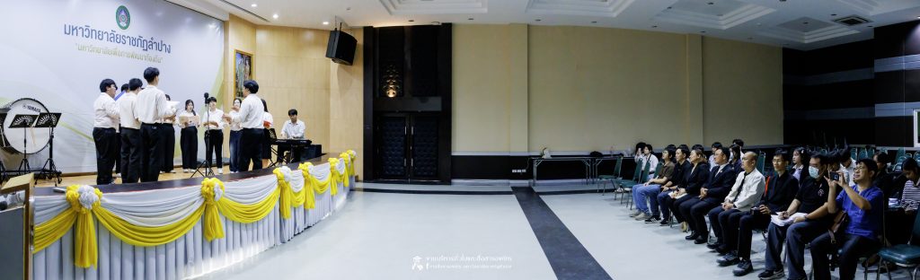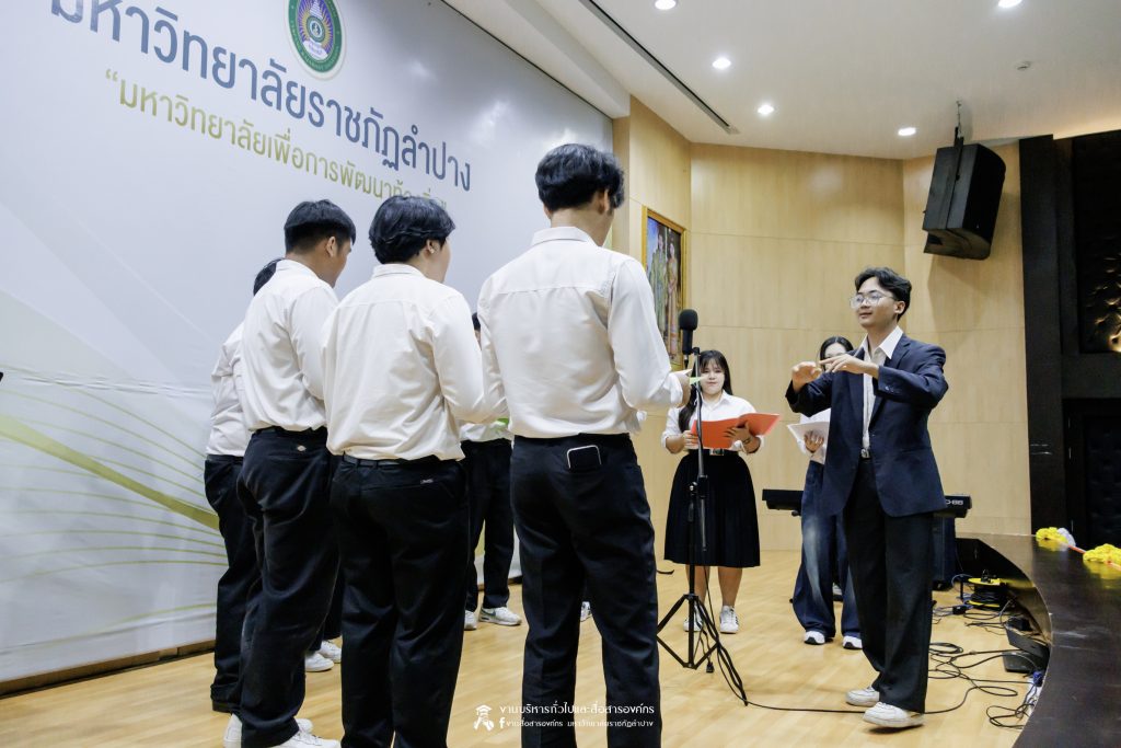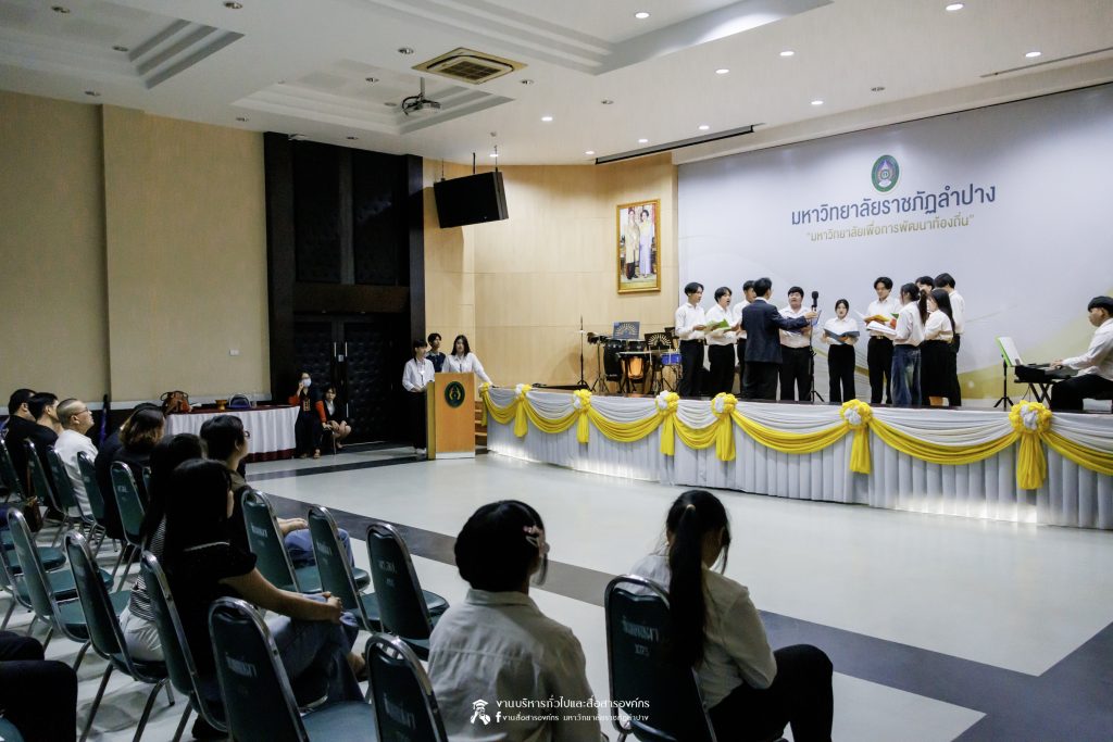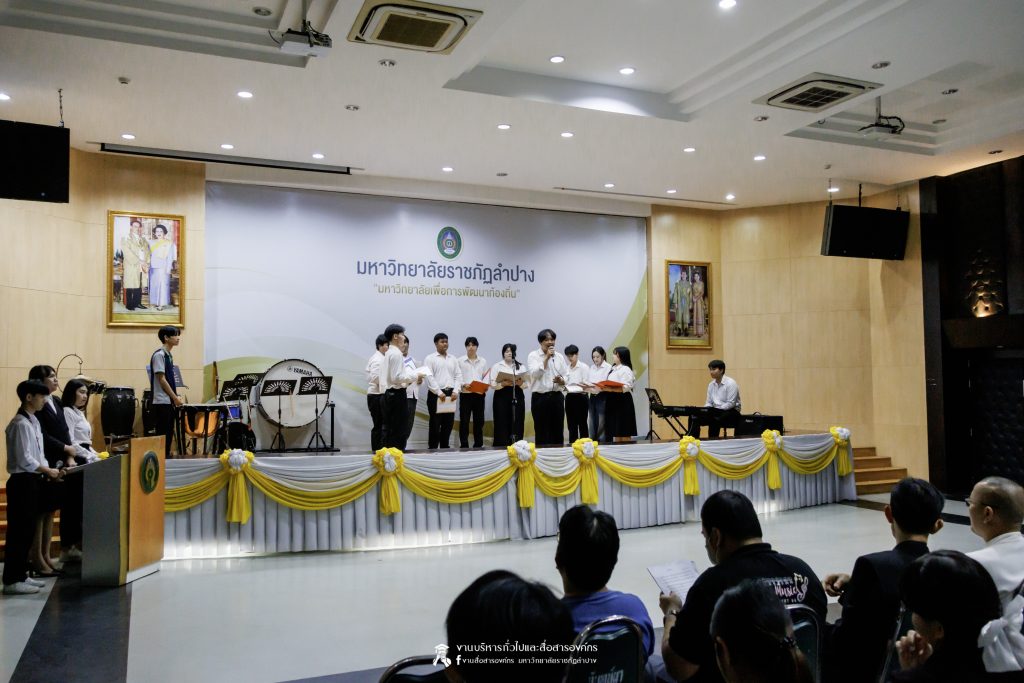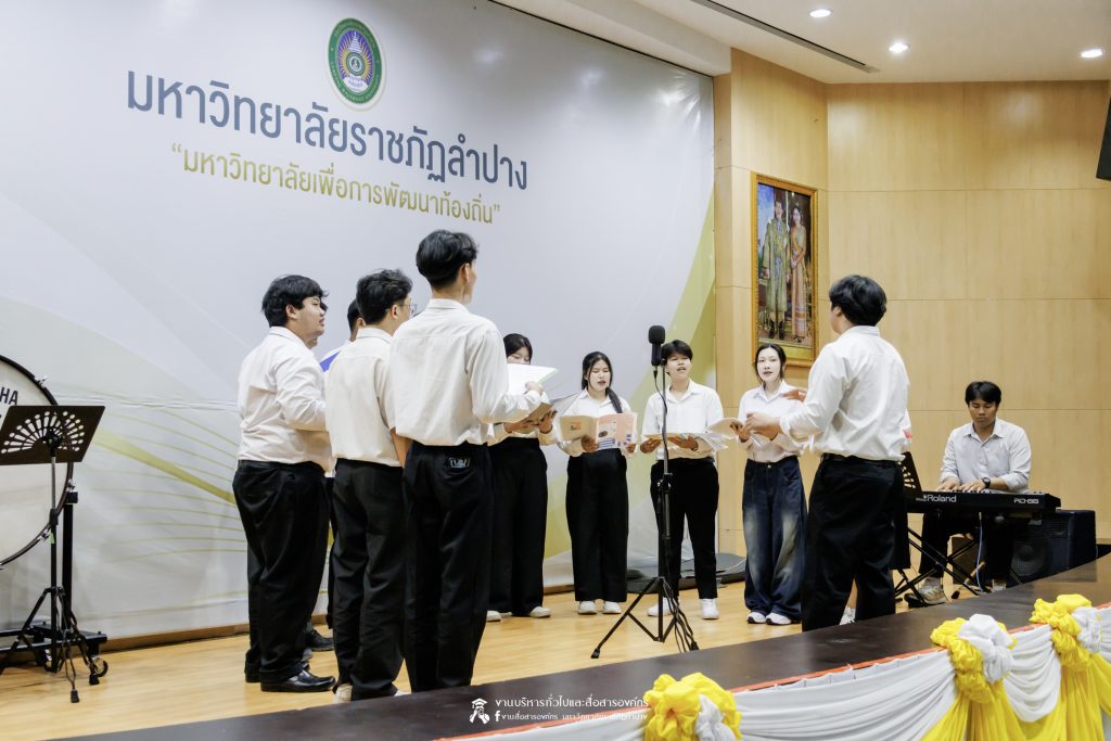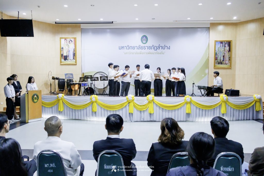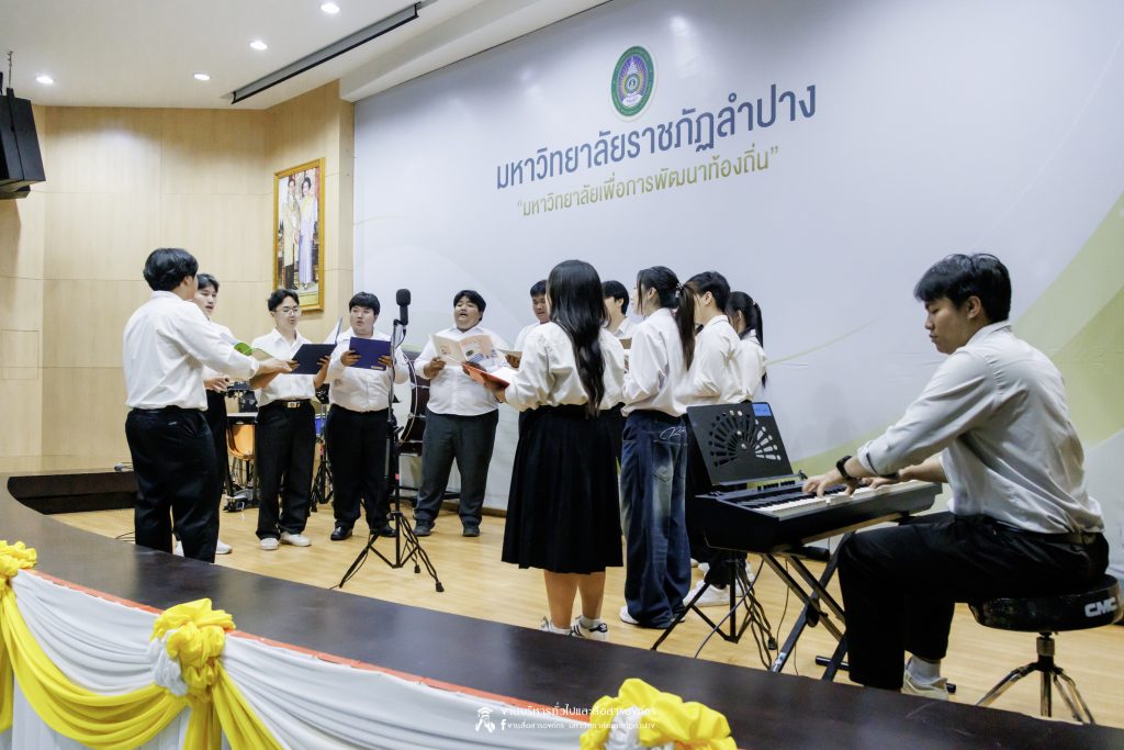 ศ.ดร.วิทยา จันทร์ศิลา นายกสภามหาวิทยาลัยราชภัฏลำปาง พร้อมด้วย รศ.ดร.ปริเยศ สิทธิสรวง รองอธิการบดีฝ่ายบริหาร อ.ดร.เสาวรีย์ บุญสา คณบดี คณมนุษยศาสตร์และสังคมศาสตร์ ร่วมรับฟังการร้องเพลงประสานเสียง และการแสดงวง Wind Band ของนักศึกษาสาขาวิชาดนตรีศึกษา คณะมนุษยศาสตร์และสังคมศาสตร์ เมื่อวันที่ 27 กุมภาพันธ์ 2568 ณ ห้องประชุมโอฬารรัตน์ ชั้น 1 อาคารโอฬาร โรจน์หิรัญ