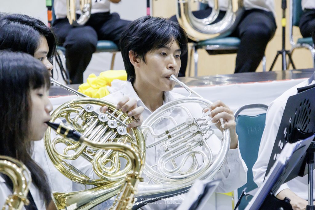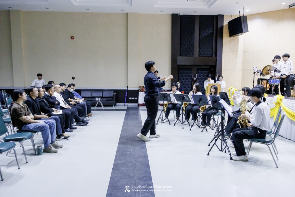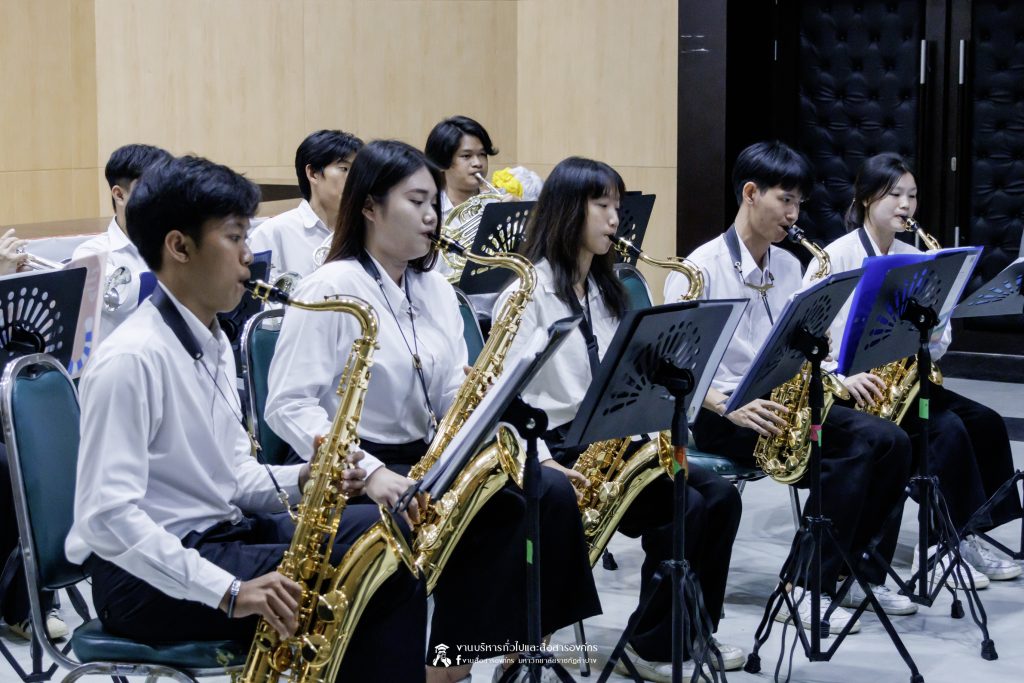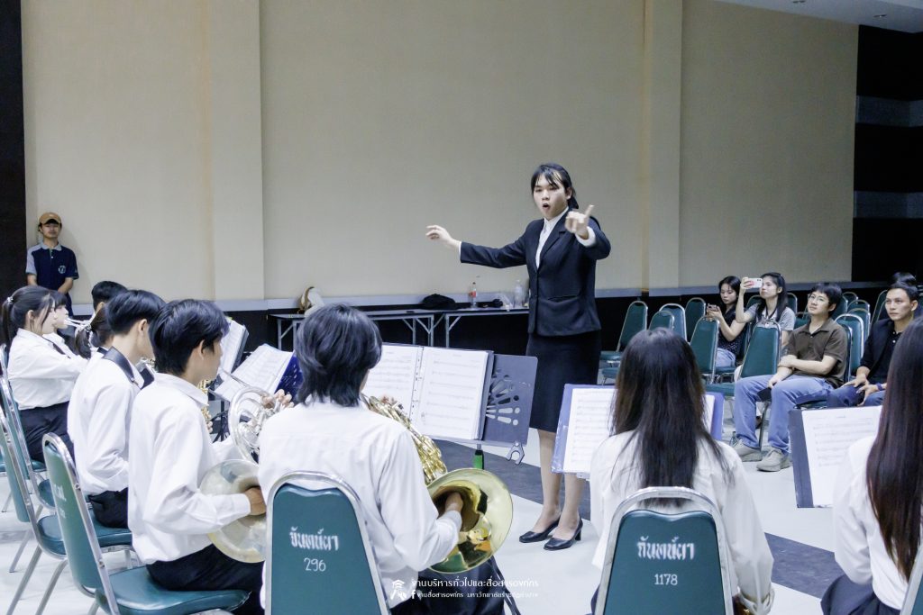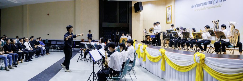 การแสดงร้องเพลงประสานเสียง และการแสดงวง Wind Band เป็นส่วนหนึ่งในการเรียนการสอนในรายวิชา “การเรียบเรียงเสียงประสานสำหรับวงดนตรี” และรายวิชา “การอำนวยเพลงเบื้องต้น” ของนักศึกษาชั้นปีที่ 3 สาขาวิชาดนตรีศึกษา คณะมนุษยศาสตร์และสังคมศาสตร์ ซึ่งการเรียบเรียงเสียงประสาน (Arrangement/Orchestration) สำหรับวงดนตรี มีความสำคัญในการเปลี่ยนทำนองหลักให้เป็นบทเพลงที่สมบูรณ์ โดยการจัดสรรเสียงเครื่องดนตรีให้ผสมผสานกันอย่างลงตัว สร้างสีสันอารมณ์ที่หลากหลาย เสริมสร้างความไพเราะสมดุล และยกระดับการแสดงดนตรีให้มีความน่าสนใจ มีพลัง และเอกลักษณ์เฉพาะตัว โดยนักศึกษาได้เลือกผลงานเพลงมาเรียบเรียงเสียงประสานใหม่ ถือว่าเป็นก้าวสำคัญในการพัฒนาทักษะด้านดนตรีเพื่อต่อยอดเป็นครูดนตรีที่มีคุณภาพในอนาคต
