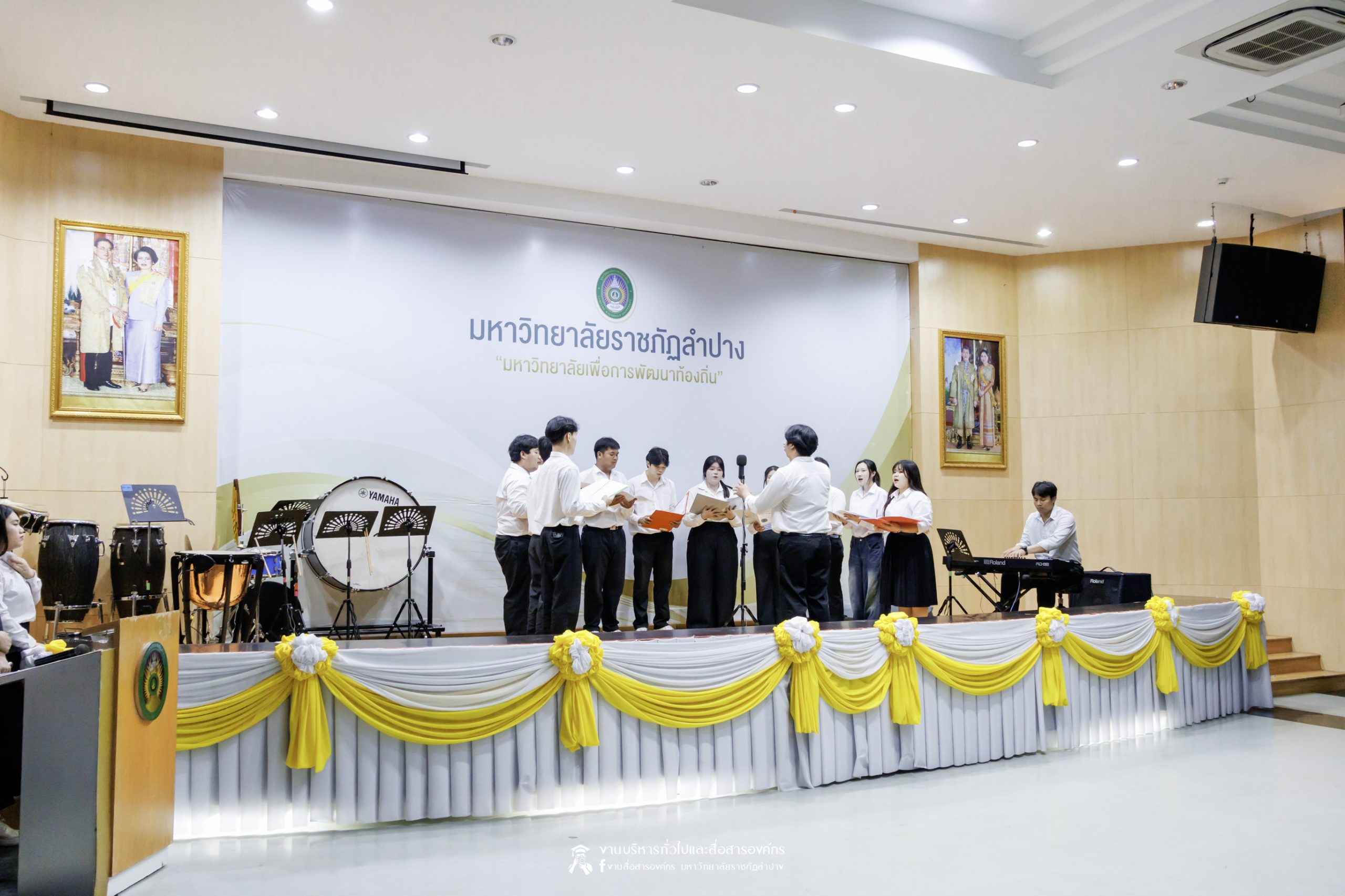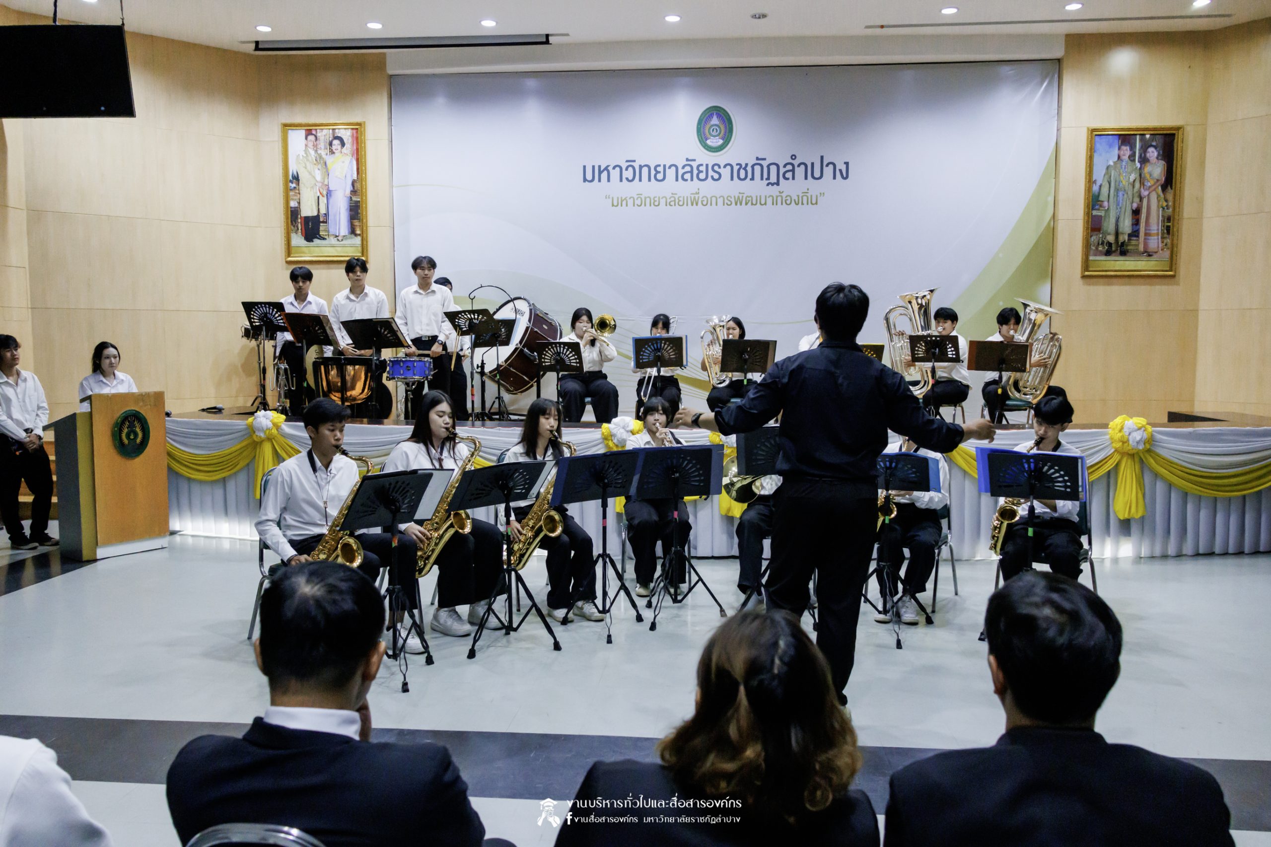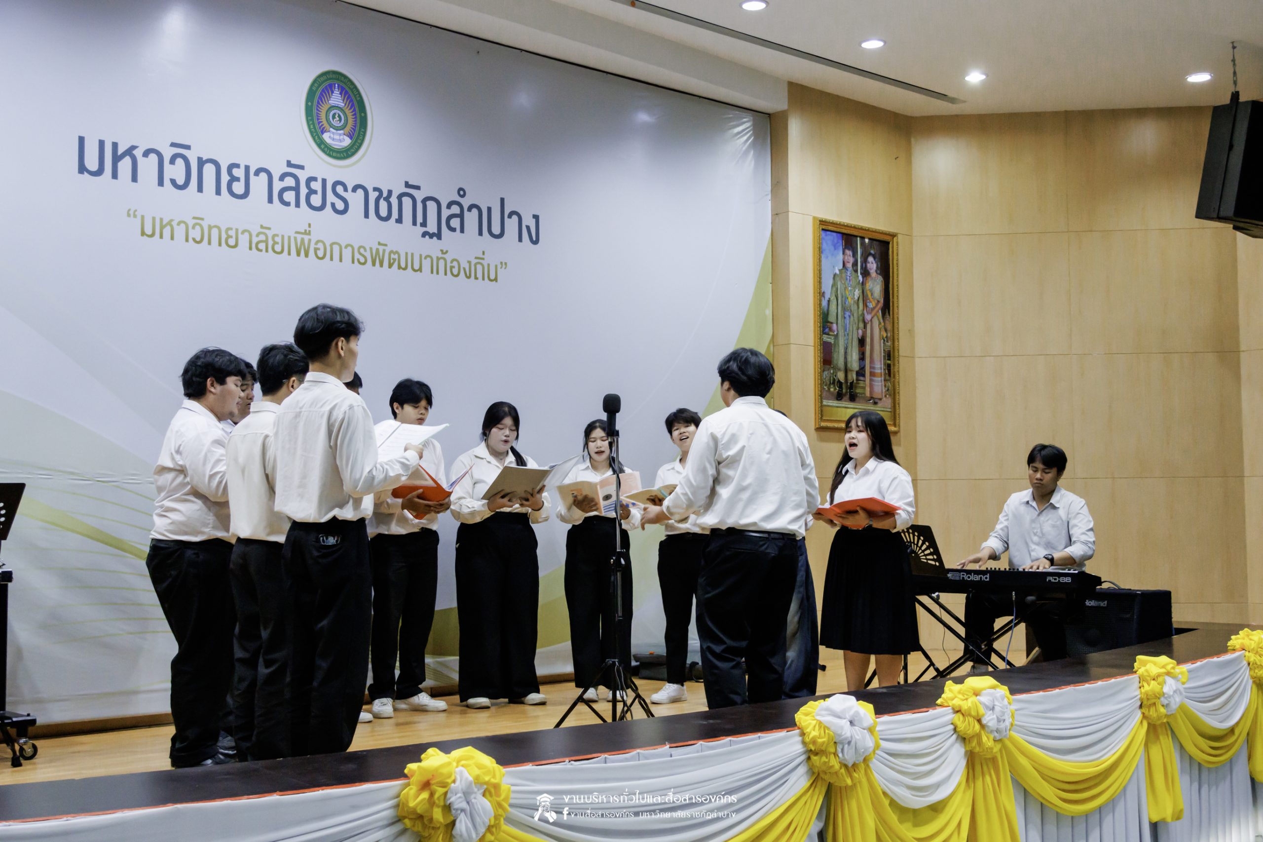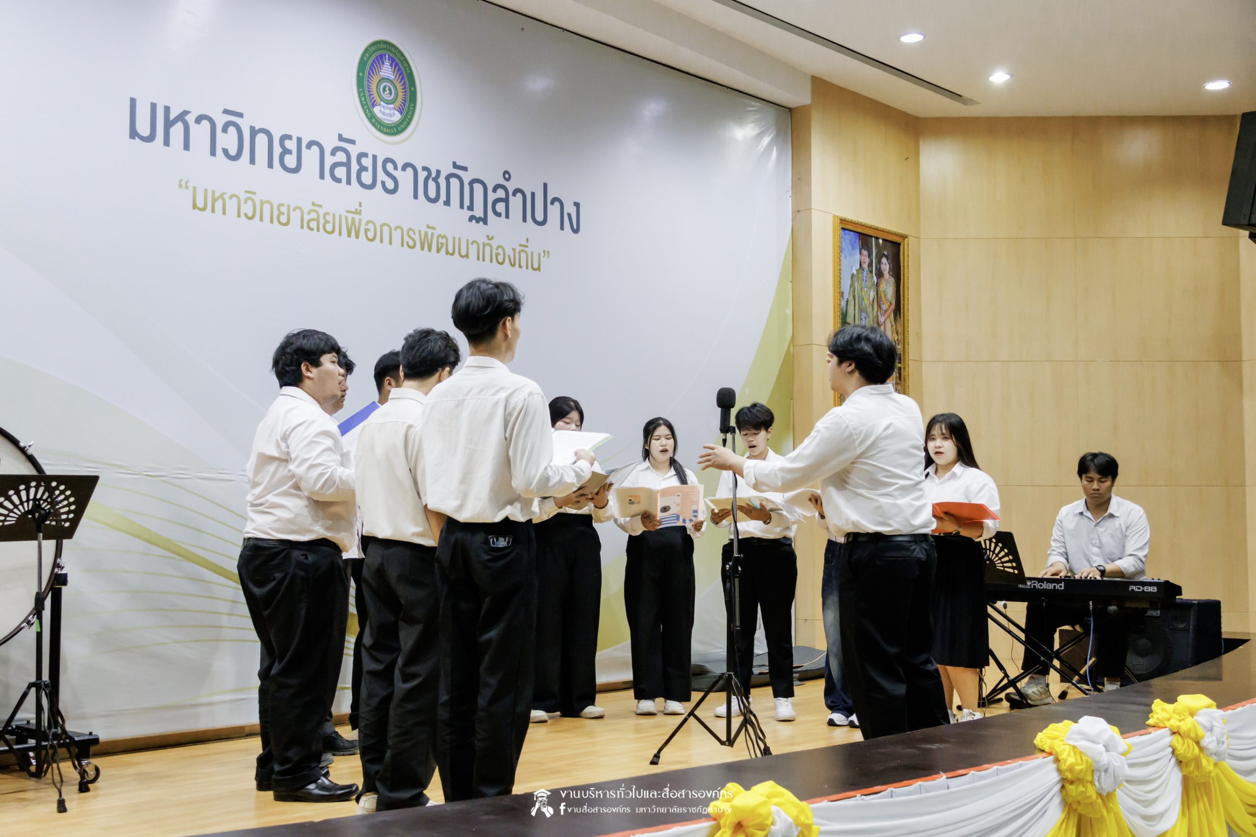 ศ.ดร.วิทยา จันทร์ศิลา นายกสภามหาวิทยาลัยราชภัฏลำปาง พร้อมด้วย รศ.ดร.ปริเยศ สิทธิสรวง รองอธิการบดีฝ่ายบริหาร อ.ดร.เสาวรีย์ บุญสา คณบดี คณมนุษยศาสตร์และสังคมศาสตร์ ร่วมรับฟังการร้องเพลงประสานเสียง และการแสดงวง Wind Band ของนักศึกษาสาขาวิชาดนตรีศึกษา คณะมนุษยศาสตร์และสังคมศาสตร์ เมื่อวันที่ 27 กุมภาพันธ์ 2568 ณ ห้องประชุมโอฬารรัตน์ ชั้น 1 อาคารโอฬาร โรจน์หิรัญ