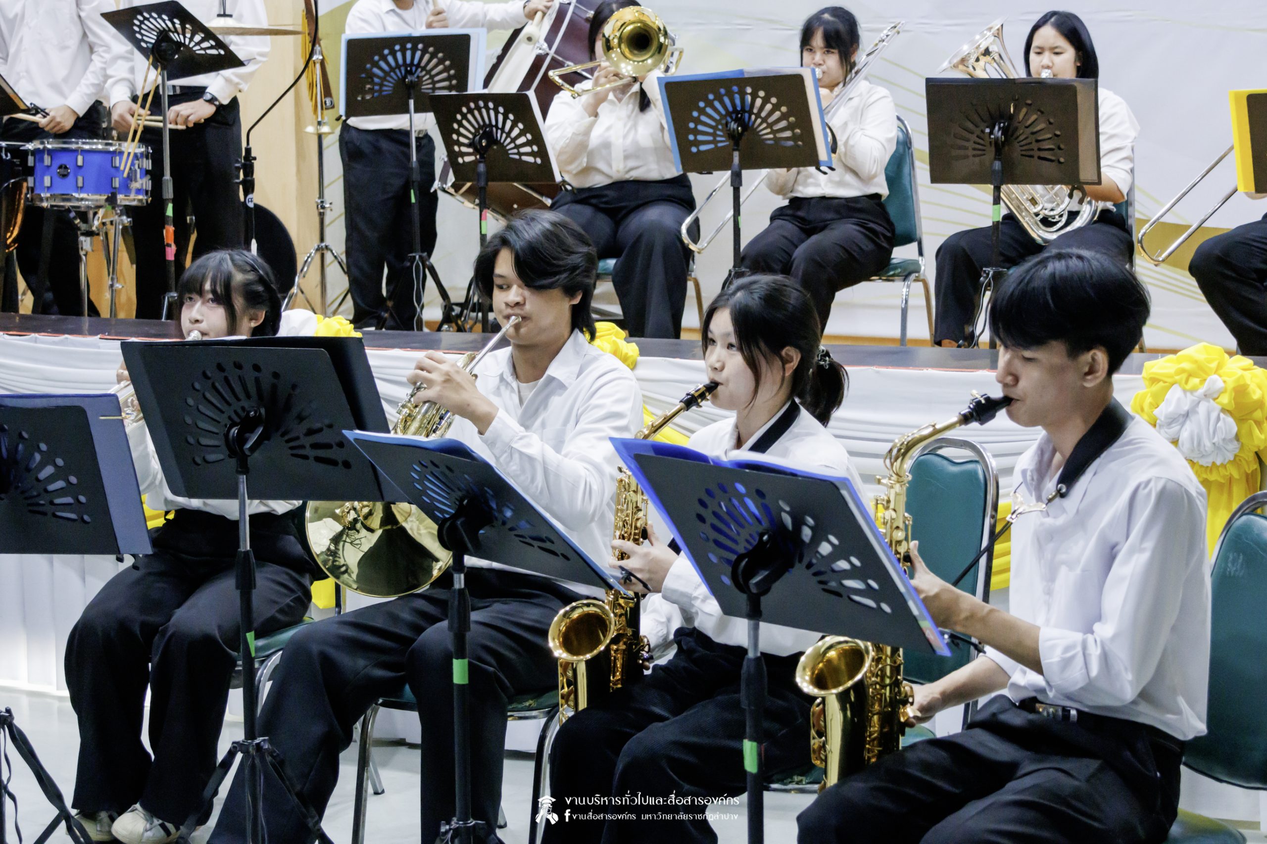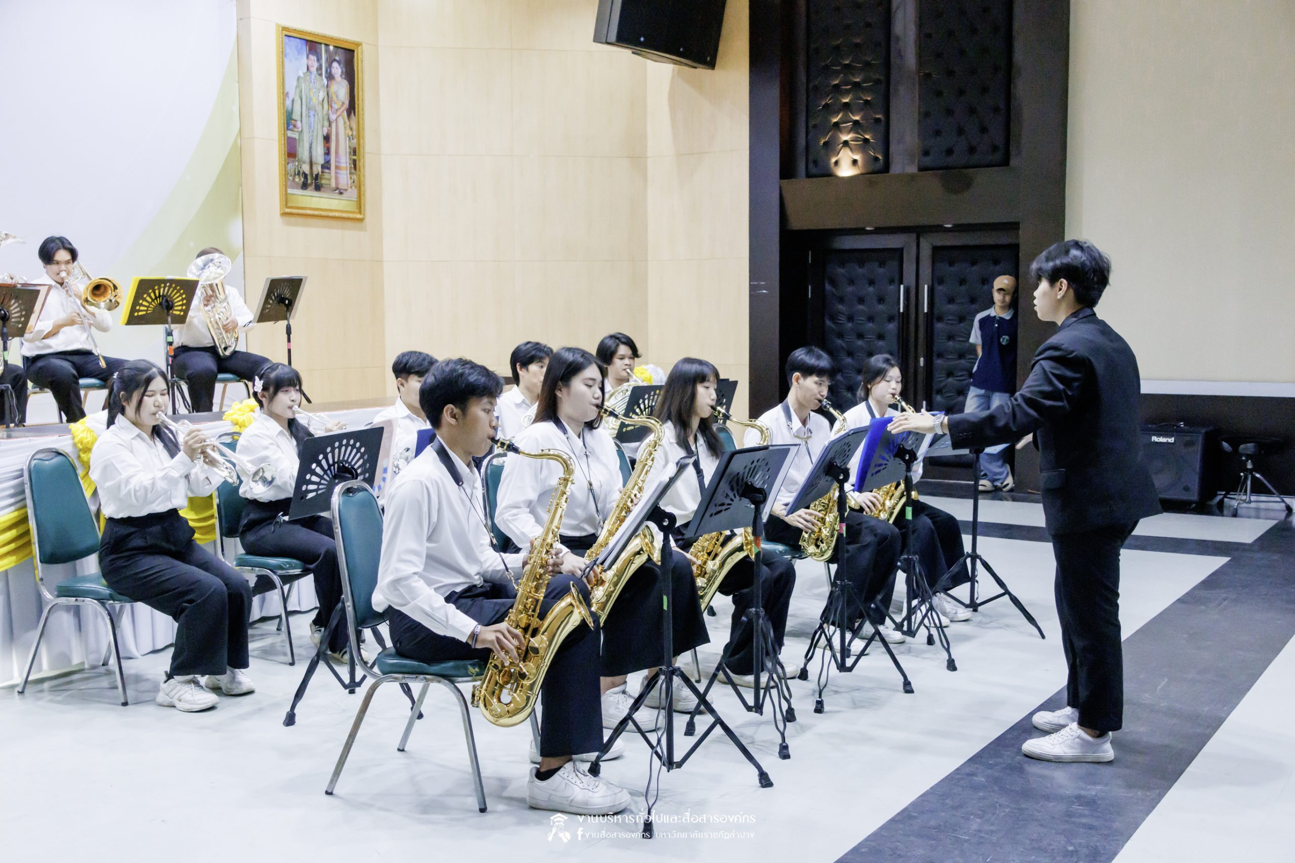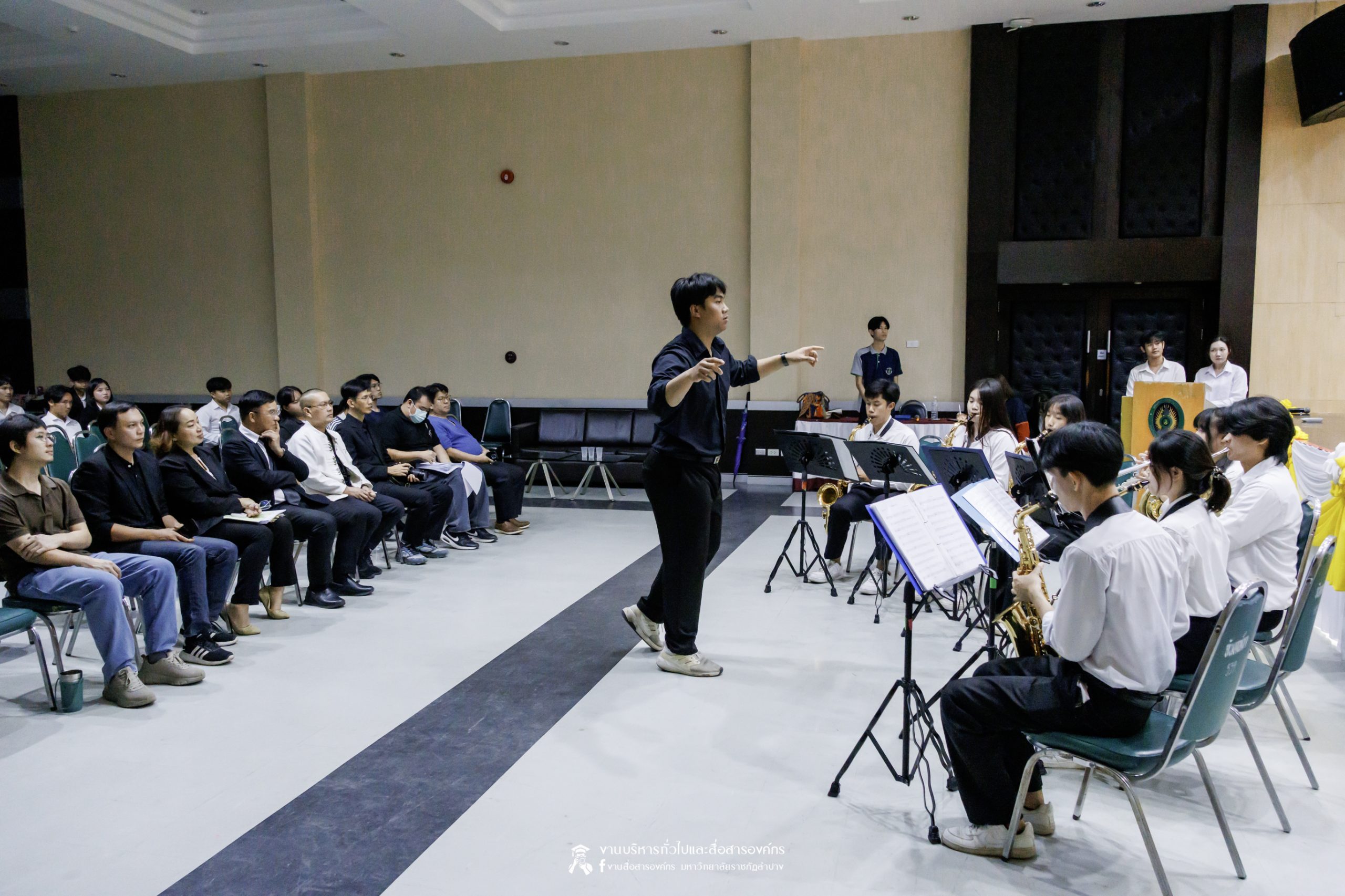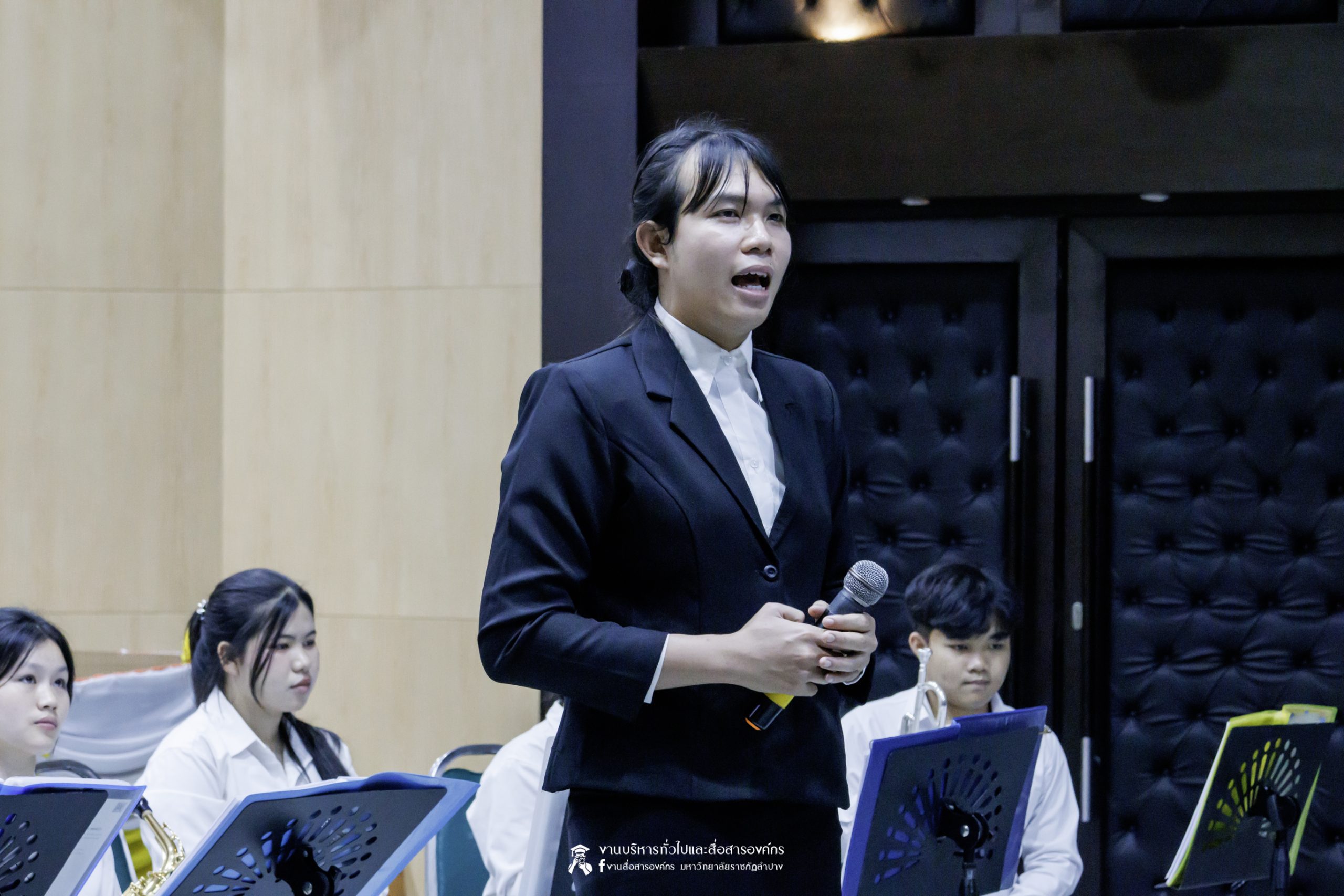 การแสดงร้องเพลงประสานเสียง และการแสดงวง Wind Band เป็นส่วนหนึ่งในการเรียนการสอนในรายวิชา “การเรียบเรียงเสียงประสานสำหรับวงดนตรี” และรายวิชา “การอำนวยเพลงเบื้องต้น” ของนักศึกษาชั้นปีที่ 3 สาขาวิชาดนตรีศึกษา คณะมนุษยศาสตร์และสังคมศาสตร์ ซึ่งการเรียบเรียงเสียงประสาน (Arrangement/Orchestration) สำหรับวงดนตรี มีความสำคัญในการเปลี่ยนทำนองหลักให้เป็นบทเพลงที่สมบูรณ์ โดยการจัดสรรเสียงเครื่องดนตรีให้ผสมผสานกันอย่างลงตัว สร้างสีสันอารมณ์ที่หลากหลาย เสริมสร้างความไพเราะสมดุล และยกระดับการแสดงดนตรีให้มีความน่าสนใจ มีพลัง และเอกลักษณ์เฉพาะตัว โดยนักศึกษาได้เลือกผลงานเพลงมาเรียบเรียงเสียงประสานใหม่ ถือว่าเป็นก้าวสำคัญในการพัฒนาทักษะด้านดนตรีเพื่อต่อยอดเป็นครูดนตรีที่มีคุณภาพในอนาคต