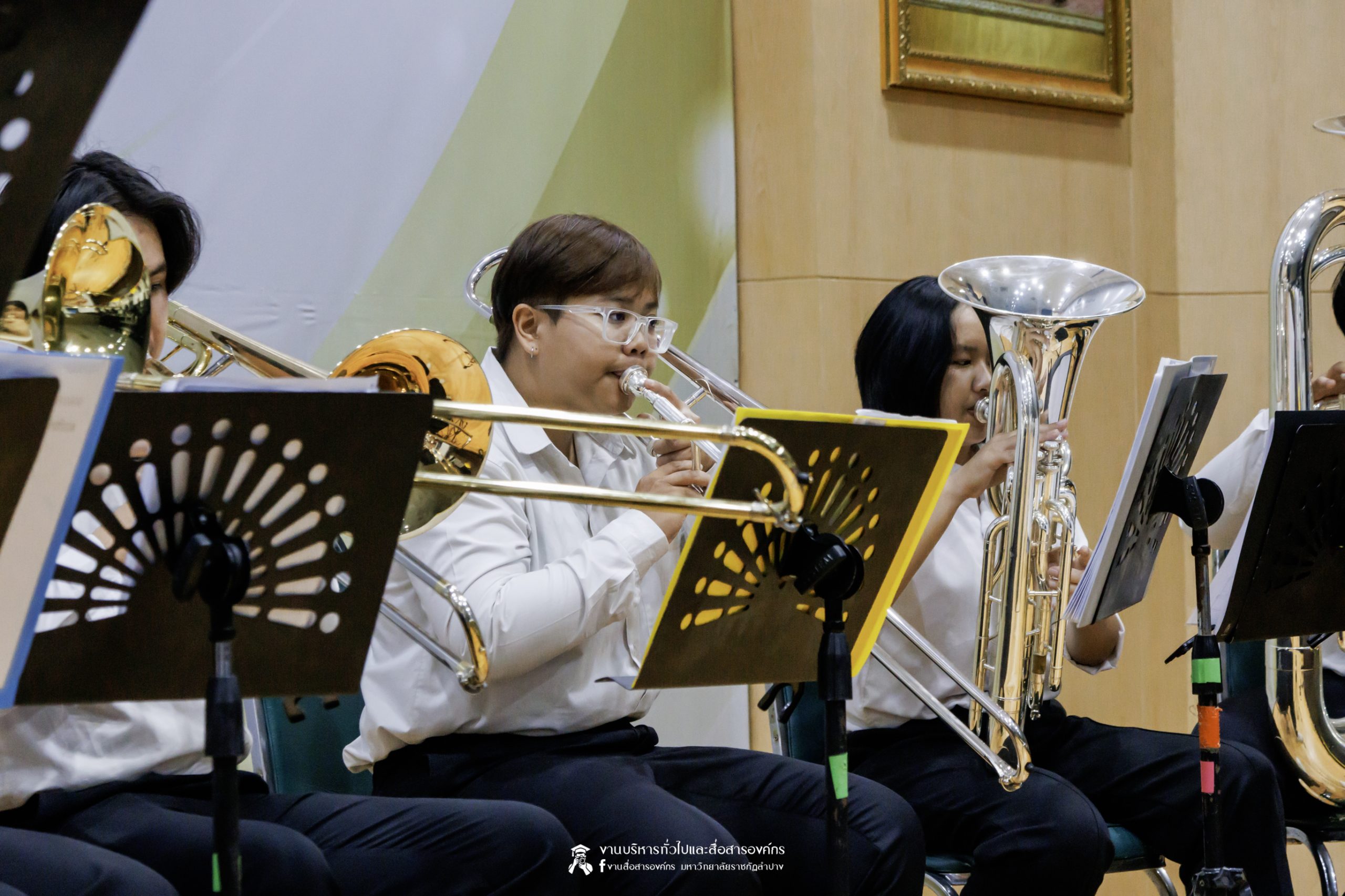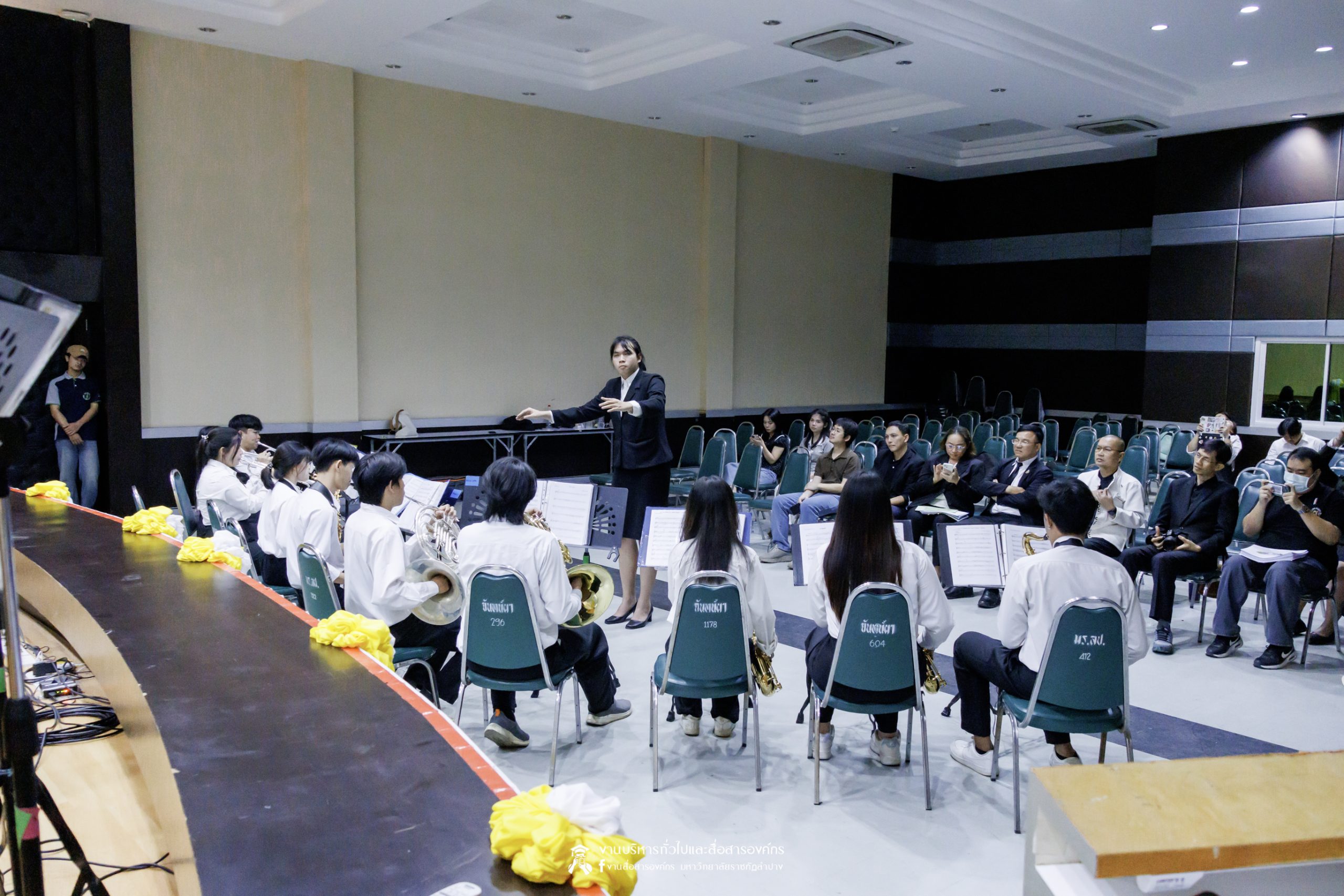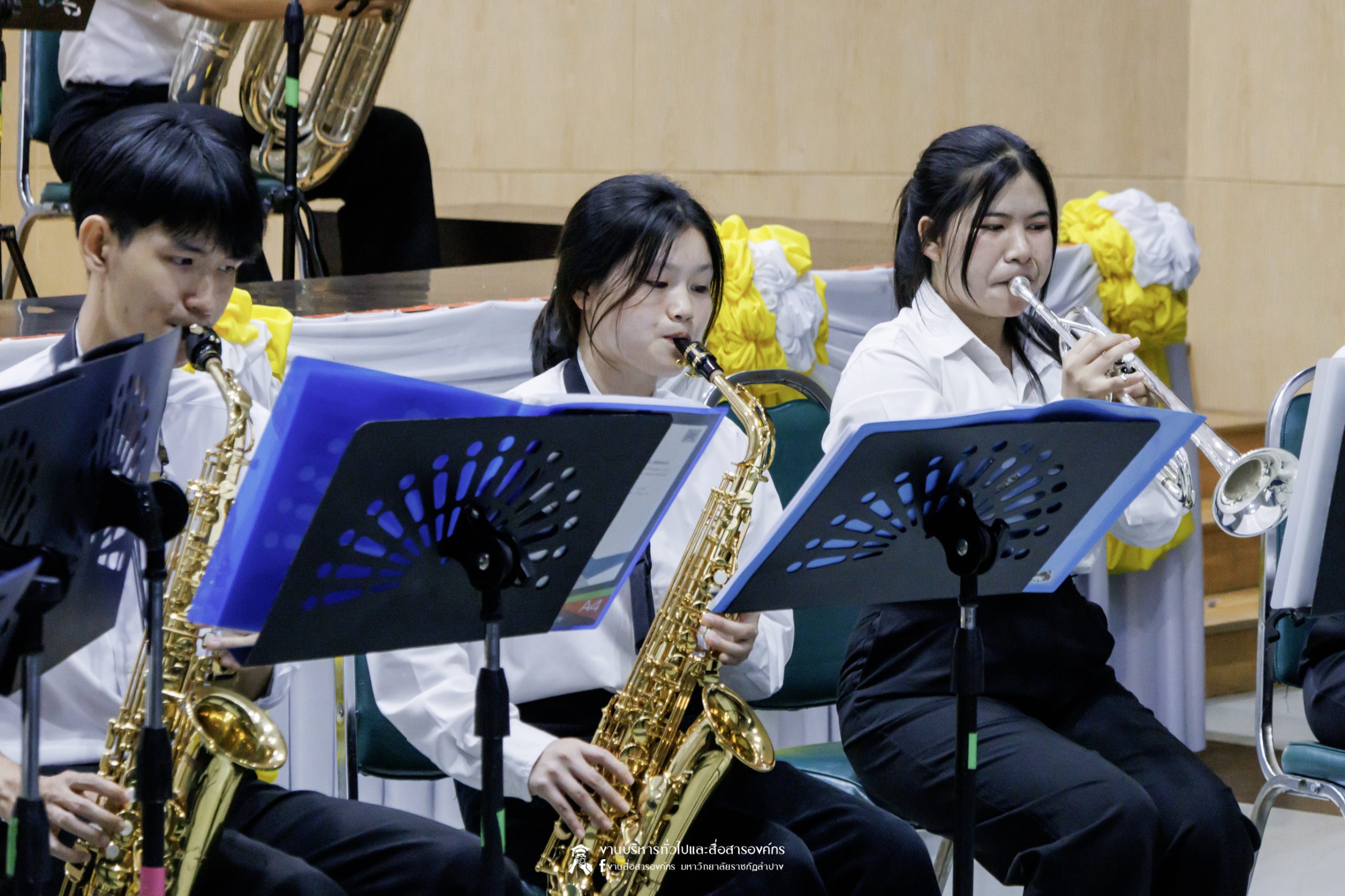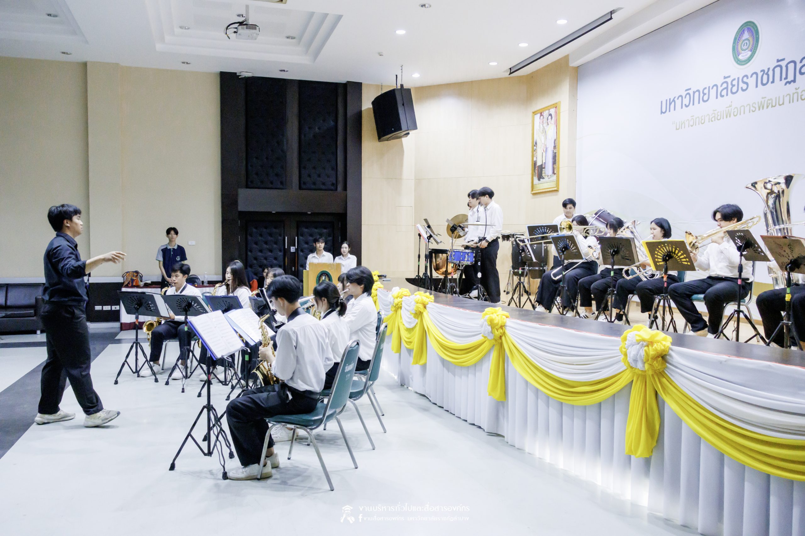 การแสดงร้องเพลงประสานเสียง และการแสดงวง Wind Band เป็นส่วนหนึ่งในการเรียนการสอนในรายวิชา “การเรียบเรียงเสียงประสานสำหรับวงดนตรี” และรายวิชา “การอำนวยเพลงเบื้องต้น” ของนักศึกษาชั้นปีที่ 3 สาขาวิชาดนตรีศึกษา คณะมนุษยศาสตร์และสังคมศาสตร์ ซึ่งการเรียบเรียงเสียงประสาน (Arrangement/Orchestration) สำหรับวงดนตรี มีความสำคัญในการเปลี่ยนทำนองหลักให้เป็นบทเพลงที่สมบูรณ์ โดยการจัดสรรเสียงเครื่องดนตรีให้ผสมผสานกันอย่างลงตัว สร้างสีสันอารมณ์ที่หลากหลาย เสริมสร้างความไพเราะสมดุล และยกระดับการแสดงดนตรีให้มีความน่าสนใจ มีพลัง และเอกลักษณ์เฉพาะตัว โดยนักศึกษาได้เลือกผลงานเพลงมาเรียบเรียงเสียงประสานใหม่ ถือว่าเป็นก้าวสำคัญในการพัฒนาทักษะด้านดนตรีเพื่อต่อยอดเป็นครูดนตรีที่มีคุณภาพในอนาคต