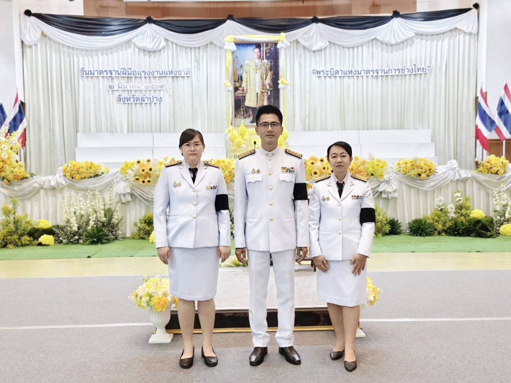 เมื่อวันที่ 2 มีนาคม 2569 ผศ.จักรกฤษณ์ ฮั่นยะลา คณบดีคณะเทคโนโลยีอุตสาหกรรม พร้อมด้วย นางบุญศรี ศรีแปงวงศ์ นักวิชาการศึกษา ชำนาญการ และ น.ส.รุ่งระวี ปวนปันวงค์ นักวิชาการพัสดุ ชำนาญการ สังกัดคณะเทคโนโลยีอุตสาหกรรม มหาวิทยาลัยราชภัฏลำปาง ร่วมพิธีวางพานพุ่มถวายเครื่องราชสักการะ แด่พระบาทสมเด็จพระบรมชนกาธิเบศร มหาภูมิพลอดุลยเดชมหาราช บรมนาถบพิตร เนื่องใน “วันมาตรฐานฝีมือแรงงานแห่งชาติ” ณ อาคารหอประชุมจังหวัดลําปาง ศาลากลางจังหวัดลําปาง โดย นายวิวัฒน์ อินทร์ไทยวงศ์ ผู้ว่าราชการจังหวัดลำปาง เป็นประธานในพิธี