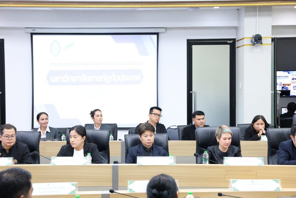 การประชุมในครั้งนี้ เพื่อพิจารณาแนวทางขับเคลื่อนและพัฒนาเครือข่ายสถาบันวิจัยและพัฒนา มหาวิทยาลัยราชภัฏทั่วประเทศ และการจัดมหกรรม เศรษฐกิจฐานราก 4 ภูมิภาค (Appropriate Technology Matching Day 2025) พร้อมกันนี้ได้รับเกียรติจาก รศ.ดร.อุเทน คำน่าน รองผู้อำนวยการหน่วยบริหารและจัดการทุนด้านการพัฒนาระดับพื้นที่ ฝ่ายบริหารจัดการทุนวิจัยและนวัตกรรม บรรยายพิเศษในหัวข้อ “นโยบายในการขับเคลื่อนนโยบายนวัตกรรมการวิจัยและความร่วมมือ เครือข่ายสถาบันวิจัยและพัฒนา มหาวิทยาลัยราชภัฏทั่วประเทศ” และ รศ.ดร.ธนพล เพ็ญรัตน์ ผู้อำนวยการหน่วยภารกิจระบบฐานข้อมูลและดิจิทัล คณะกรรมการส่งเสริมวิทยาศาสตร์ วิทจัยและนวัตกรรม (สกสว.) เป็นวิทยากรบรรยายหัวข้อ “การริเริ่มวิทยาการแบบ Open Science ในระบบกองทุน ววน.” ซึ่งได้รับความสนใจจากคณะผู้บริหารสถาบันวิจัยและพัฒนามหาวิทยาลัยราชภัฏ 38 แห่งรับฟังกว่า 80 คน