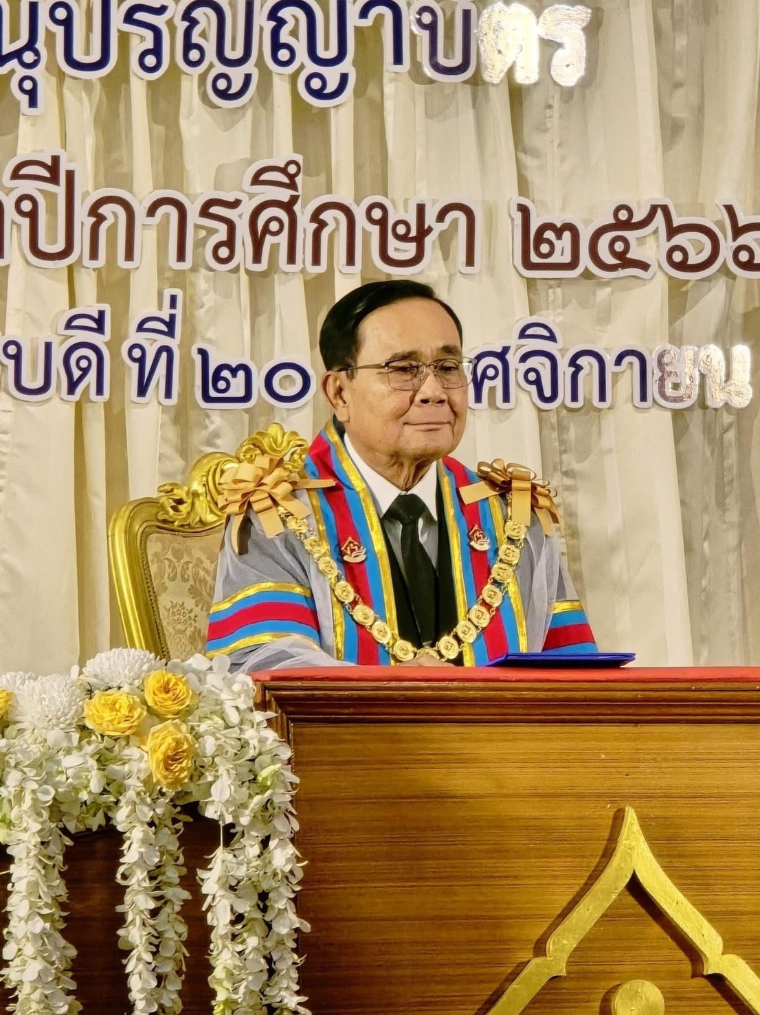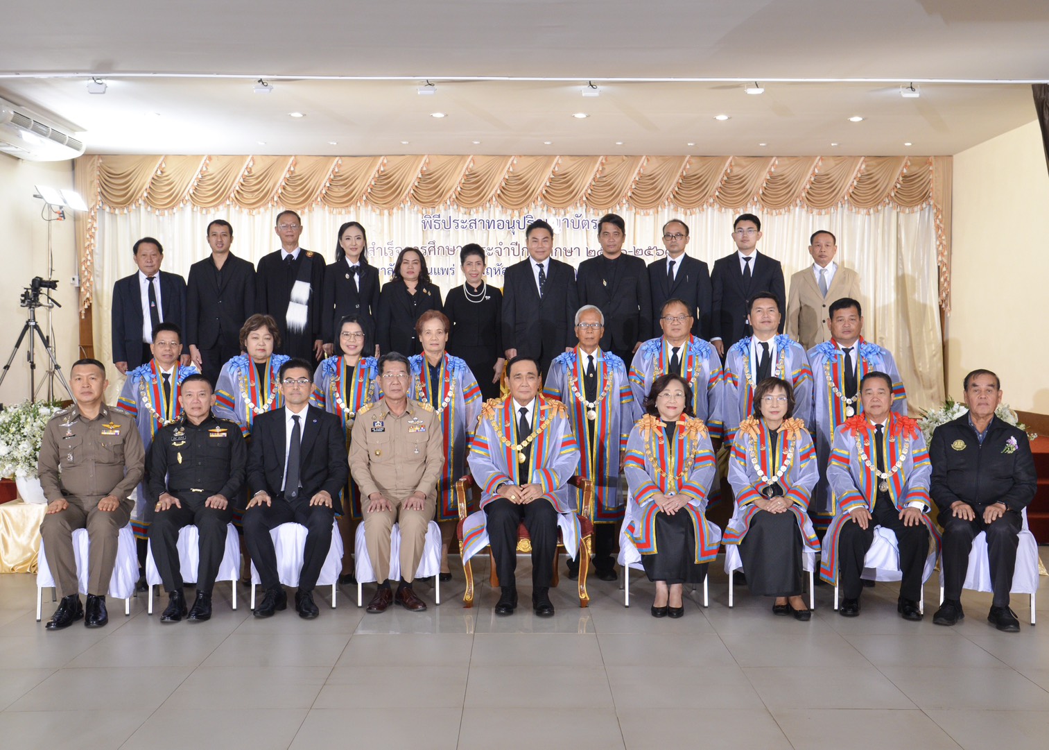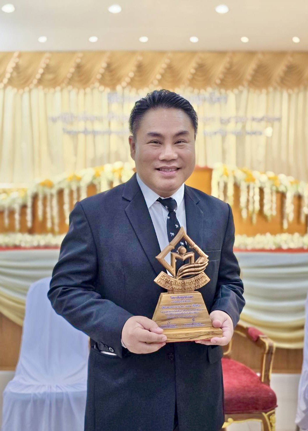 เมื่อวันที่ 20 พฤศจิกายน 2568 ผศ.ดร.ธนกร สิริสุคันธา ประธานหลักสูตรปริญญาโท การจัดการมหาบัณฑิต (กจ.ม.) สาขาวิชาการจัดการ คณะวิทยาการจัดการ มหาวิทยาลัยราชภัฏลำปาง ได้เข้ารับโล่เชิดชูเกียรติผู้ทำคุณประโยชน์ด้านการศึกษา ศาสนา และวัฒนธรรม จากองคมนตรี เพื่อเป็นเกียรติแก่ผู้ที่อุทิศตนทำงานเพื่อสังคมอย่างต่อเนื่อง ในพิธีประสาทอนุปริญญาบัตร ประจำปีการศึกษา 2566–2567 ณ ห้องประชุมชั้น 4 อาคารวิทยบริการ วิทยาลัยชุมชนแพร่ โดยได้รับเกียรติจาก พลเอกประยุทธ์ จันทร์โอชา องคมนตรี เป็นประธานในพิธี