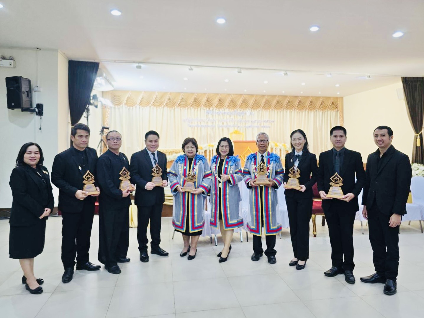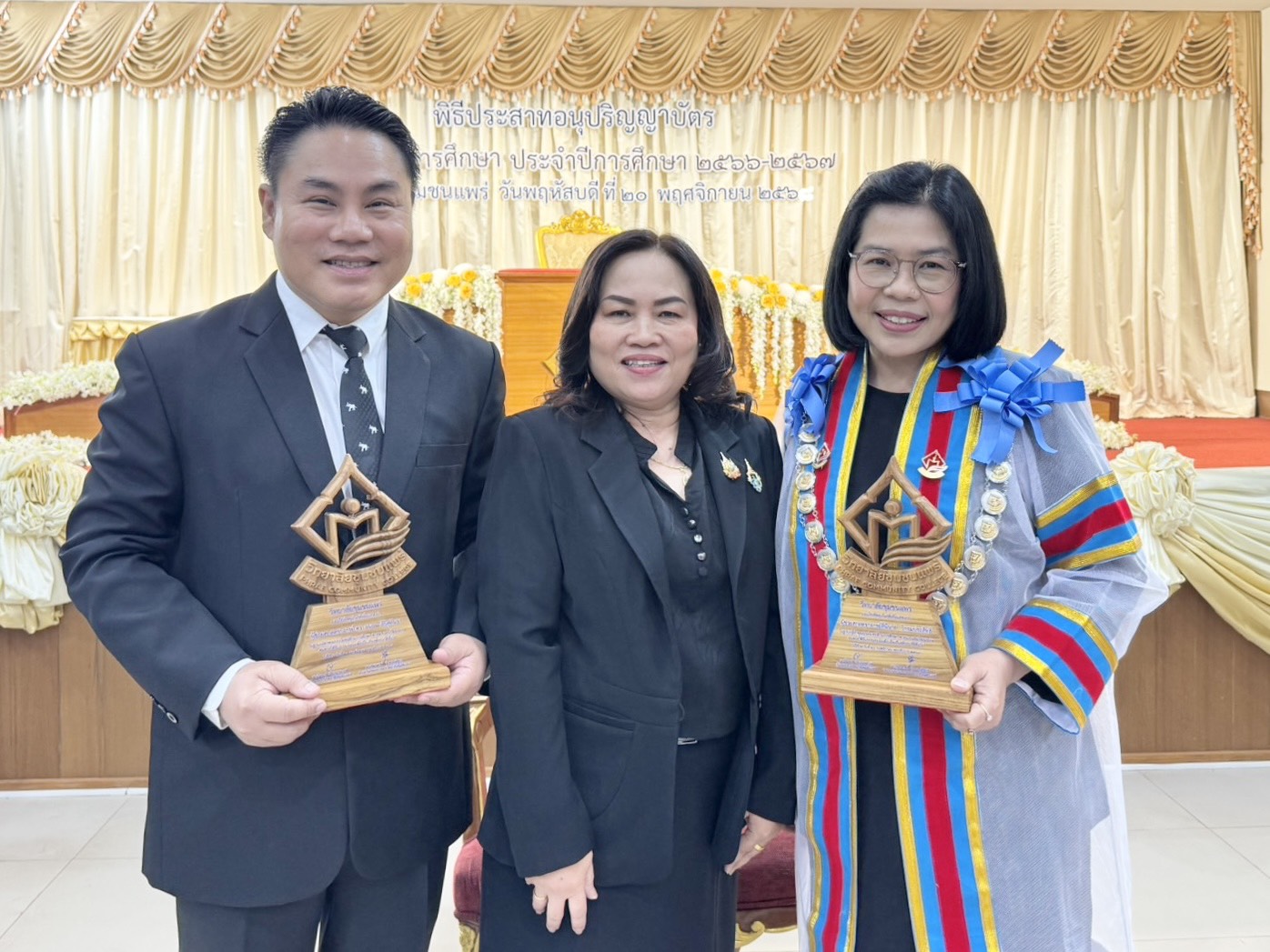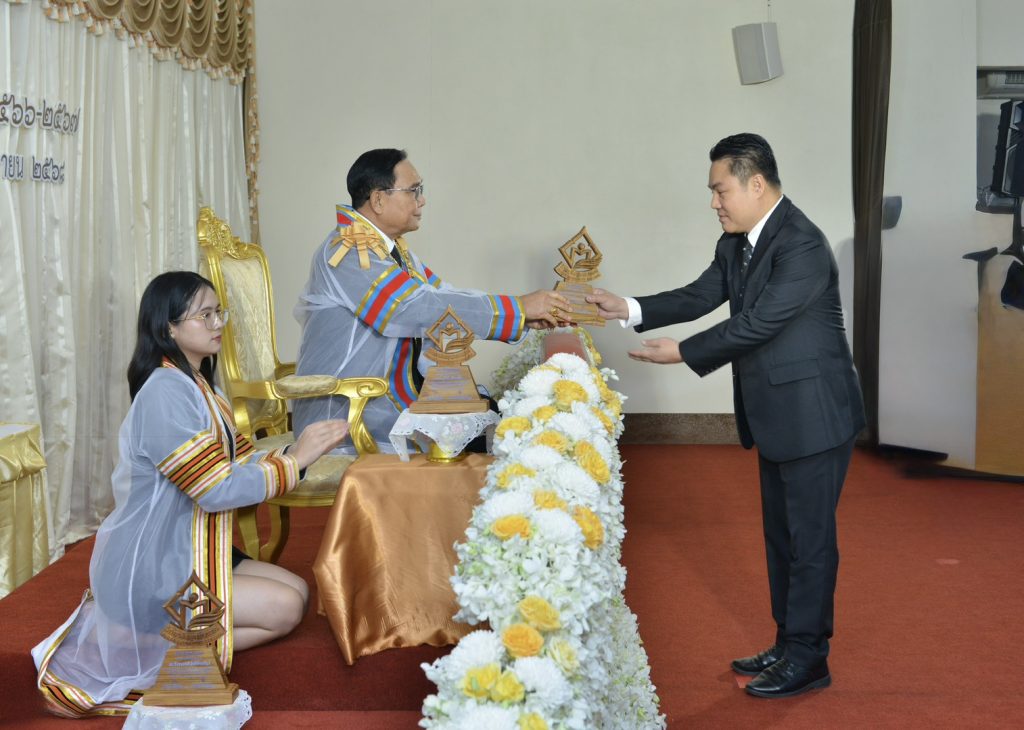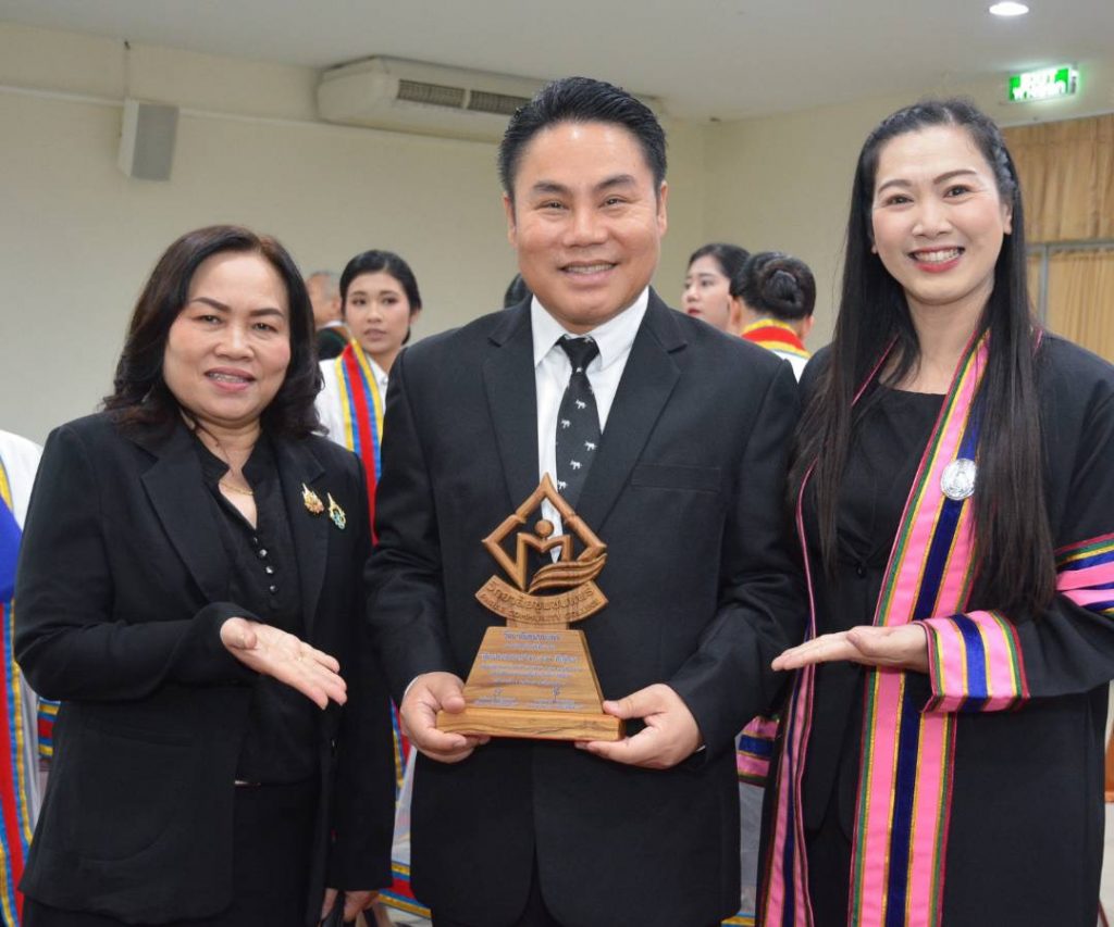 ประธานหลักสูตร กจ.ม. สาขาวิชาการจัดการ ม.ราชภัฏลำปาง รับโล่เชิดชูเกียรติผู้ทำคุณประโยชน์ด้านการศึกษา ศาสนา และวัฒนธรรม ในพิธีประสาทอนุปริญญาบัตร วชช.แพร่