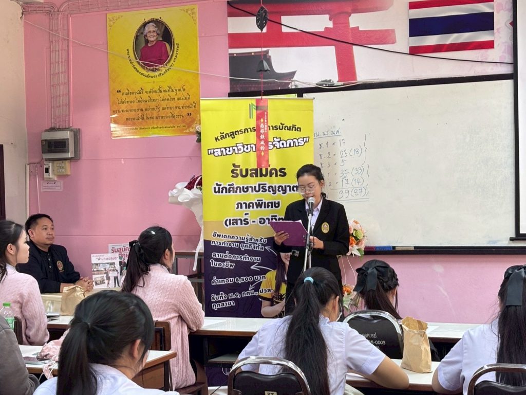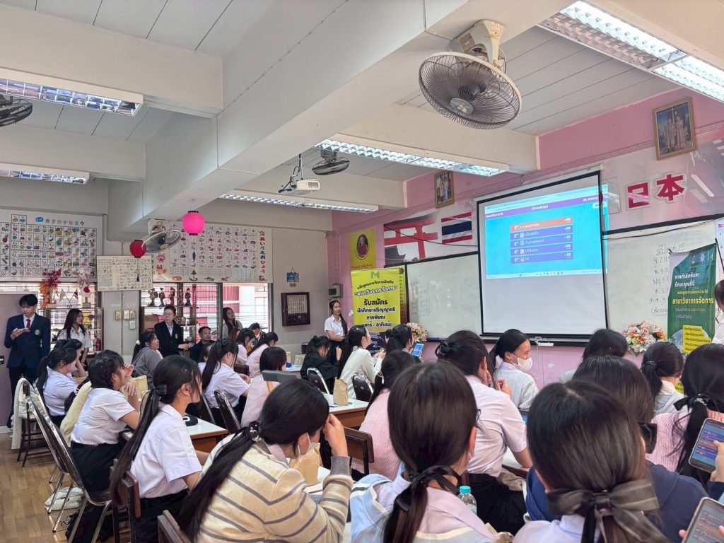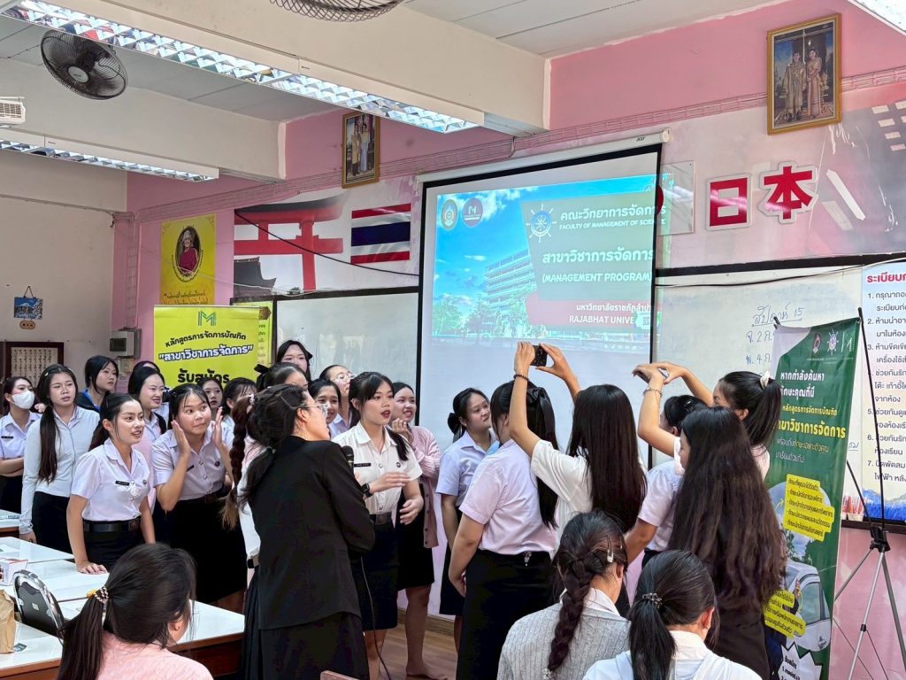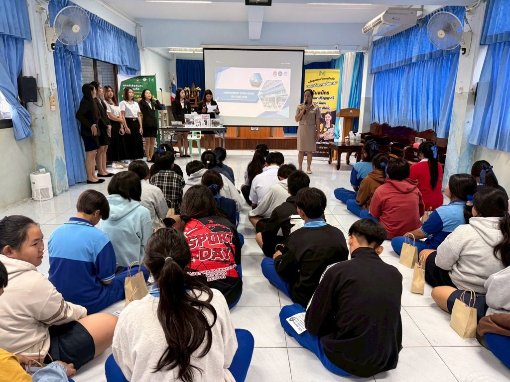 พร้อมกันนี้เมื่อวันที่ 2 กุมภาพันธ์ 2569 ได้จัดกิจกรรมดัวกล่าว ณ โรงเรียนเสด็จวนชยางค์กูล มีนักเรียนชั้นมัธยมศึกษาปีที่ 5 และปีที่ 6 เข้าร่วมกิจกรรมกว่า 70 คน ซึ่งเป็นส่วนหนึ่งในการจัดการเรียนรู้ภายใต้การเรียนการสอนรายวิชาการสื่อสารทางธุรกิจและเทคนิคการนำเสนอ ตามหลักสูตรการจัดการบัณฑิต สาขาวิชาการจัดการ โดยมีวัตถุประสงค์ในการจัดกิจกรรมเพื่อให้นักศึกษาเกิดการเรียนรู้เชิงบูรณาการจากการปฏิบัติตามจุดมุ่งหมายในรายวิชา รวมทั้งเพื่อให้สอดคล้องกับผลลัพธ์การเรียนรู้ที่คาดหวังของหลักสูตร (CLO YLO และ PLO) และเป็นการสร้างการรับรู้รายละเอียดของการเรียนการสอนให้กับนักเรียนใช้ประกอบการตัดสินใจเข้าศึกษาต่อในสาขาวิชาการจัดการอีกด้วย