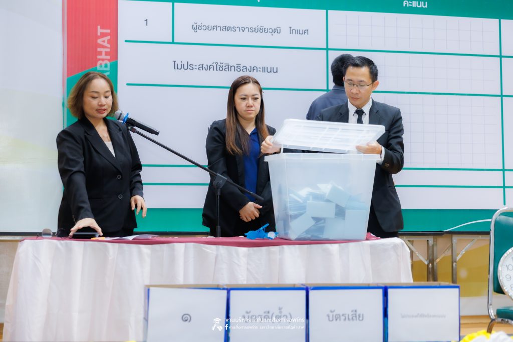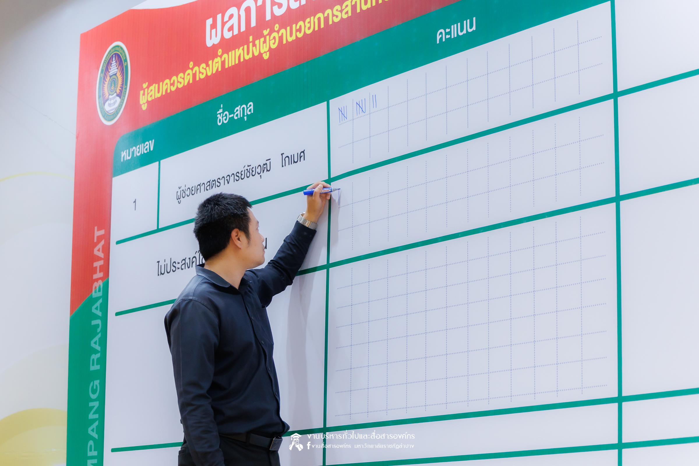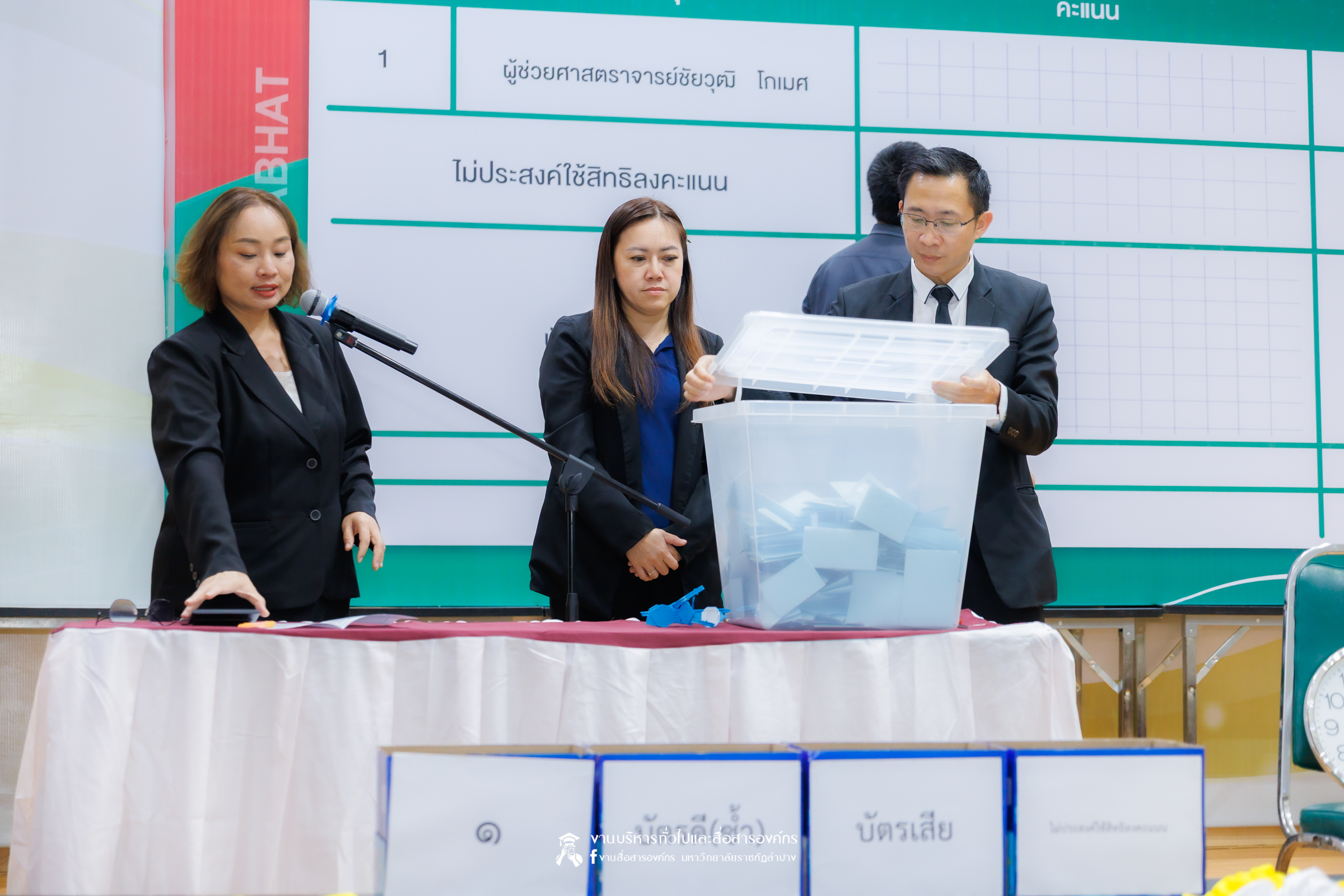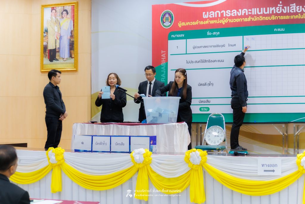 เมื่อวันที่ 4 ธันวาคม 2568 เวลา 15.01 น. สำนักงานสภามหาวิทยาลัยราชภัฏลำปาง โดย รศ.ดร.กิตติศักดิ์ สมุทธารักษ์ อธิการบดีมหาวิทยาลัยราชภัฏลำปาง ประธานคณะกรรมการสรรหาบุคคลเพื่อแต่งตั้งเป็นผู้อำนวยการสำนักวิทยบริการและเทคโนโลยีสารสนเทศ มหาวิทยาลัยราชภัฏลำปาง พร้อมคณะ ได้ดำเนินการนับคะแนนการหยั่งเสียงผู้สมควรดำรงตำแหน่งผู้อำนวยการสำนักศิลปะและวัฒนธรรม มหาวิทยาลัยราชภัฏลำปาง ณ ห้องประชุมโอฬารรัตน์ ชั้น 1 อาคารโอฬาร โรจน์หิรัญ