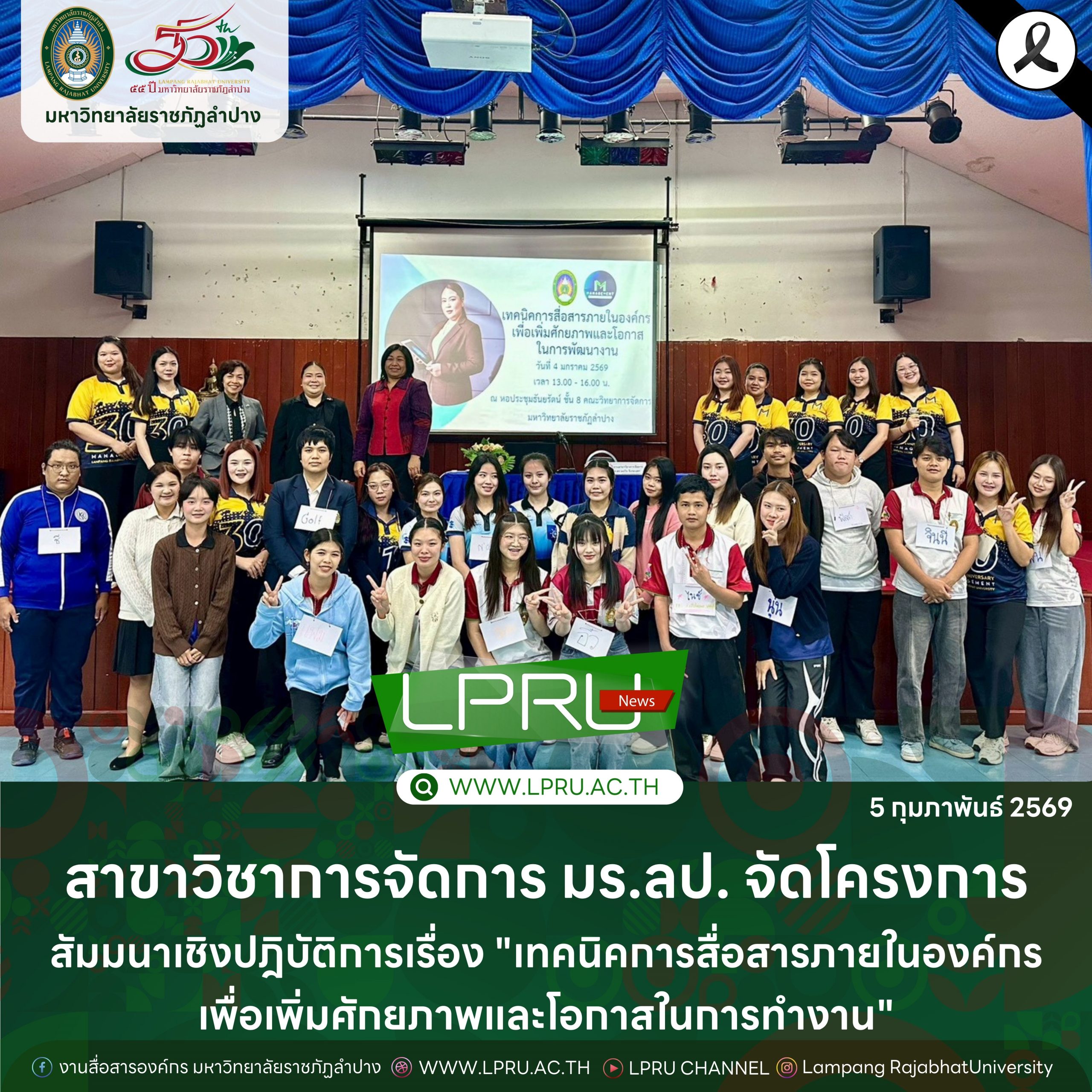 สาขาวิชาการจัดการ มร.ลป. จัดโครงการสัมมนาเชิงปฎิบัติการเรื่อง “เทคนิคการสื่อสารภายในองค์กร เพื่อเพิ่มศักยภาพและโอกาสในการทำงาน”