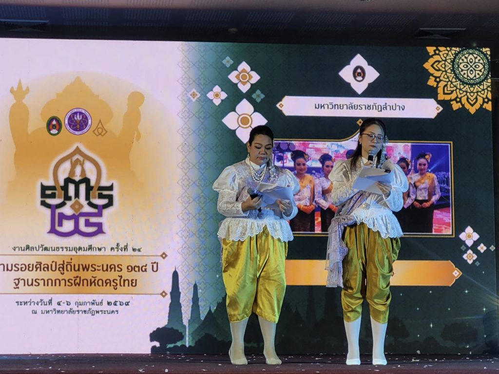 ผศ.เจษฎา ทองสุข ผู้อำนวยการสำนักศิลปะและวัฒนธรรม มหาวิทยาลัยราชภัฏลำปาง พร้อมด้วย อ.ดร.เยาวลักษณ์ งามแสนโรจน์ และนักศึกษา ร่วมงานศิลปวัฒนธรรมอุดมศึกษา ครั้งที่ 24 “ตามรอยศิลป์ สู่ถิ่นพระนคร 134 ปีฐานรากการฝึกหัดครูไทย”เมื่อวันที่ 4 -5 กุมภาพันธ์ 2569 ณ มหาวิทยาลัยราชภัฏพระนคร โดยได้รับเกียรติจาก นางวัฒนาโสภี สุขสอาด ที่ปรึกษาด้านยุทธศาสตร์และแผนอุดมศึกษา วิทยาศาสตร์ วิจัยและนวัตกรรม เป็นประธานในพิธีเปิด รศ.ดร.เปรื่อง กิจรัตน์ภร รักษาราชการแทนอธิการบดีมหาวิทยาลัยราชภัฏพระนคร กล่าวต้อนรับ