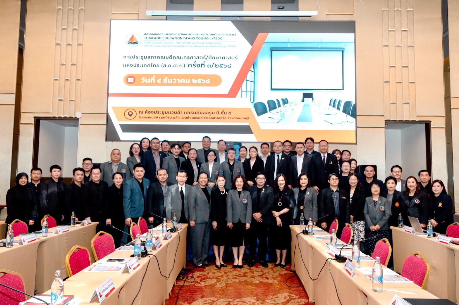 ในวันที่ 4 ธันวาคม 2568 เป็นการประชุมสภาคณบดีคณะครุศาสตร์/ศึกษาศาสตร์แห่งประเทศไทย (ส.ค.ศ.ท.) ครั้งที่ 3/2568 ซึ่งเป็นเวทีที่รวมคณบดีจากมหาวิทยาลัยทั่วประเทศ โดยมี ผศ.ดร.อรพรรณ ตู้จินดา ประธานสภาคณบดีคณะครุศาสตร์/ศึกษาศาสตร์แห่งประเทศไทย เป็นประธานการประชุม มีการบรรยายพิเศษ หัวข้อสำคัญ ได้แก่ “แนวทางการดำเนินงานการประเมินสมรรถนะอาจารย์ตามแนวทางการพัฒนาคุณภาพอาจารย์เพื่อส่งเสริมการบรรลุผลลัพธ์การเรียนรู้ตามมาตรฐานคุณวุฒิระดับอุดมศึกษา” โดย ผศ.ดร.ดวงใจ ชนะสิทธิ์ และ หัวข้อ “คุรุสภาพบสภาคณบดี” โดยคณะเลขาธิการคุรุสภา