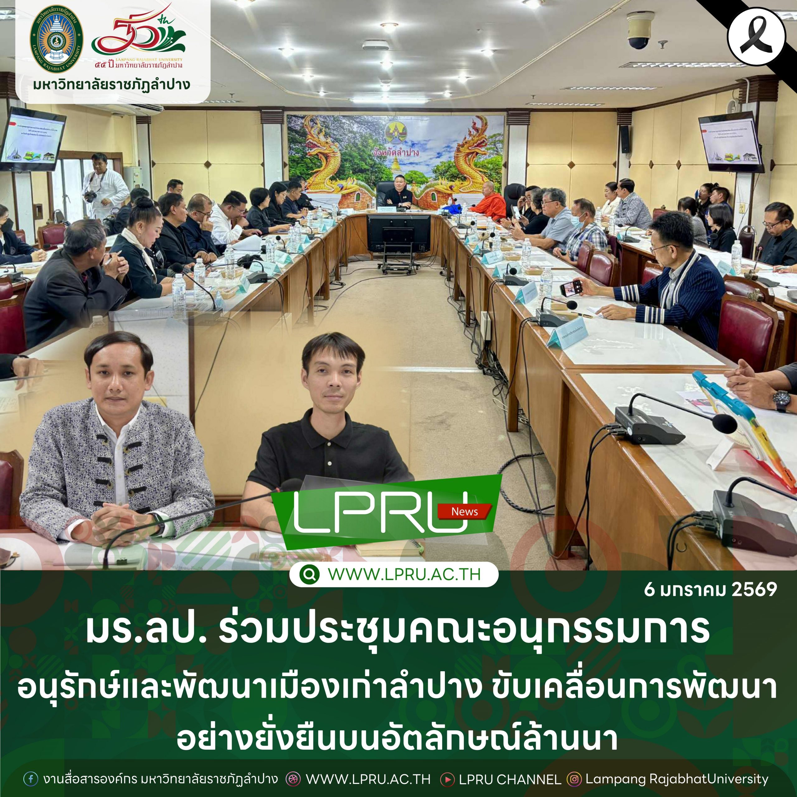 เมื่อวันที่ 6 มกราคม 2569 ผศ.เจษฎา ทองสุข ผู้อำนวยการสำนักศิลปะและวัฒนธรรม มหาวิทยาลัยราชภัฏลำปาง ในฐานะหัวหน้าหน่วยอนุรักษ์สิ่งแวดล้อมธรรมชาติและศิลปกรรมท้องถิ่นจังหวัดลำปาง พร้อมด้วย นายอาทิตย์ สุปินะ เจ้าหน้าที่ผู้ประสานงานหน่วยอนุรักษ์ ฯ เข้าร่วมการประชุมคณะอนุกรรมการอนุรักษ์และพัฒนาเมืองเก่าลำปาง ครั้งที่ 1/2569