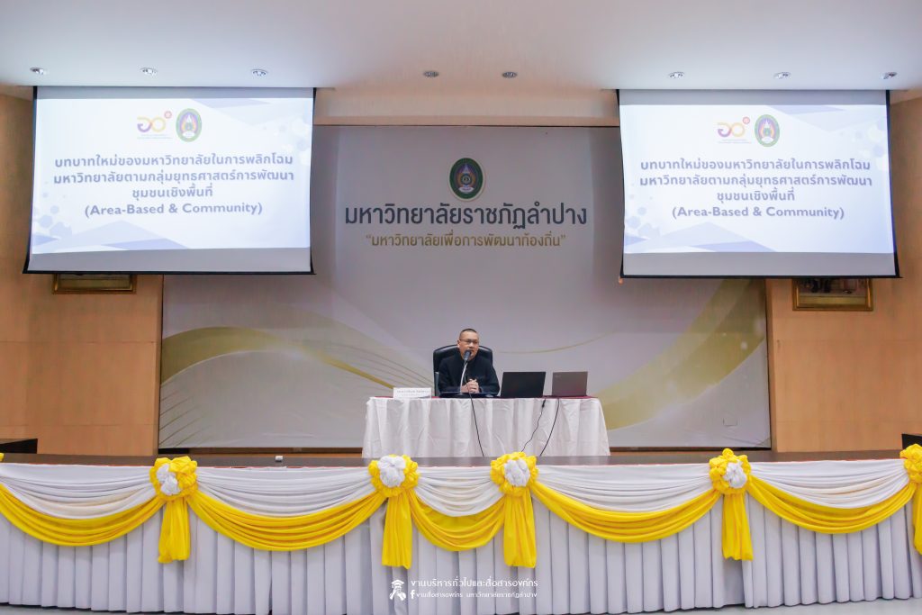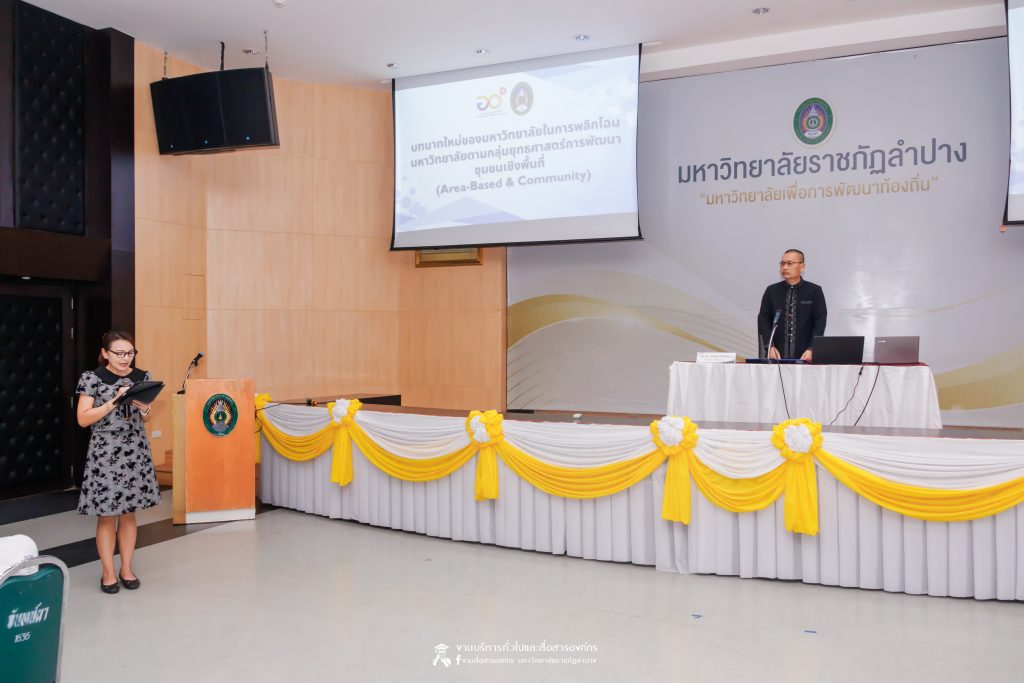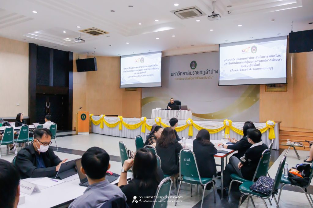 การอบรมในครั้งนี้ เพื่อพัฒนาศักยภาพของบุคลากรด้านการทำงานเชิงพื้นที่ พร้อมทั้งเป็นการพัฒนาความรู้ ทักษะ และความสามารถของบุคลากรให้สามารถทำงานตามภารกิจในพื้นที่ได้อย่างมีประสิทธิภาพ โดยมุ่งเน้นให้บุคลากรมีทักษะการบริหารจัดการ การทำงานร่วมกับผู้อื่นในพื้นที่ การประยุกต์ใช้องค์ความรู้ใหม่ๆ ในการแก้ไขปัญหา และการสร้างสรรค์นวัตกรรมที่ตอบสนองความต้องการของชุมชน ในฐานะบุคลากรของมหาวิทยาลัยกลุ่ม 3 โดยมี รศ.วิไลลักษณ์ พรมเสน รองอธิการบดีฝ่ายวิจัยและวิชาการต่างประเทศ เป็นวิทยากรบรรยายในหัวข้อ บทบาทของมหาวิทยาลัยราชภัฏลำปางกับการทำงานเชิงพื้นที่ และการจัดกลุ่ม Workshop หัวข้อ เครื่องมือ เทคนิค ชุดประสบการณ์การทำงานร่วมกับพื้นที่ อ.อัจฉริยา ครุธาโรจน์ ผู้ช่วยอธิการบดีด้านวิเทศสัมพันธ์ เป็นวิทยากร หัวข้อ TimeLine พัฒนาการจากวิทยาลัยครู สู่ มหาวิทยาลัยราชภัฏลำปาง กับแนวคิดการพัฒนาที่ยั่งยืน (SDGs) ซึ่งมีคณาจารย์เข้ารับการอบกรมกว่า 60 คน