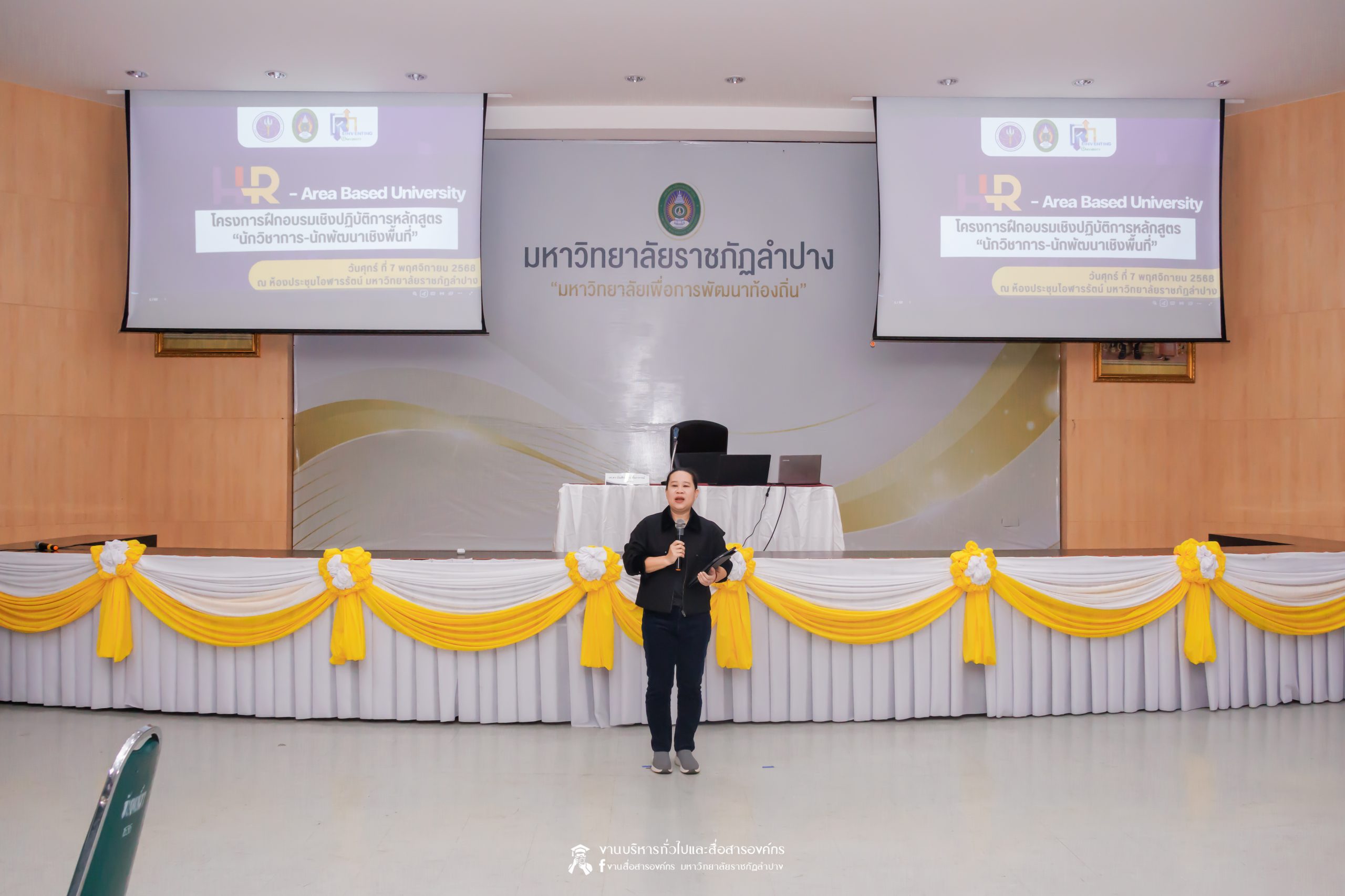 รศ.ดร.ปริเยศ สิทธิสรวง รองอธิการบดีฝ่ายบริหาร มหาวิทยาลัยราชภัฏลำปาง เป็นประธานพิธีเปิดโครงการฝึกอบรมเชิงปฏิบัติการหลักสูตร “นักวิชาการ-นักพัฒนาเชิงพื้นที่” (HR-Area Based University) เมื่อวันที่ 7 พฤศจิกายน 2568 ณ ห้องประชุมโอฬารรัตน์ ชั้น 1 อาคารโอฬาร โรจน์หิรัญ โดยมี รศ.ดร.บัณศิกาญจ ตั้งภากรณ์ รองผู้อำนวยการสำนักวิทยบริการและเทคโนโลยีสารสนเทศ กล่าวชี้แจงวัตถุประสงค์การฝึกอบรม